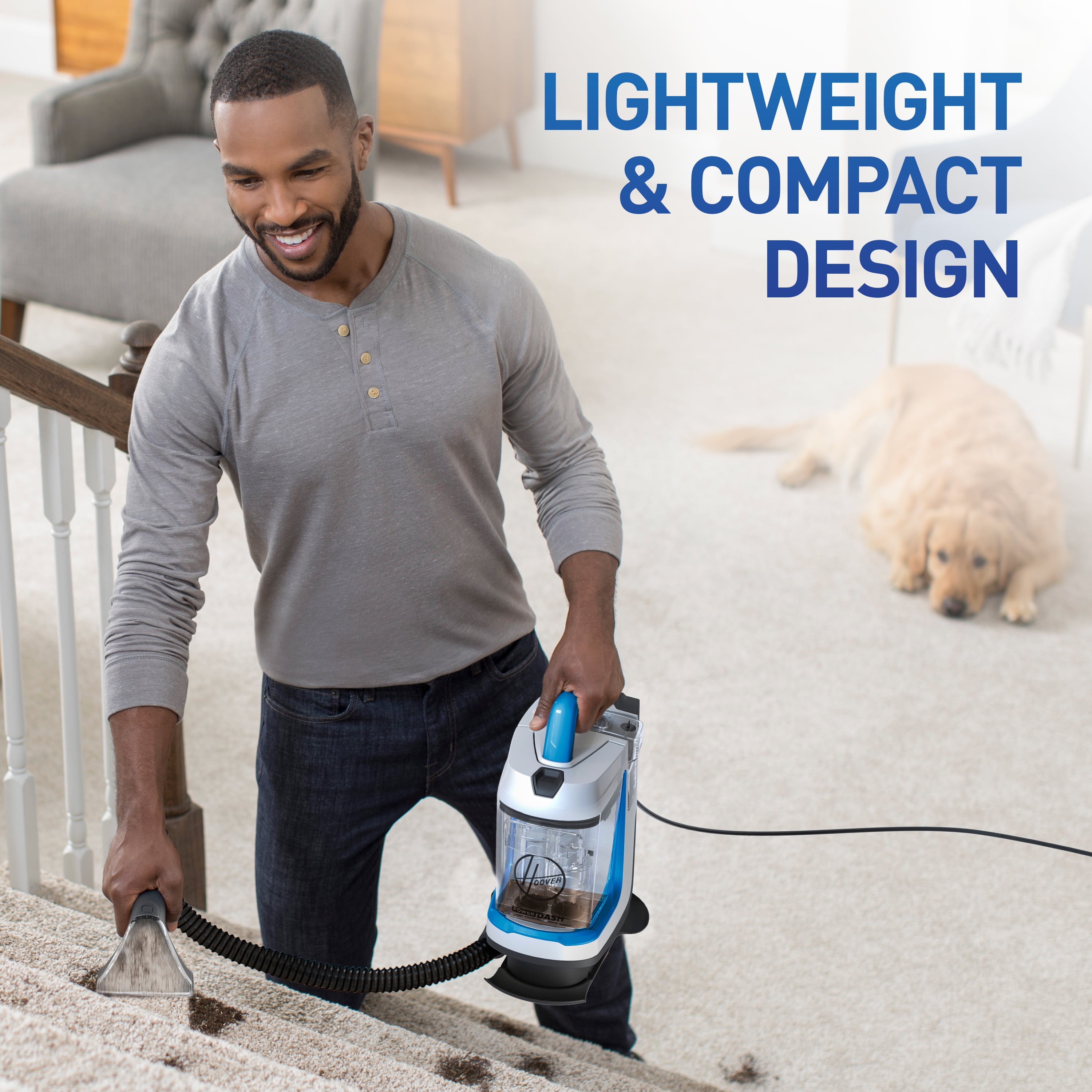 The Hoover PowerDash GO Pet Portable Carpet and Upholstery Cleaner provides lightweight portable convenience with the power to tackle the toughest spots and pet messes. Its compact design is perfect for grab & go cleaning. With the Spot & Stain Pet tool and the Rubber Nub Pet Tool, you’re equipped to take on even the toughest stains on carpets, upholstery, and more! Pair with Hoover Paws & Claws pre-mixed spot cleaning solution for ultimate cleaning power.