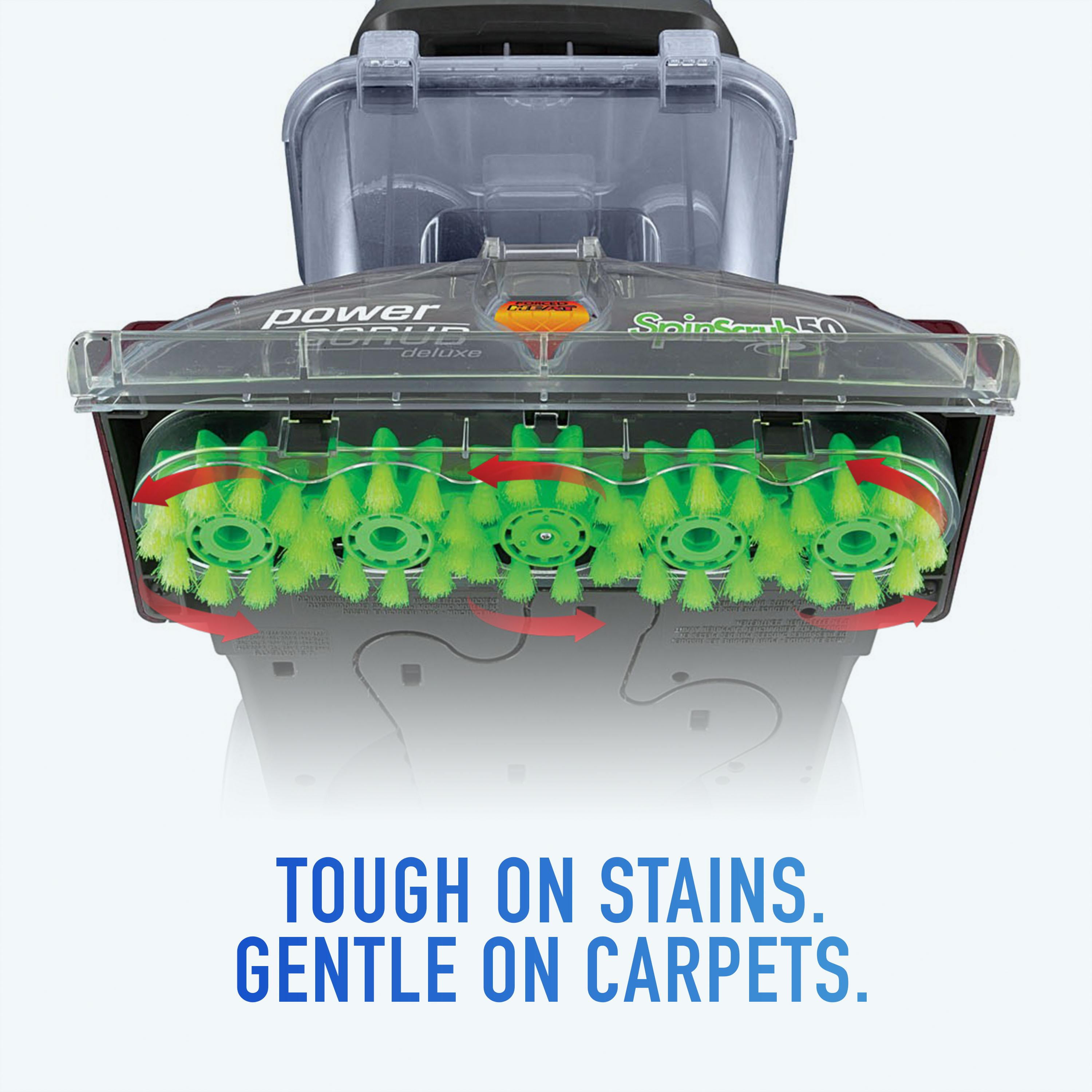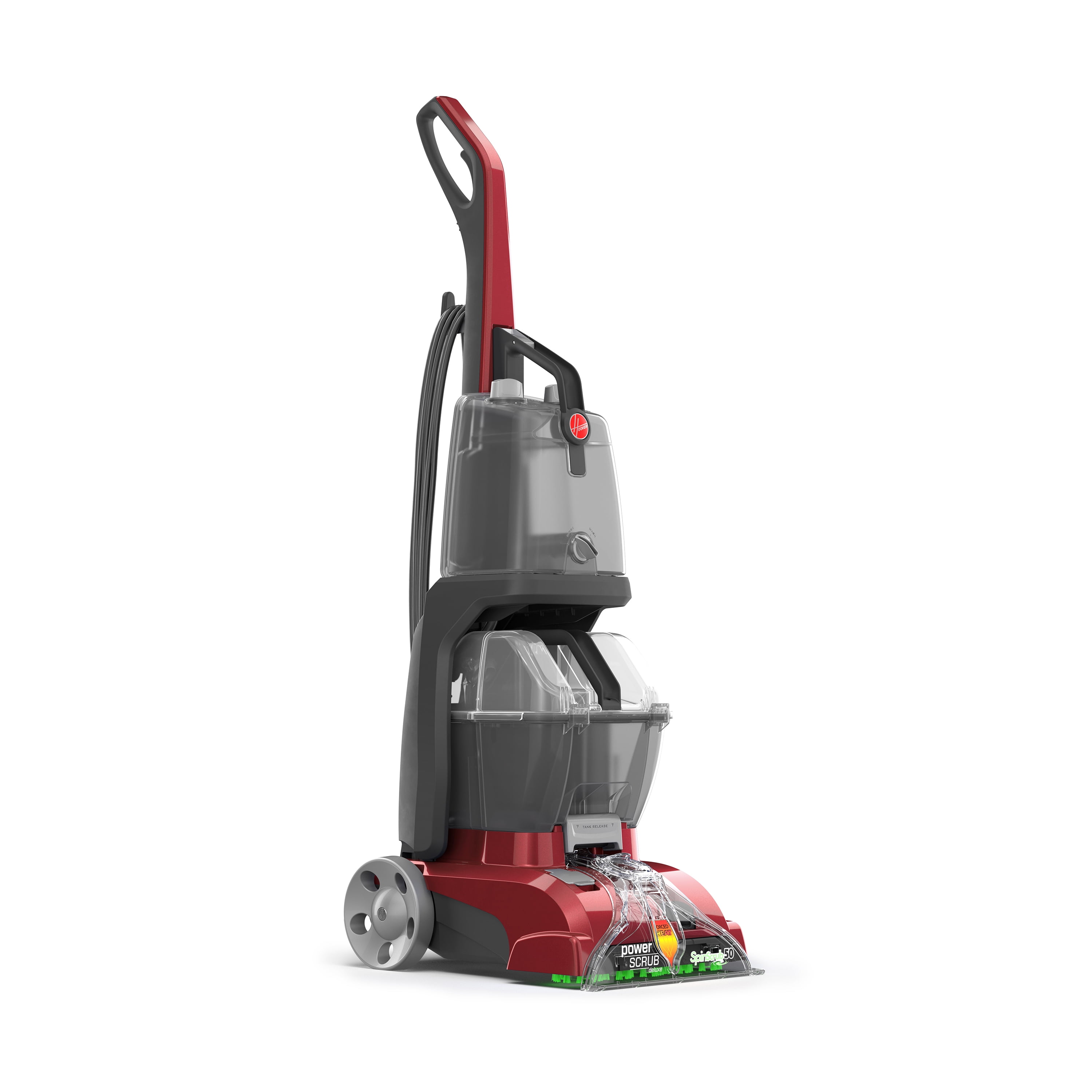 Features & Benefits: SPINSCRUB BRUSH TECHNOLOGY: Patented 360° brushes scrub carpet at all angles DUAL-V NOZZLE: Provides equal suction to clean surfaces quickly and evenly DUAL TANK TECHNOLOGY: Separates clean and dirty water so you can easily fill, empty, and rinse QUICK DRY: Dries rapidly with heated air AUTOMATIC DETERGENT MIXING SYSTEM: Provides the correct mix of detergent and water for optimal cleaning results POWERFUL REACH: 20 ft. Cord extends room-to-room without the hassle of unplugging What’s Included: 8 ft. Hose Mesh Tool Storage Bag Trial Size Carpet Cleaner Solution SpinScrub Powered Hand Tool Stair Tool Upholstery Tool Crevice Tool Warranty: 2-Year Limited Warranty About the Hoover Brand: Simple. Clean. Living. Happy home, Happy you. For more than 100 years, HOOVER® has been committed to improving the well-being of people’s homes. The first-ever Hoover innovation was an electric suction sweeper that used a pillowcase to capture dust and allergens. And to this day, Hoover continues to develop simple-to-use products that enhance the cleanliness, comfort, and health of people’s homes. Because when your home is at its best, so are you.
