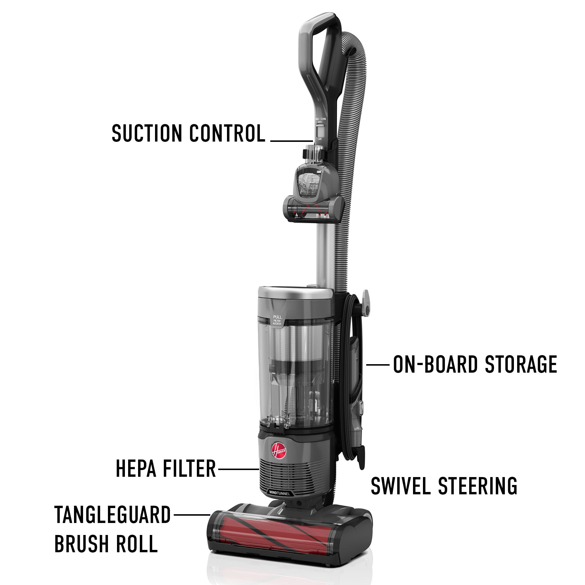 Hoover Windtunnel Swivel Pet Bagless Upright Vacuum, Pet Friendly, Above Floor Cleaning, Swivel Steering, Prevents Hair Wrap, UH77310V, Gray