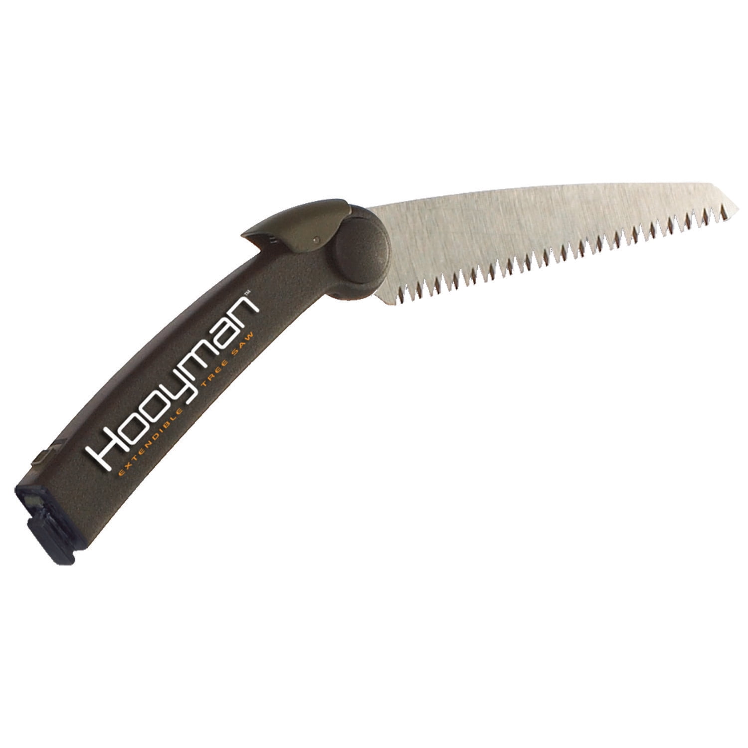 The Hooyman 5 ft. Extendable Tree Saw features a compact ergonomic design, high carbon SK5 tapered MegaBite XP blades and a rock solid aluminum I-beam construction. Hooyman offers extendable pole saws in a 5 foot, 10 foot and 16 foot models. If unmatched cutting performance, rock solid durability and a rigid design is what you seek within a premium pole saw, Hooyman has you covered. The positive locking extension system paired with the ability to collapse the pole makes for ease of use while trimming, sawing by hand or carrying in a bag or pack. This saw features an in-line design that allows the folding saw to slide and lock into the extension arm when a pole is needed and to detach when only the handsaw is needed.
