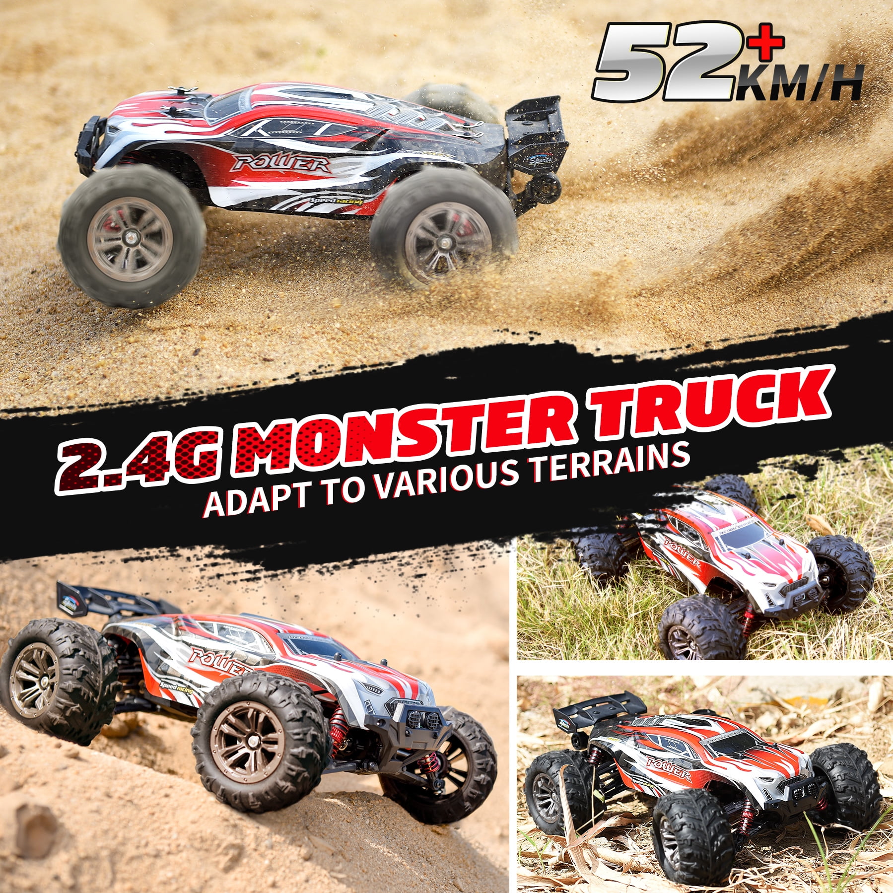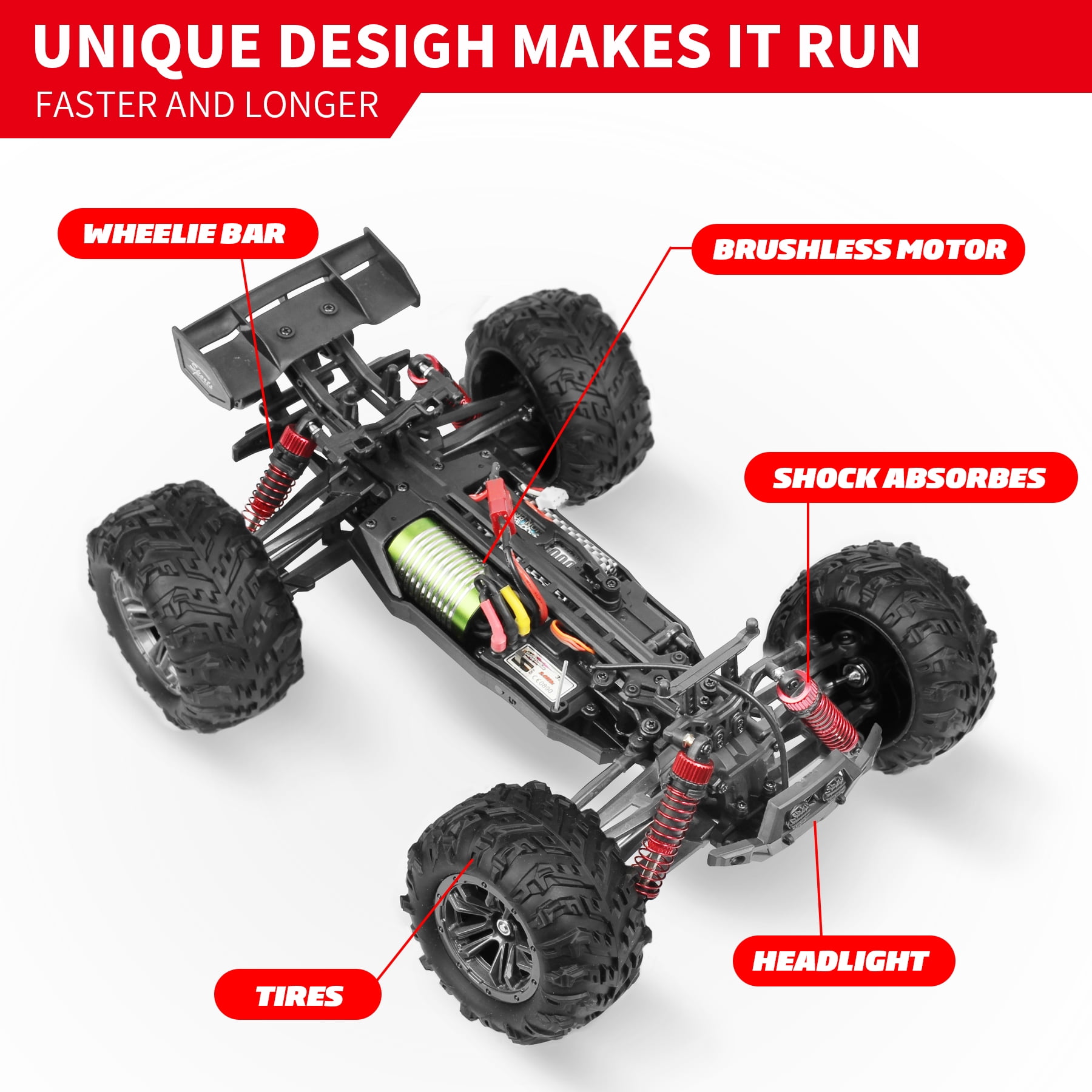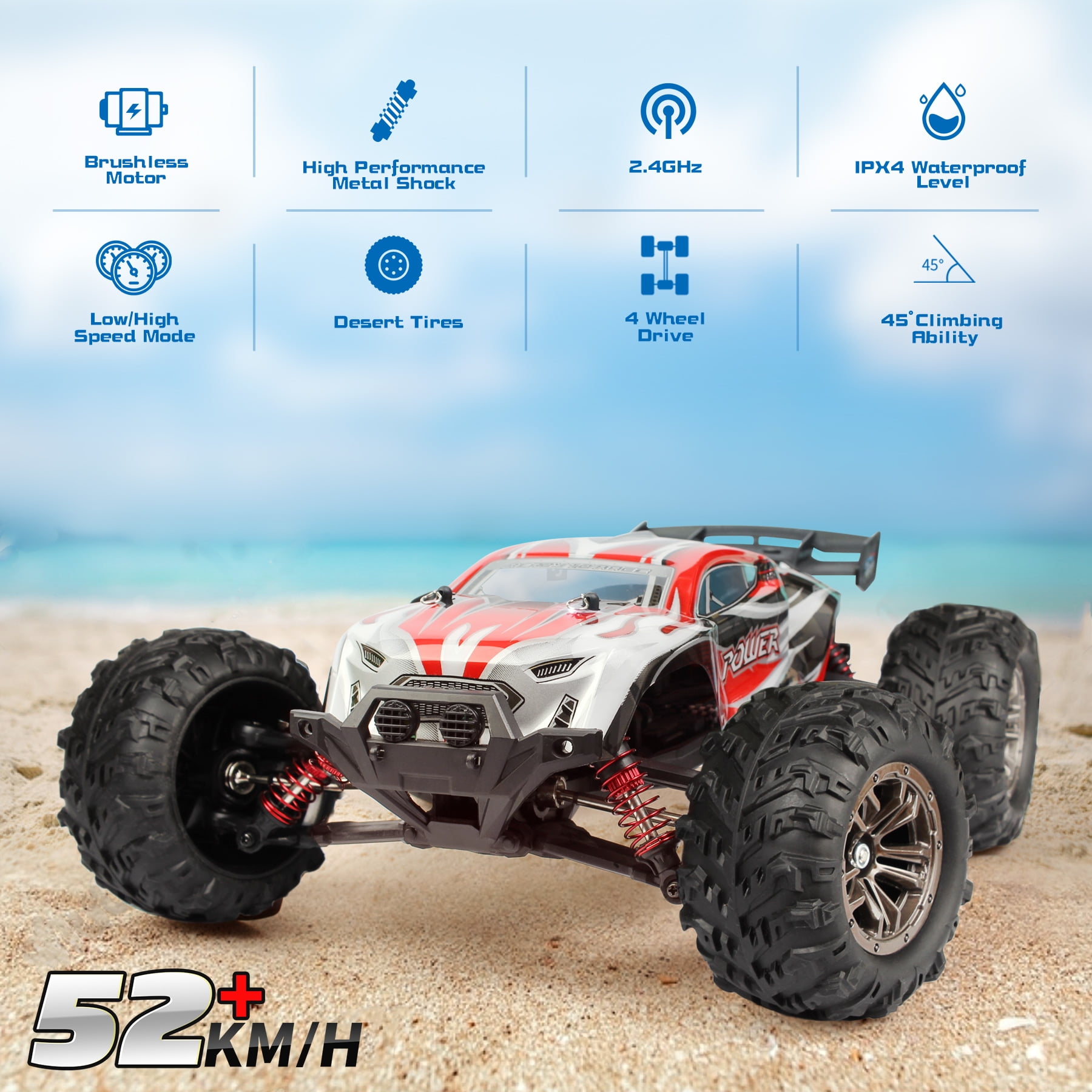 Hosim RC Cars 1:16 RC Car Remote Control Car RC Monster Truck 52+ KM/H 2845 Brushless Motor High Speed off Road Q905 Red Remote Control Toys for Kids Adults