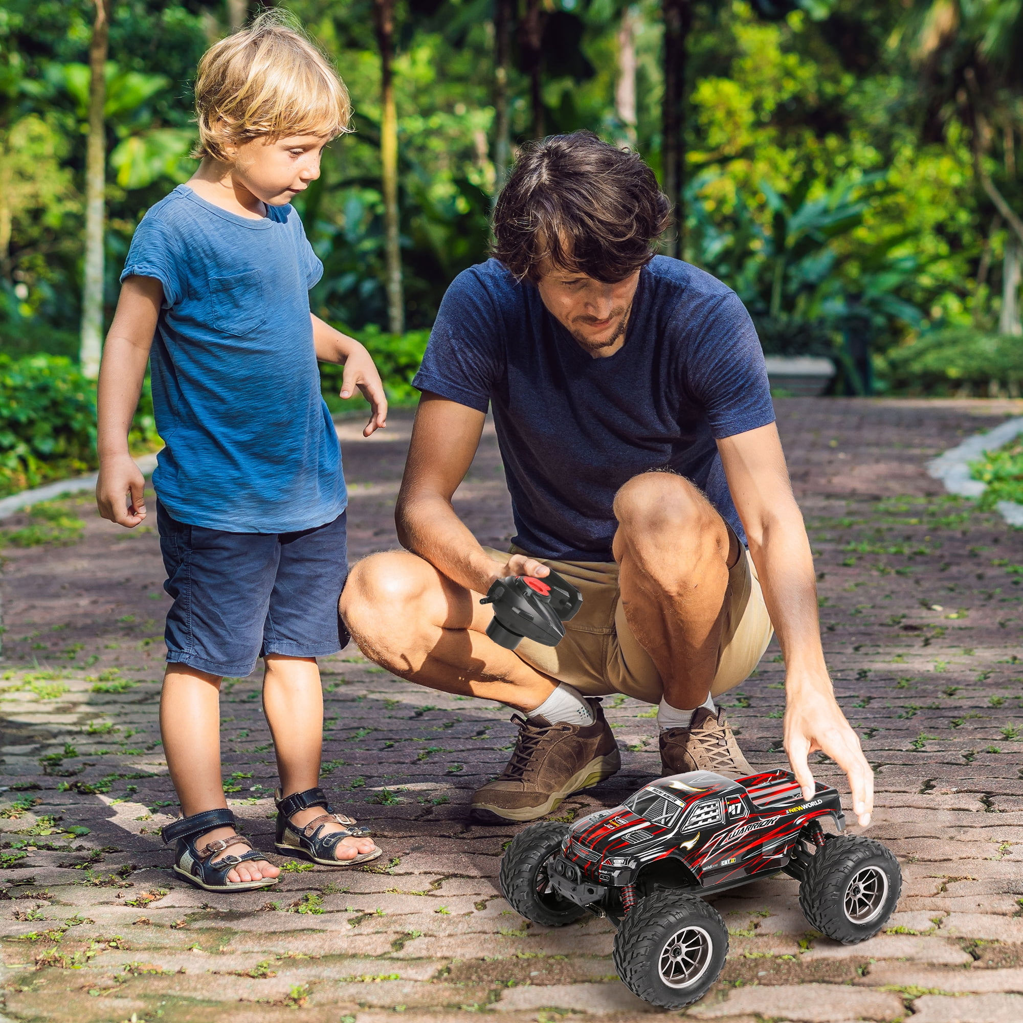 MORE EXCITING! Double Shells, Double Fun Equipped with dual-color car shell, adding a touch of style to your life. The PVC material is easy to disassemble and clean. ENHANCED PERFORMANCE! Two High-capacity 1600 mAh 2s Batteries, Showcasing True Driving Skills Two high-performance lithium batteries, shorter charging time, longer lifespan, no need to worry about sudden power failure during playtime. Significantly improves the performance level of the remote-controlled car by ensuring a uniform speed during car turns. SPEED UP! Upgraded Motor The upgraded motor is high-speed and equipped with a heat sink; it maintains good performance while extending the lifespan. IMPROVED DAMPING EFFECT! Powerful Shock Absorption System Absorbs shock to protect electronic components, easily absorbs vibrations. Gradually stiffens to resist bottoming out during big jumps.