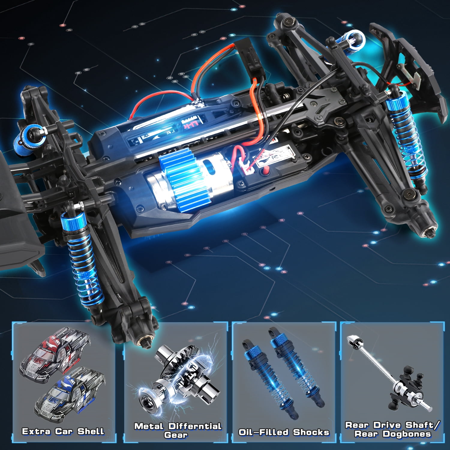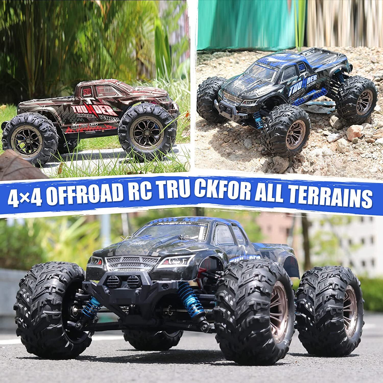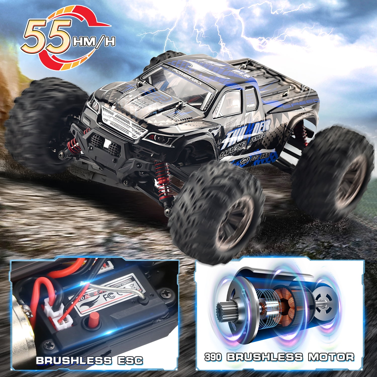 【1:16 Fast Brushless RC Truck】The rc cars for adults with a powerful brushless motor, the rc trucks can reach a faster speed.The brushless motor lasts 2-3 times longer and consumes only 1/3 of the power of a brushed motor. 【4X4 & 55+KM/H Super Fast】:The fast rc car can reach 55+km/h,which makes the car race faster than others.The remote control truck adopts 4-wheel drive and 4 independent suspension spring shock absorbers and an alloy drive shaft. 【Double Shell & 2 Batteries】: These monster trucks for boys come with two 7.4V/1200mAh high-capacity rechargeable batteries and two charging cables. The remote control car for boys 8-12 will run for 20 minutes per battery. 2 batteries for 40 minutes running! 【IPX4 Waterproof & 2.4GHz Non-Jamming】The 2.4GHz remote controller has a fast response time and no delay. Whether indoors or outdoors, it can control the remote control monster truck sensitively and has an anti-interference function. And the rc trucks for adults also have IPX4 waterproof performance. 【Ideal Gifts Toys for Adults & Kids】:This remote control car for adults has two headlights and four high tenacity tires. And the fast remote control cars will add a lot of fun for you and your family. It is the great birthday and Christmas gifts for boy & kids over 8-12 years old, adults and off-road enthusiasts.