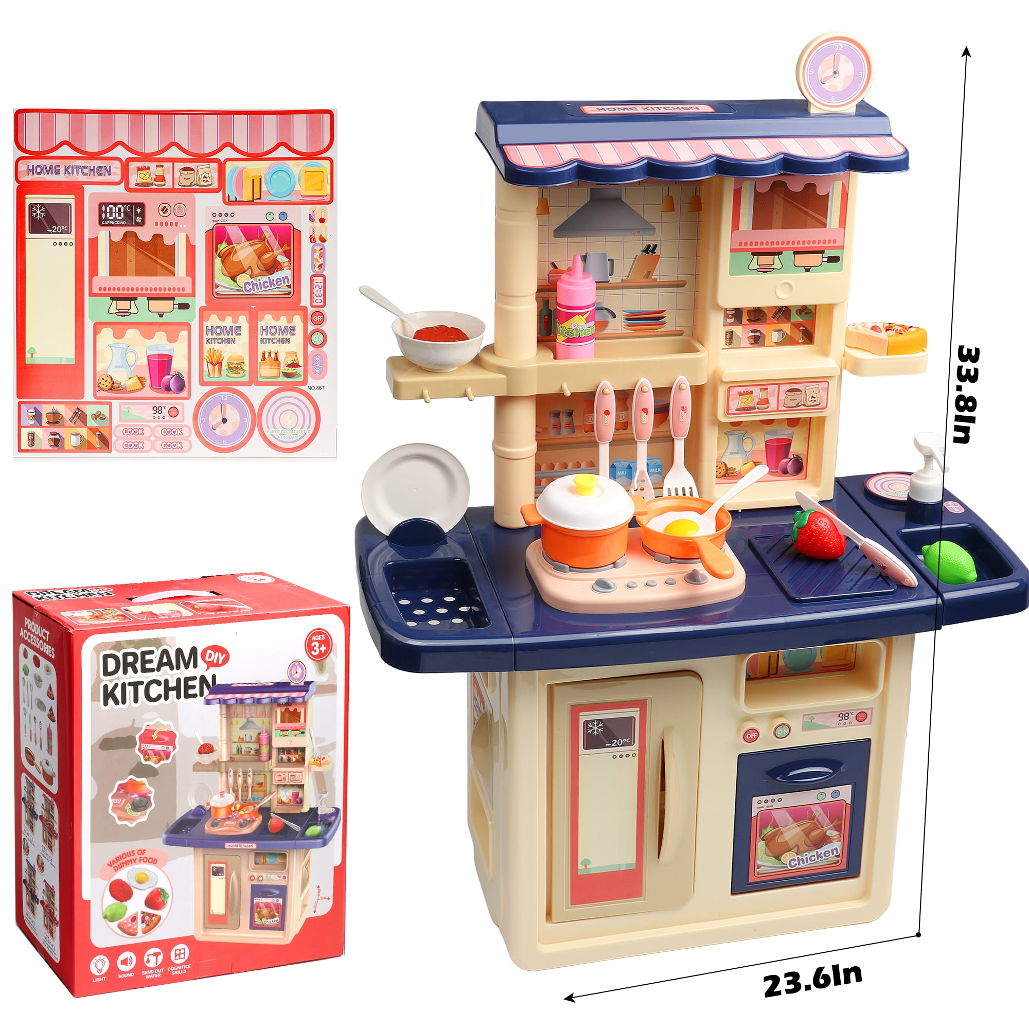 Hot Bee Kids Pretend Play Kitchen Toys – 34 inch Safe&Fun Kitchen Food Accessories Playset for Toddlers 1-6 Years, Great Birthday Christmas Gift Toys for Boys Girls 3 4 5 6+