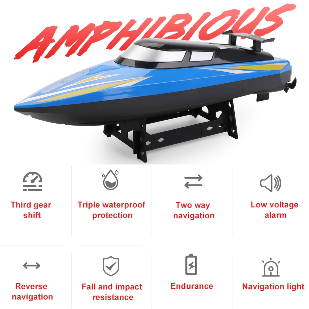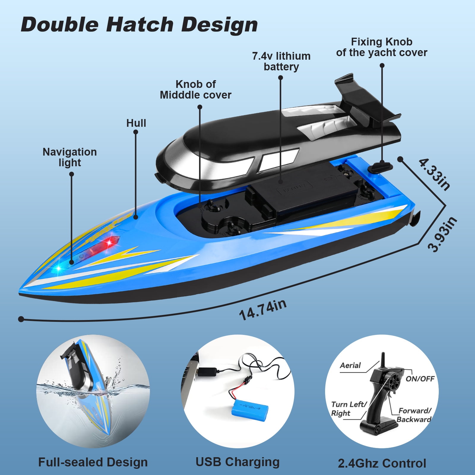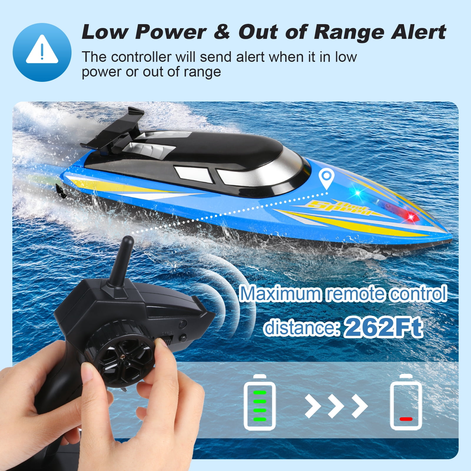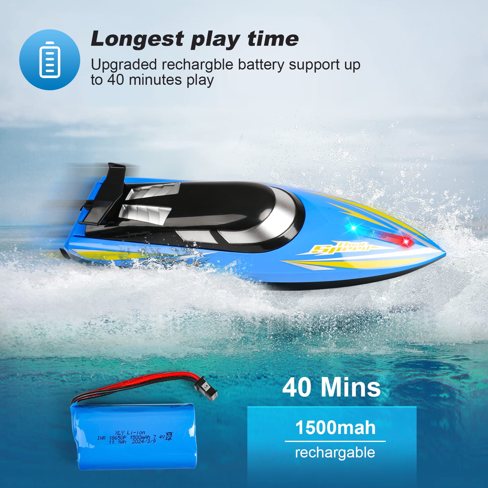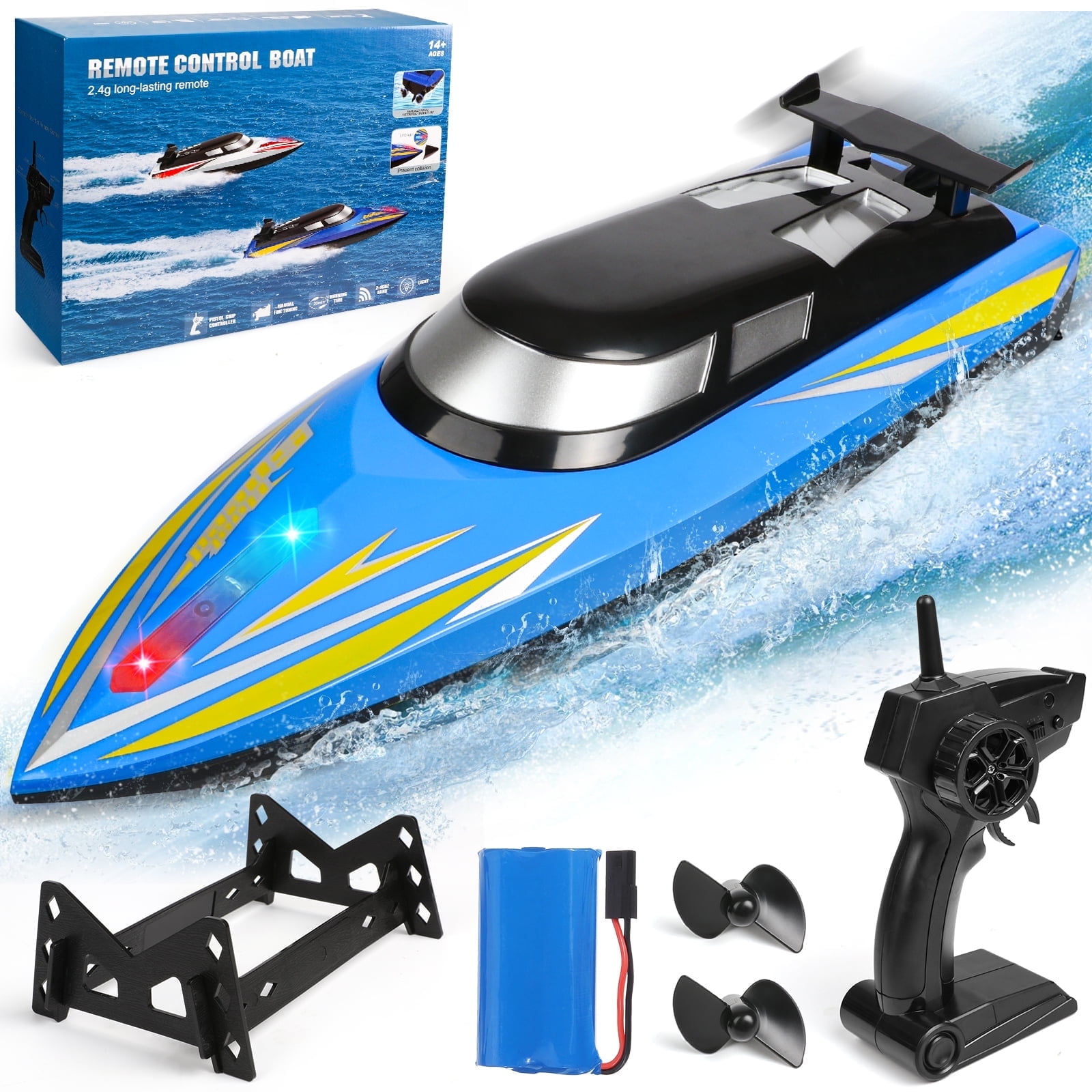 ????High-Speed Performance: Equipped with a powerful water-cooled magnetic motor, this remote control boat reaches thrilling speeds up to 20 MPH. The advanced 2.4 GHz remote keeps you in control, even from a distance of 262 feet. ????Easy Handling & Stability: With capsize recovery mode and auto yaw correction, it’s easy to control and correct direction. If the boat flips, it quickly turns upright, giving you peace of mind in any race. ????Long Battery Life: A high-capacity rechargeable battery provides 15-20 minutes of uninterrupted playtime, extending your fun beyond other toy boats. A low-battery alarm on the controller alerts you when it’s time to return. ????Durable & Water-Resistant: Made to withstand waves, this RC boat includes a lockable hull to prevent water entry. Remember to clean and dry the boat after each use to maximize longevity. ????Ideal Gift for All Ages: Perfect for pools, lakes, or rivers, this RC boat makes a thrilling Christmas, birthday, or holiday gift. Kids and adults alike will enjoy the excitement of remote control boating!