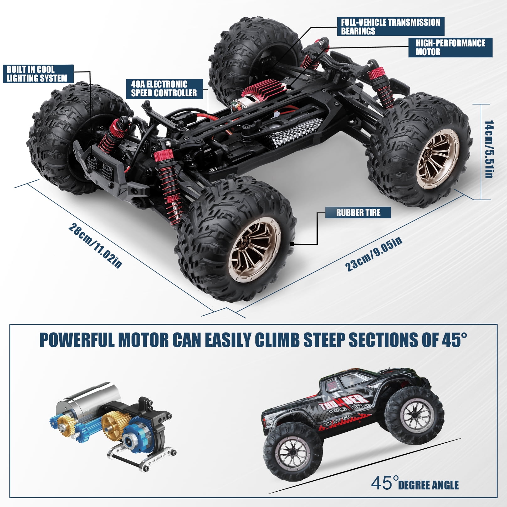 Hot Bee Remote Control Car, 1:16 RC Monster Truck, 24+ MPH 4WD Off Road with Lights Gift for Boys Kids and Adults