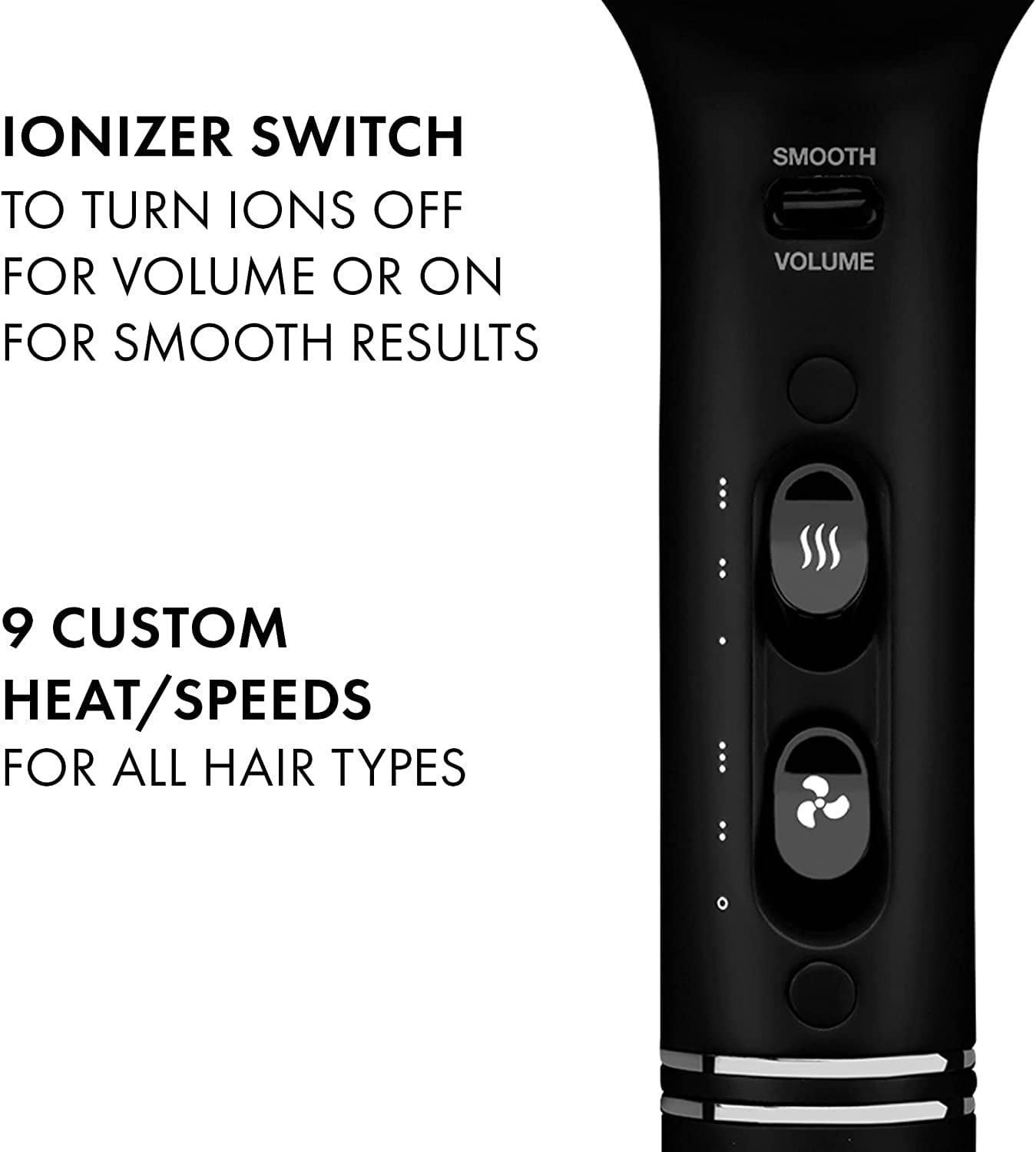 Meet the dryer that goes above and beyond. The Hot Tools™ Pro Artist Black Gold Pro 2000 Watts Ionic Salon Hair Dryer. Salon quality drying and more. Durable AC motor and a mighty 2000 watts of power provide an unwaveringly powerful airflow. Efficient ceramic + Ionic Technology (plus, a built-in ion generator) amp up the performance and dial down on the damage. Customize the experience with multiple heat and speed settings (4 heat/3 speed) to choose from, or with just a press of the turbo boost button for even quicker results. The styling possibilities are endless with the ionizer switch. You choose what you need, ‘off’ to volume up or ‘on’ for some added smoothness. Choose the Hot Tools™ Black Gold 2000 Watts Hair Dryer, because you can never have too much style.