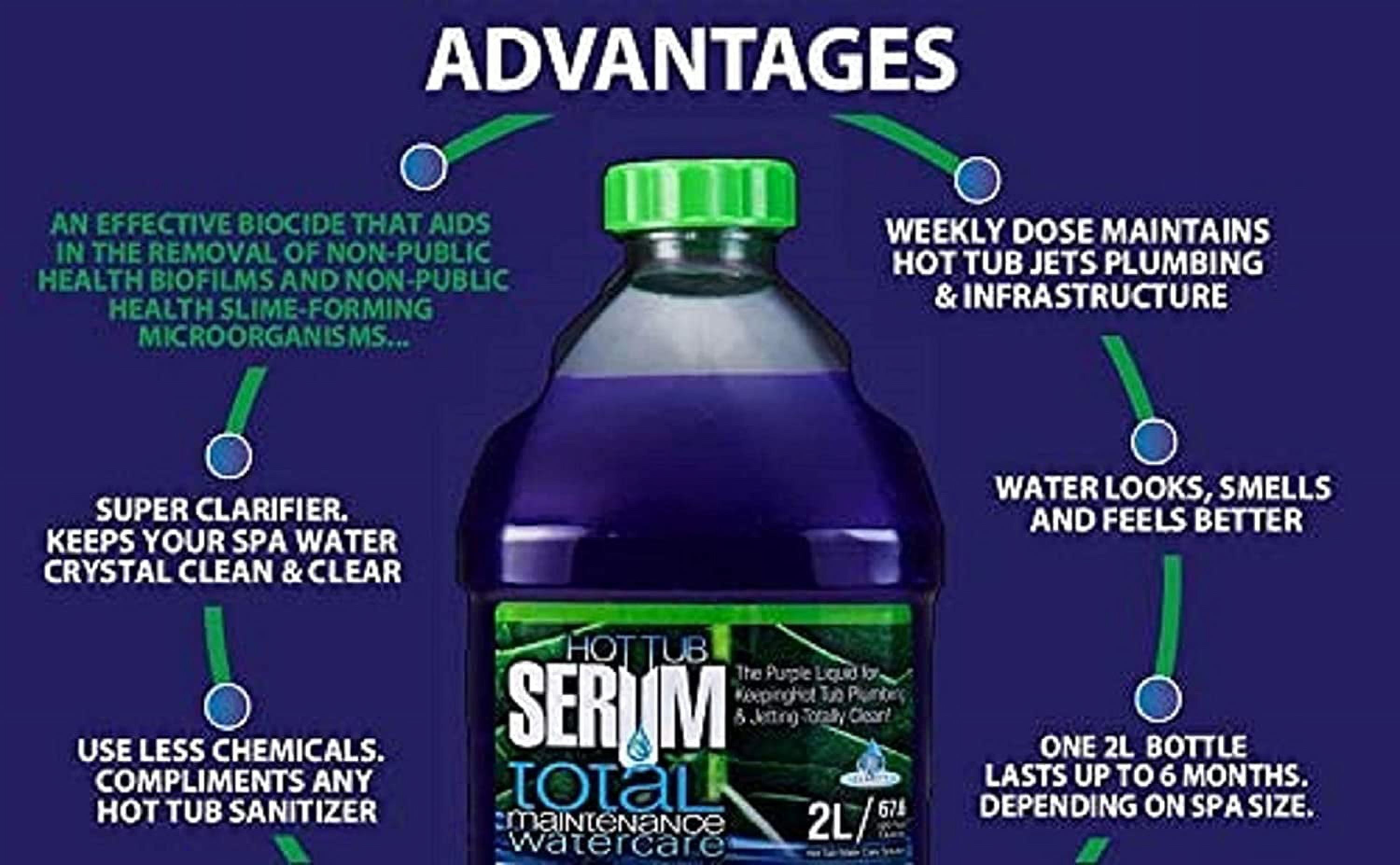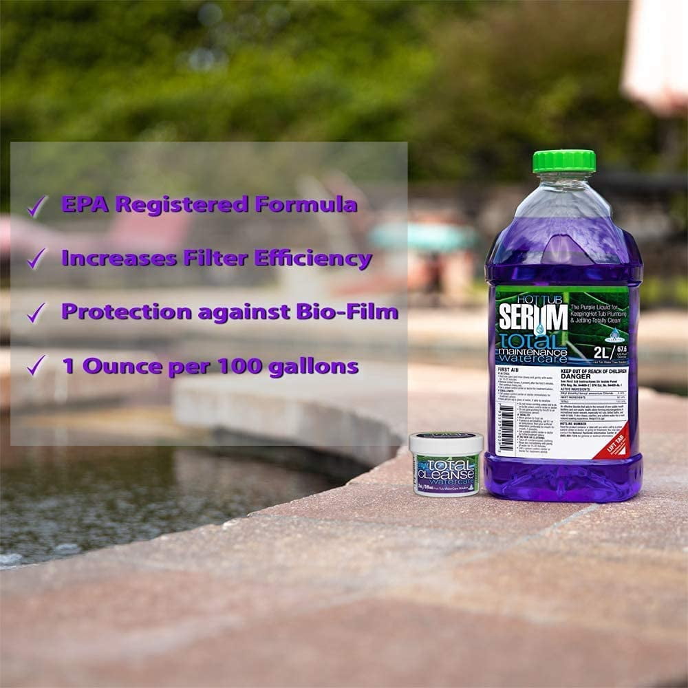 Hot Tub Serum – Total Maintenance (2 Ltr. Liquid) with Total Cleanse Jetted Hot Tub, Spa & Jacuzzi Cleaner/Pool Conditioner Water Care Combo Kit (2 oz. Gel)
