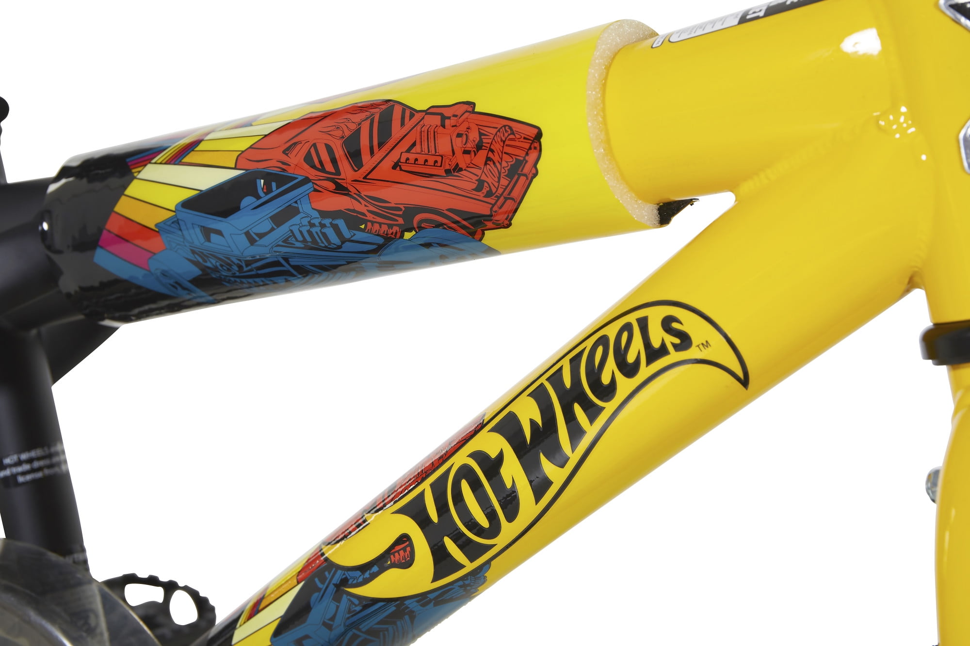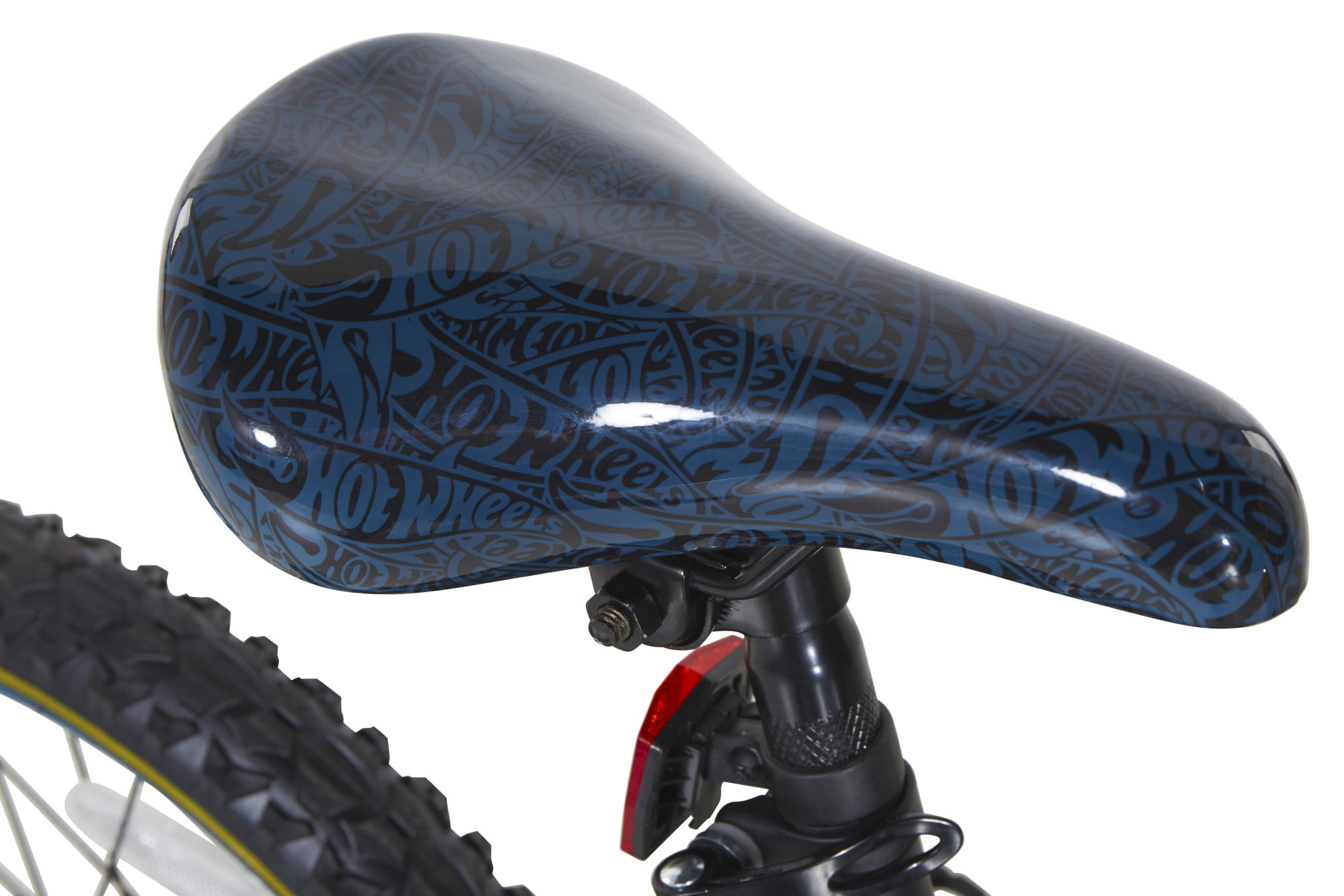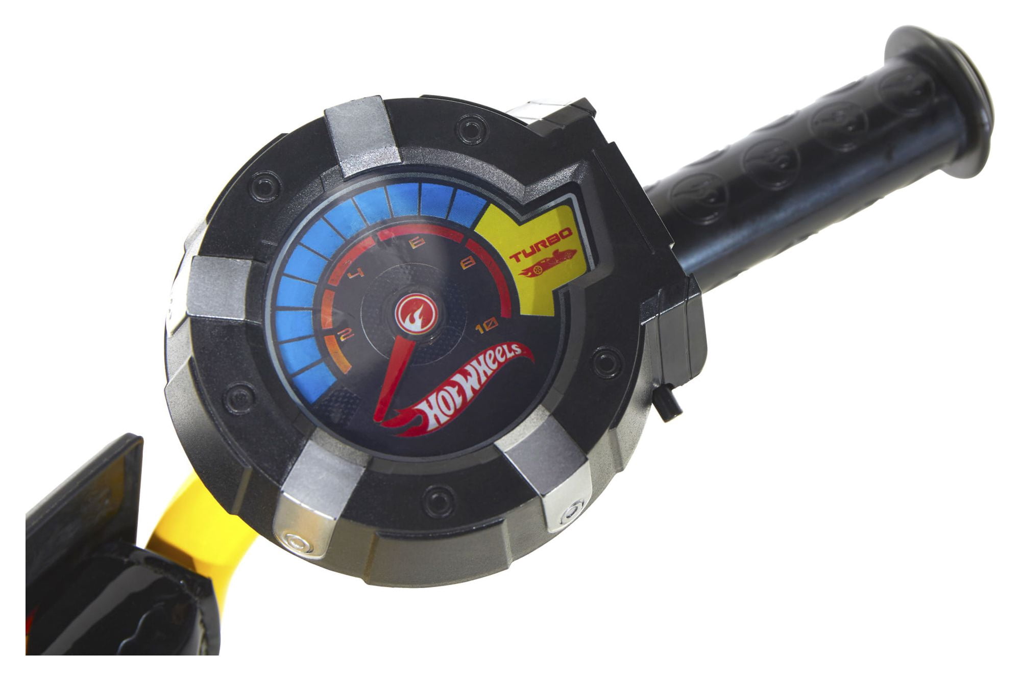 Custom Hot Wheels graphics Hot Wheels Rev Grip Noisemaker Removable, adjustable training wheels Handlebar shield Rear coaster brake and front caliper to provide safe stops
