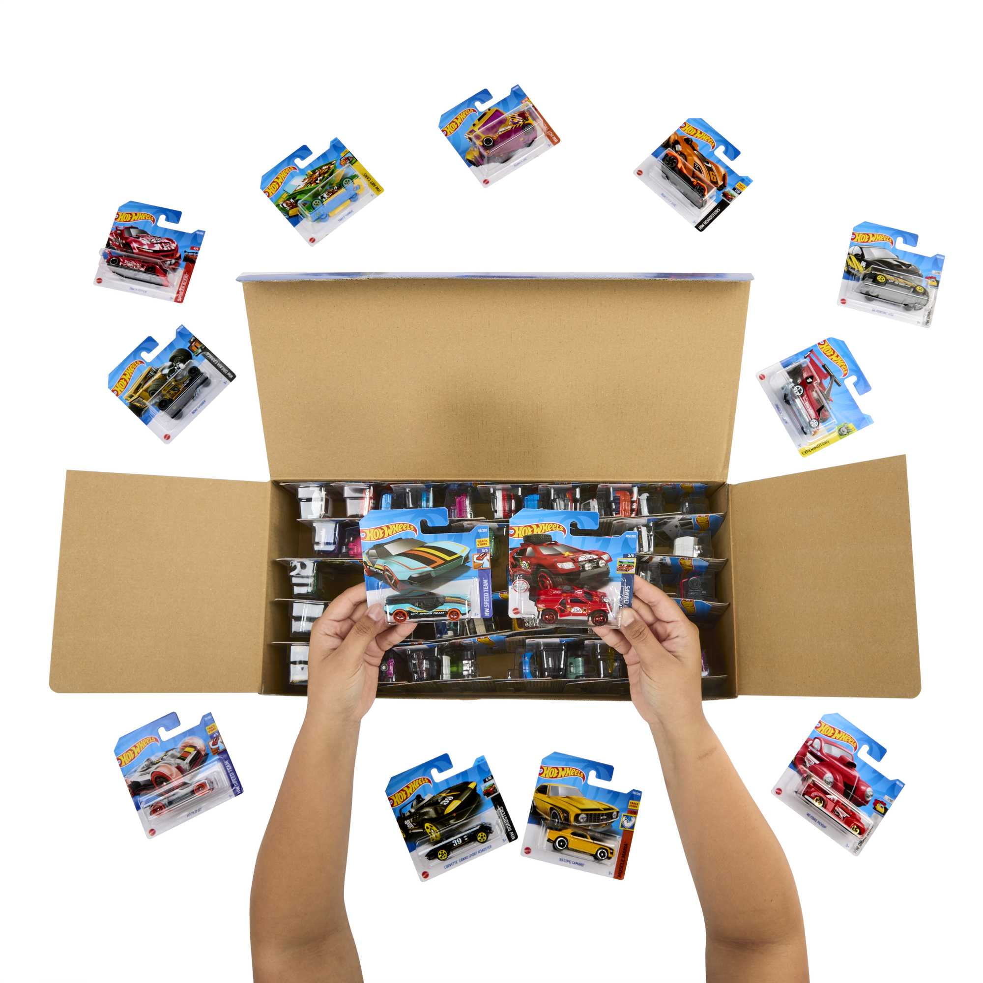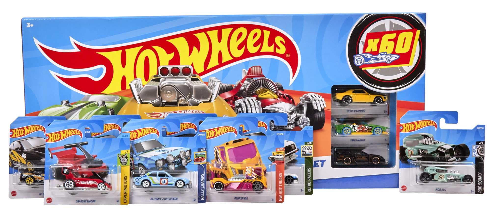 The Hot Wheels 60-Pack gives a jump-start to any new collection or provides a turbo boost to an existing one with 60 Hot Wheels vehicles in one box Each car or truck is designed in 1:64 scale with realistic details and authentic decos just like always Keep all 60 vehicles or hand them out individually as party favors or rewards! Discover a surprise variety of Hot Wheels vehicles in each pack find muscle cars, sports cars, race cars, trucks, trending roadsters and more Hot Wheels vehicles make a great gift for kids and collectors of all ages