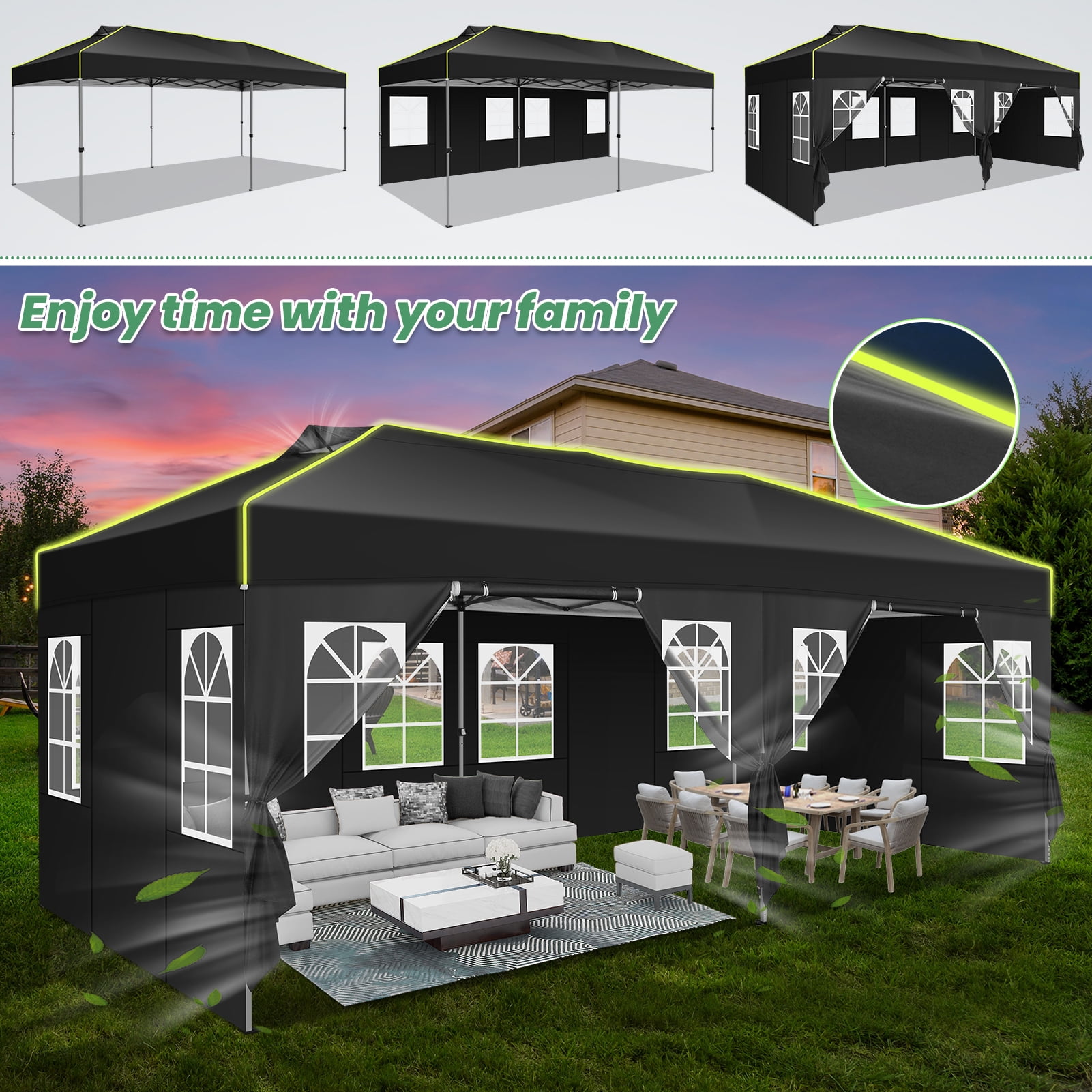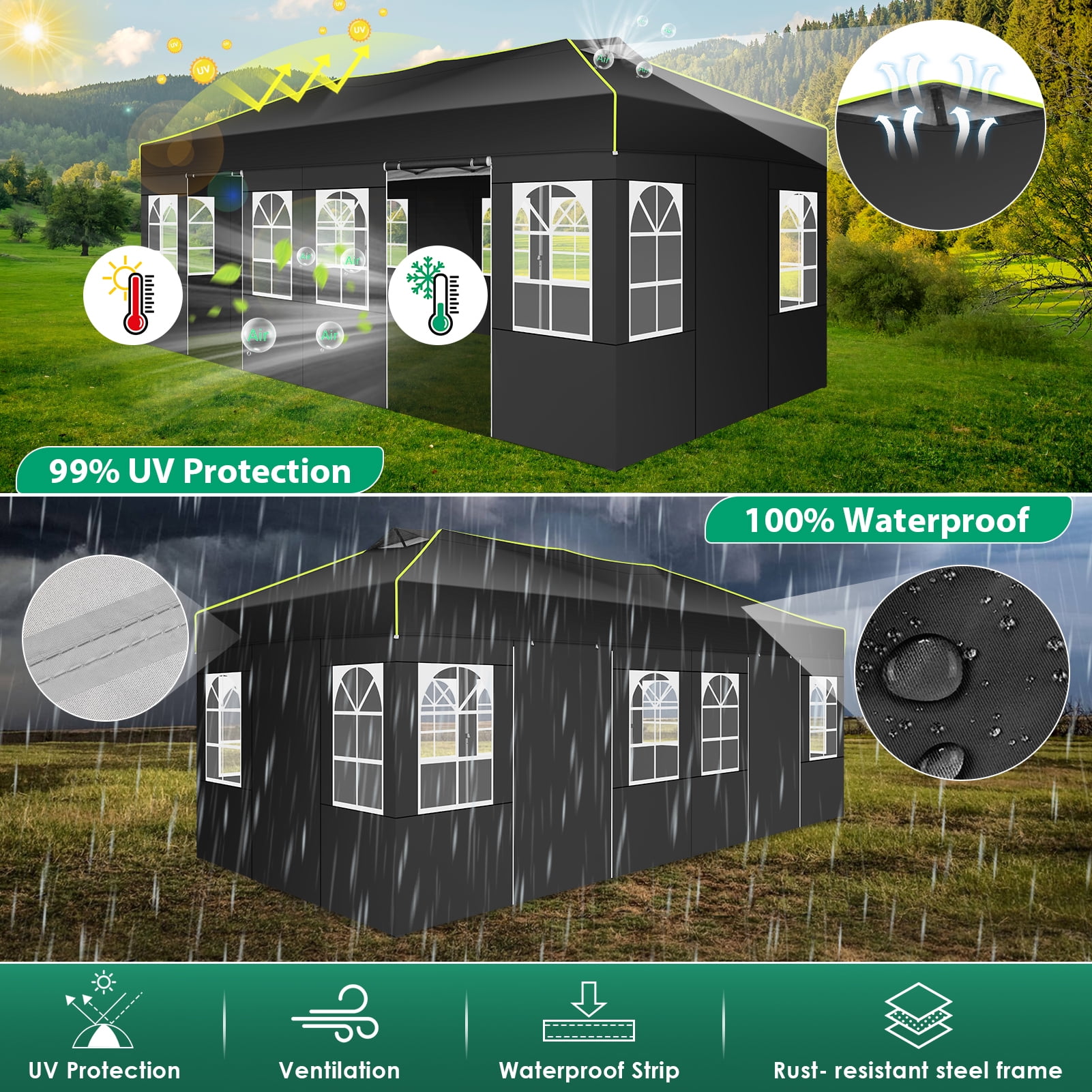HOTEEL 10×20 One Push Setup Pop Up Canopy with 6 Sidewalls, Outdoor Event Shelter Waterproof UPF 50+ Gazebo Tent with Carry Bag, Air Vent, 4 Sandbags for Wedding, Commercial, Party. In whether it’s a spring breeze or a winter chill, you have the freedom to customize your pop-up awning with simple settings.