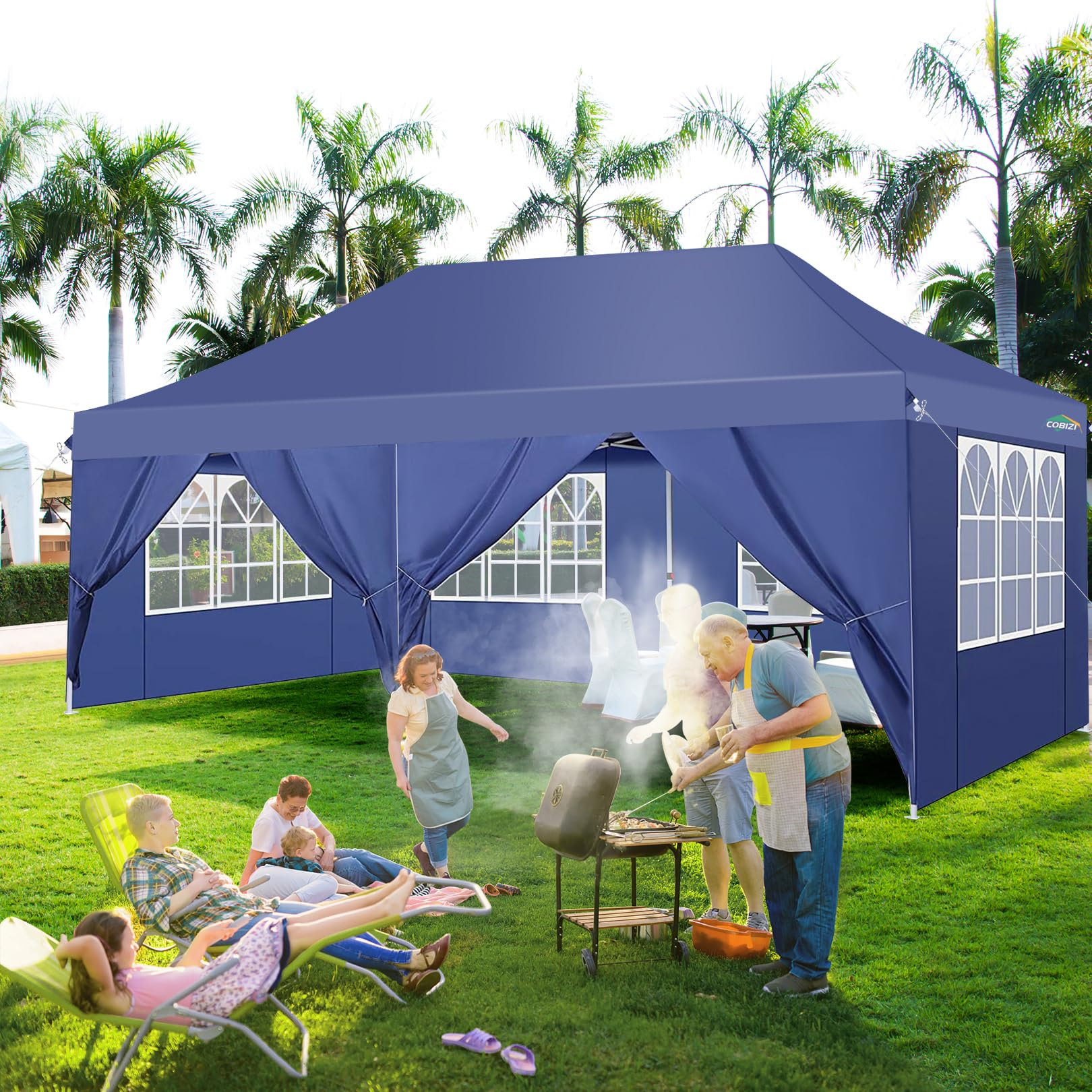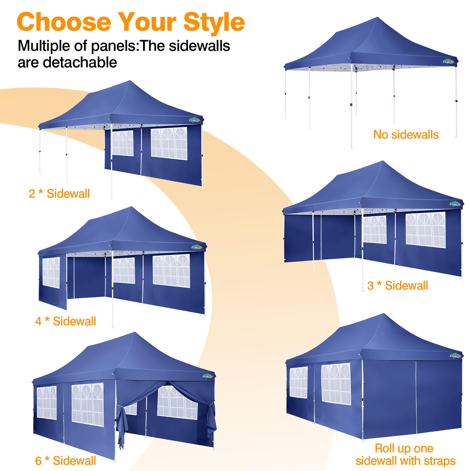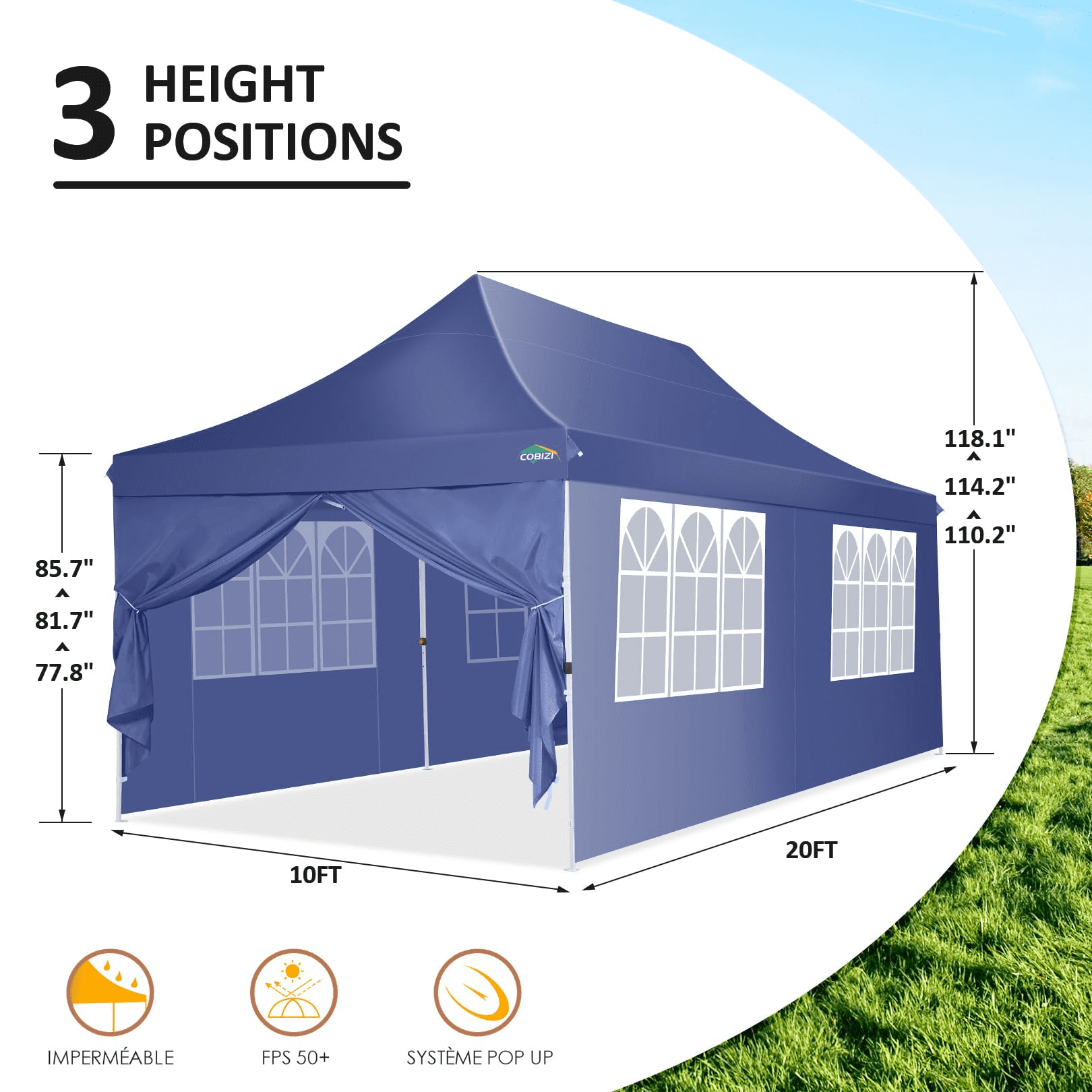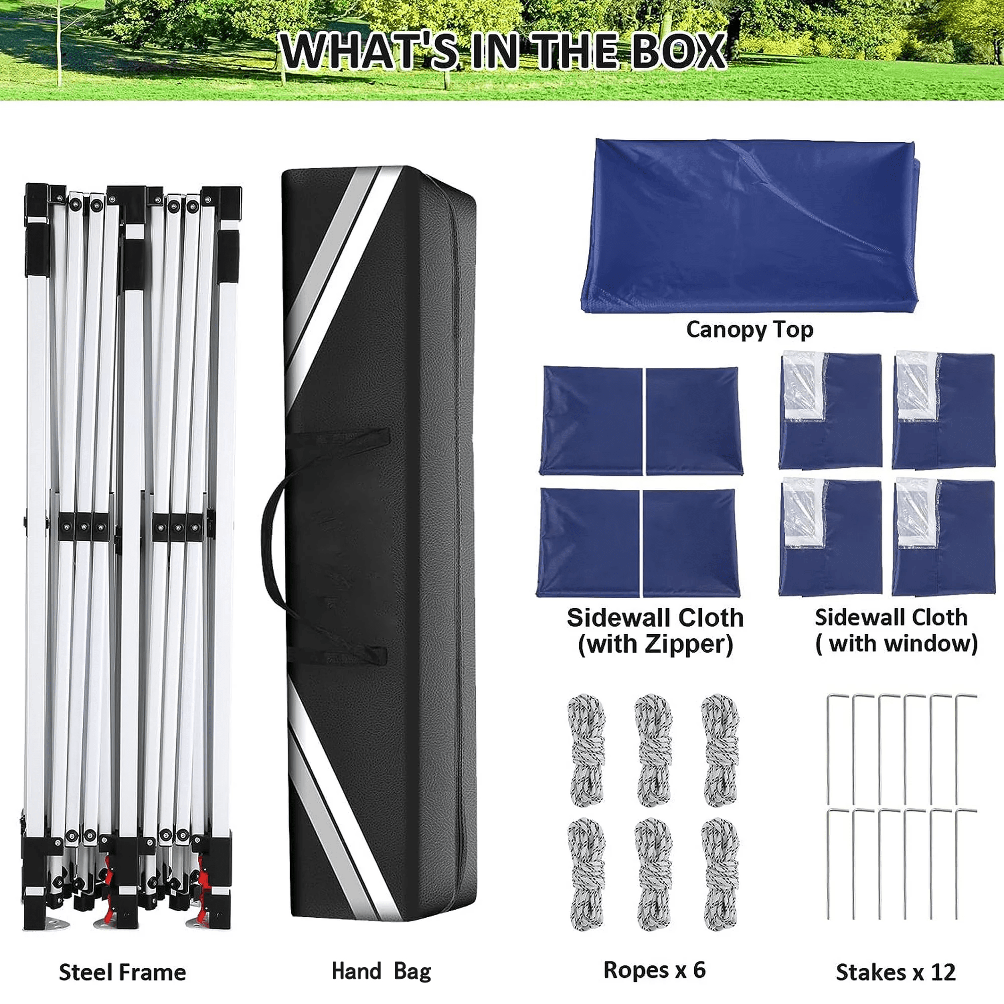 Hoteel 10’x20′ Pop up Canopy Tent with 6 Removable Sidewalls, Instant Outdoor Canopy Shelter with Upgrade Raised Roof and Carry Bag,Blue