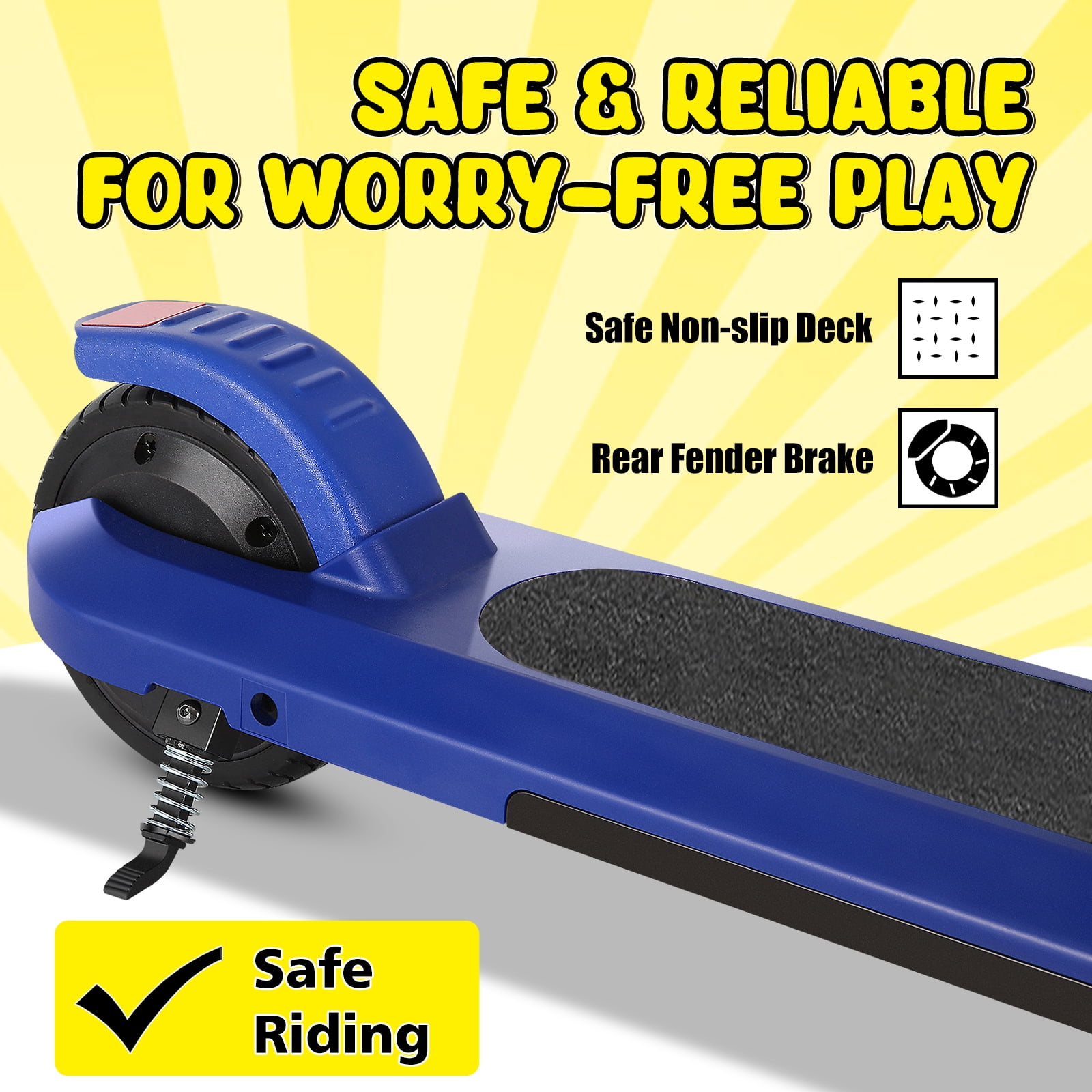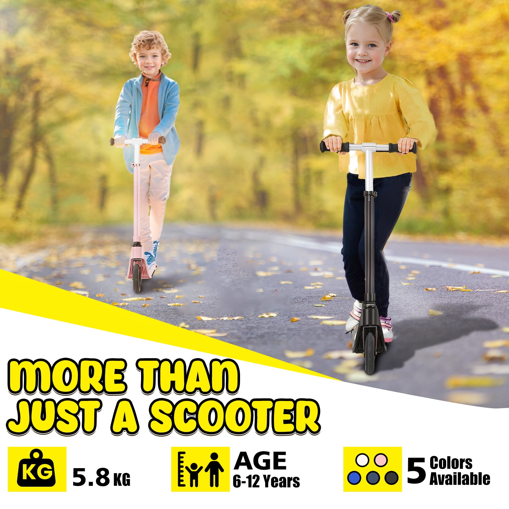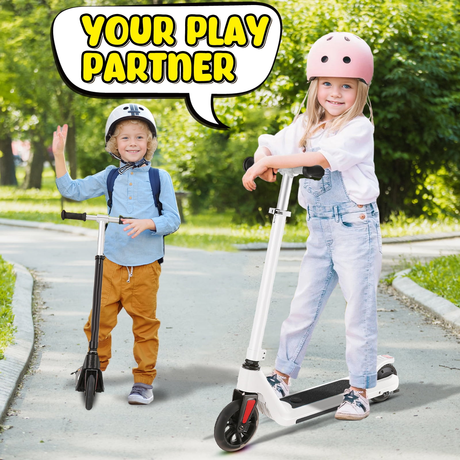 ????【Specifically Design for Kids】 The kid’s electric scooter is easy to install and use, are perfect for riders 6-12 years old to experience the fun of riding. There are two speed modes (4 mph and 6 mph) and four height options (26.2″, 28.1″, 30.2″, 32″) to choose from depending on your child’s preferences and needs. And the scooter weighs only 12.7 pounds, with a maximum load of 110 pounds, it is very convenient for your kids to carry, and can be easily put into the trunk of your car. ????【Enjoy safe riding】The kid’s scooter adopts a start-up assist design tailored for children. The motor will not start until the riding speed reaches 1.8mph/h, thus avoiding the accidental start of the scooter. The dual function design of the rear wheel is both a fender and a foot brake for easy and quick deceleration. The Kid Scooter also comes with non-slip pedals and handles to provide your child with a convenient, safe, stable and enjoyable ride. ????【He is a good partner for your child】 When you are struggling with what gift to give your child, the e-scooter will be your best choices. it is equipped with a large capacity battery, a top speed of 6 miles per hour and 60 minutes of riding time. Two scooter options, which can be used as a kick scooter or an Electric Kick Scooter, Whether it’s a birthday, graduation or Christmas, the sport scooter will be a great surprise gift for kids. ????【Cool Pedal Light】 This children’s scooter is equipped with 5″ PU wheel and pedal light, with colorful ambient lights to make riding more fun and a unique focal point in the crowd. The electric scooter is designed with a kickstand so that your child can easily dock his favorite scooter. ????【Ideal Gift for Kids】HOTEEL E32 can be used as either a kick scooter or an electric scooter. When you’re struggling with what to get your kids for the holidays and birthdays, HOTEEL electric scooter is the perfect choice. Choose from blue, pink, matt black, black and silver. ????【Reliable after-sales service】 HOTEEL kick scooter provides 30-day free return and exchange, with a 1-year warranty policy. If you have any questions about the scooter, please feel free to contact us, we will reply you within 24 hours and do our best to solve any problems for you.