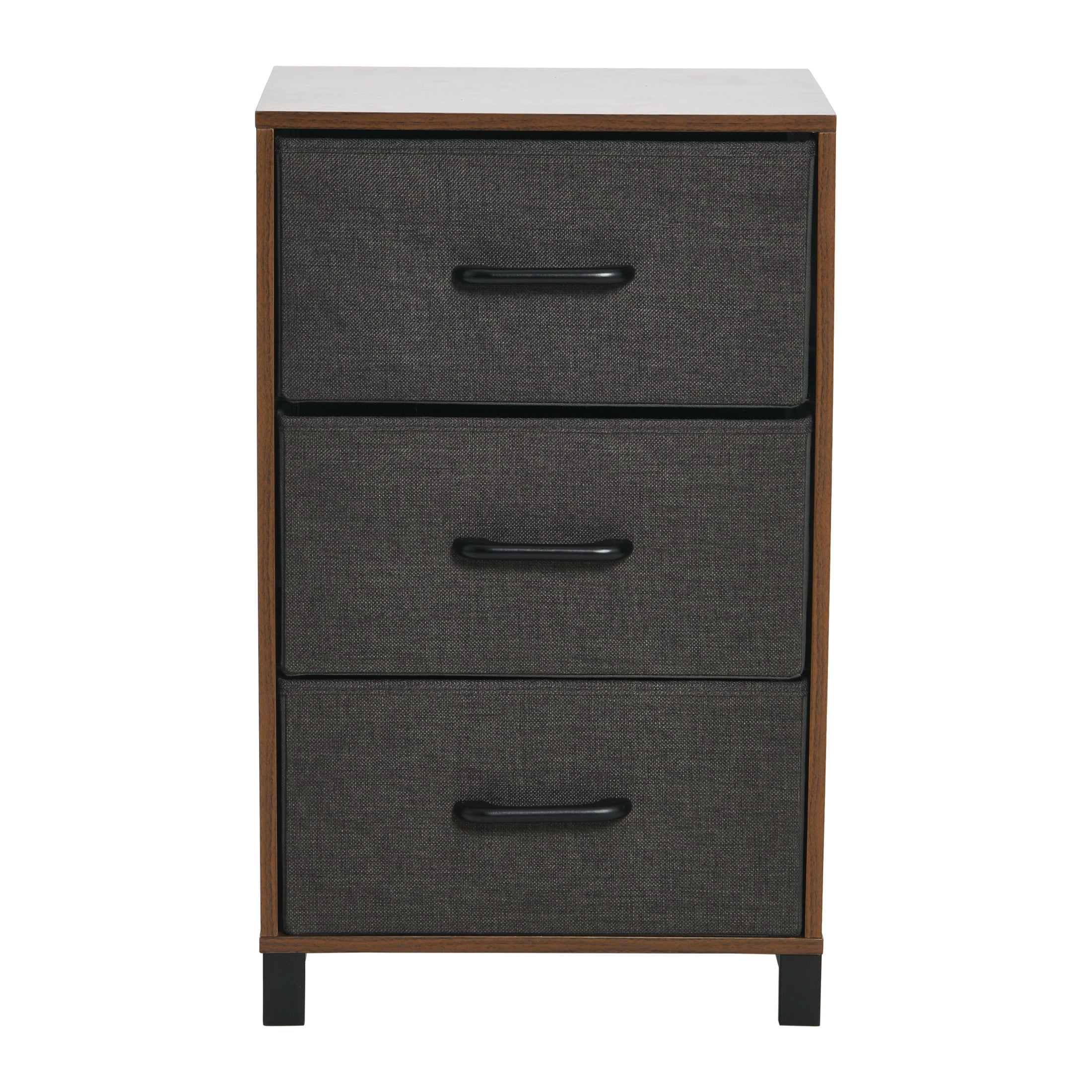 This 3 drawer dresser is a charming storage option that can help organize and pull together any room of your home. The dresser will introduce a splash of style while adding compact storage. This night stand is made of a sturdy frame, lined with an attractive wood laminate. This neutral tone matches perfectly with the drawers. These drawers are lined with a soft yet durable fabric, and each comes with a convenient handle. The frame is kept up and off the ground with the strong metal feet as well. Lightweight and narrow, this piece is a great option for individuals with smaller living spaces such as apartments, dorms and townhouses. The compact design allows this to fit nicely into corners, next to the couch or other furniture. A cross wire backing not only keeps the drawers from falling out the back, but it also cuts down on the piece’s weight. To make moving this piece even easier, the drawers can be folded for storage. The cozy yet simplistic design of this dresser gives it a wide range of functionality. It can be used in the bathroom as a small vanity table, in an office space for extra desk storage or in the entryway to keep your keys and other out-the-door essentials, Organize clothing accessories, reading material, linens and more with this 3 drawer dresser. Its compact design and attractive style make it a delightful addition to your collection of furniture. For California Residents The State of California has determined that this product can expose you to chemicals including formaldehyde (gas), which are known to cause cancer or birth defects or other reproductive harm. For more information go to .