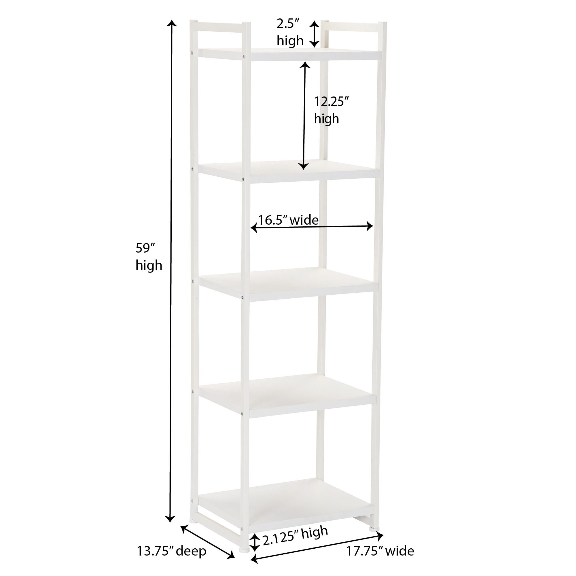 Household Essentials Jamestown Narrow 5 Shelf Open Storage Bookshelf Scandinavian White and White Metal