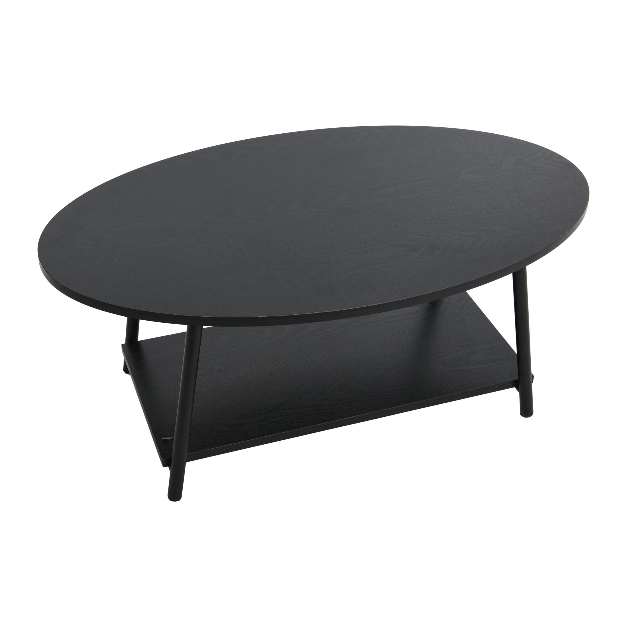 Household Essentials Jamestown Oval Coffee Table with Storage Shelf Black Oak Wood Grain and Black Metal