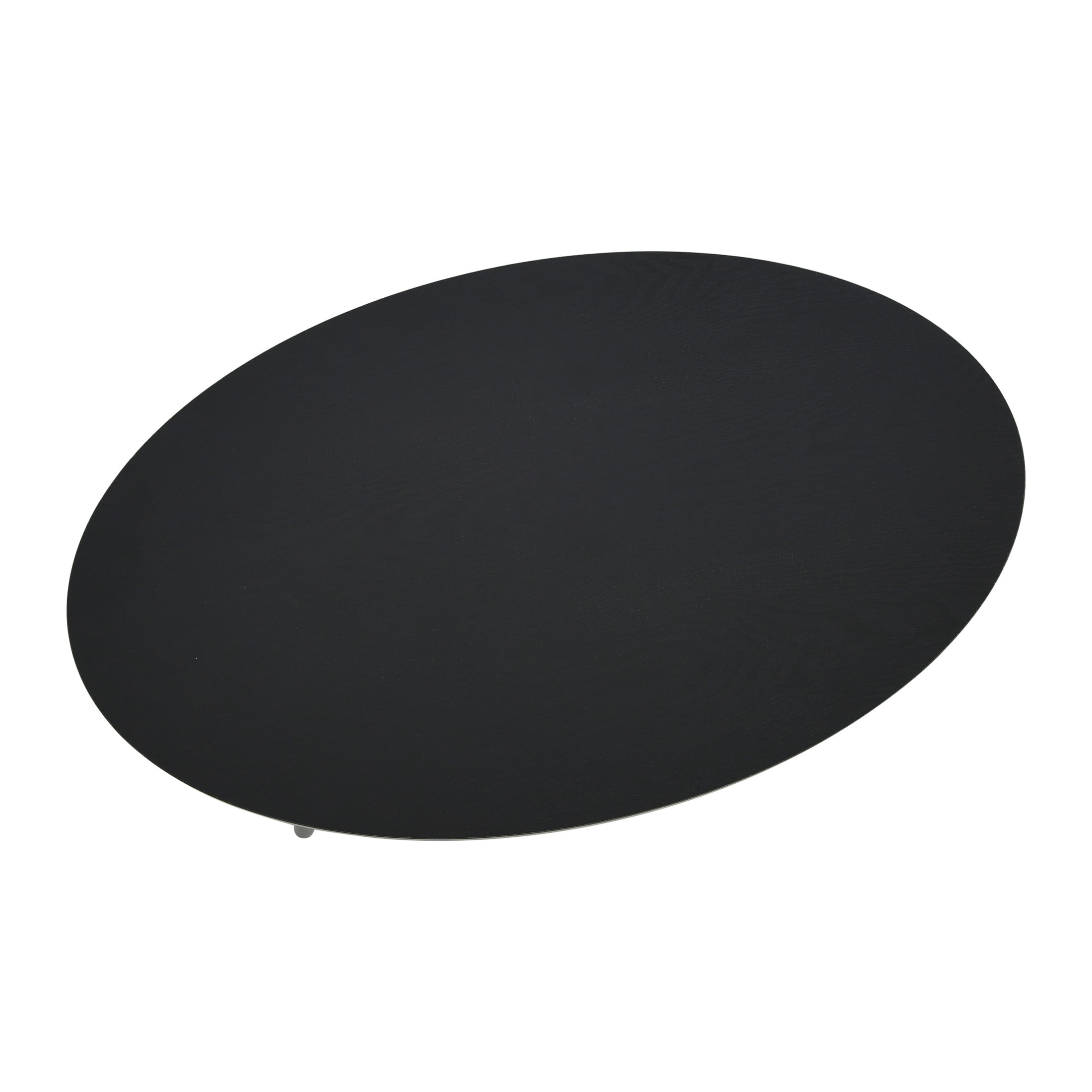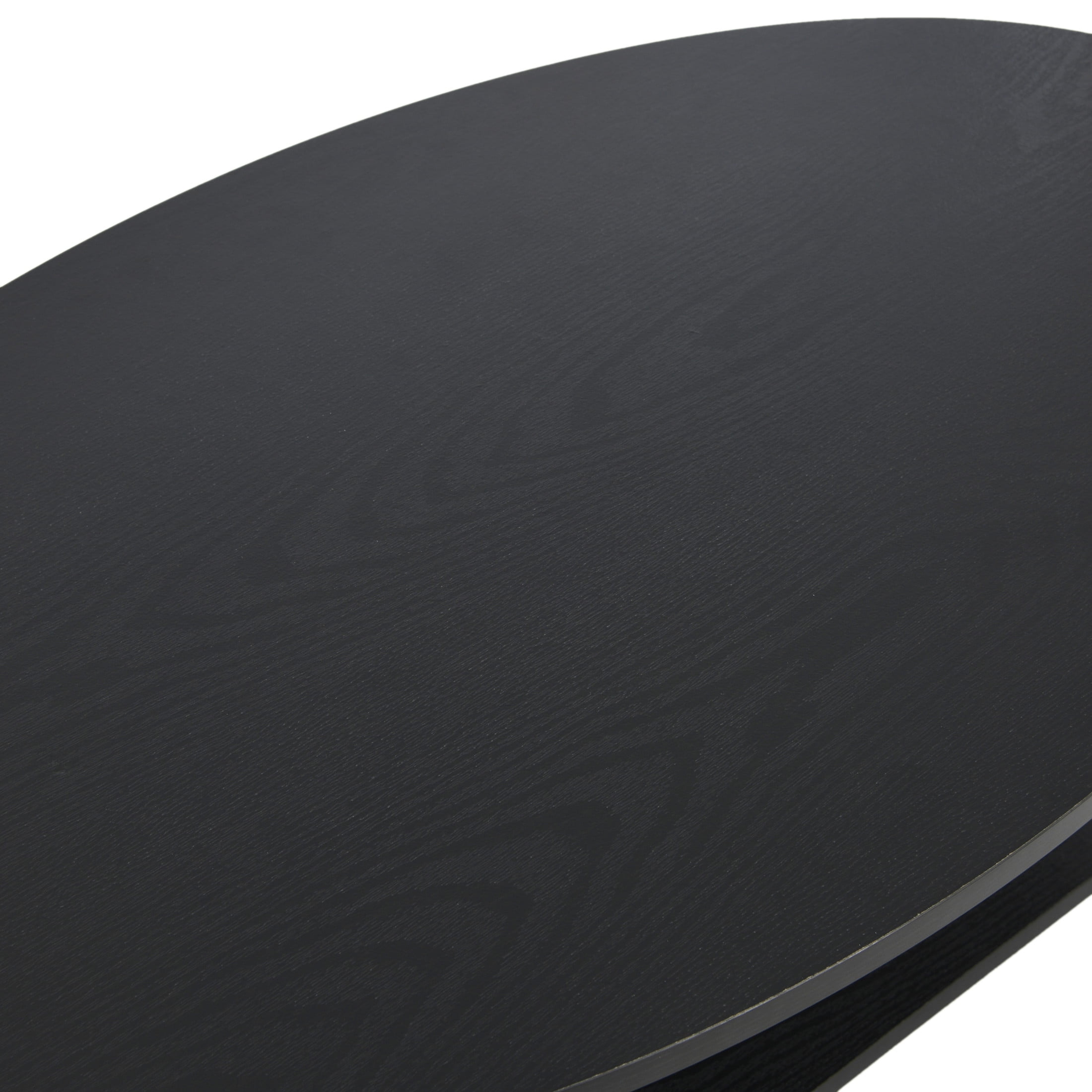 This oval coffee table is a wonderful addition to any home or space. Its low profile and slim design make it perfect for use as a coffee table, but it could also be used as a side table, as an end table, or elsewhere in the home. The table has a lower storage shelf for ample space to store coffee table books, magazines, remotes, coasters, and any other items you want to keep handy or on display. The table’s oval top and rectangular shelf make for an interesting and modern look. The table has a steel frame with slightly angled legs for a look reminiscent of mid century modern design. The tabletop and shelf are made of high-quality engineered wood with a smooth laminate exterior. The lightweight materials and frame keep the table durable without being heavy, weighing just under 25 pounds, and the laminate makes the table’s surface much more durable and easier to care for than real wood. To clean, simply wipe the surface with a damp cloth. The laminate has a faux dark woodgrain finish with stylish and purposeful distressing for a worn, restorative look. Because the distressing on each piece is unique, your table may vary slightly from the photo examples. The mix of warm-toned faux wood and black metal make for a sleek and chic design. The table comes ready to assemble and is easy to put together. This table coordinates with other pieces in the Household Essentials Black Oak collection.