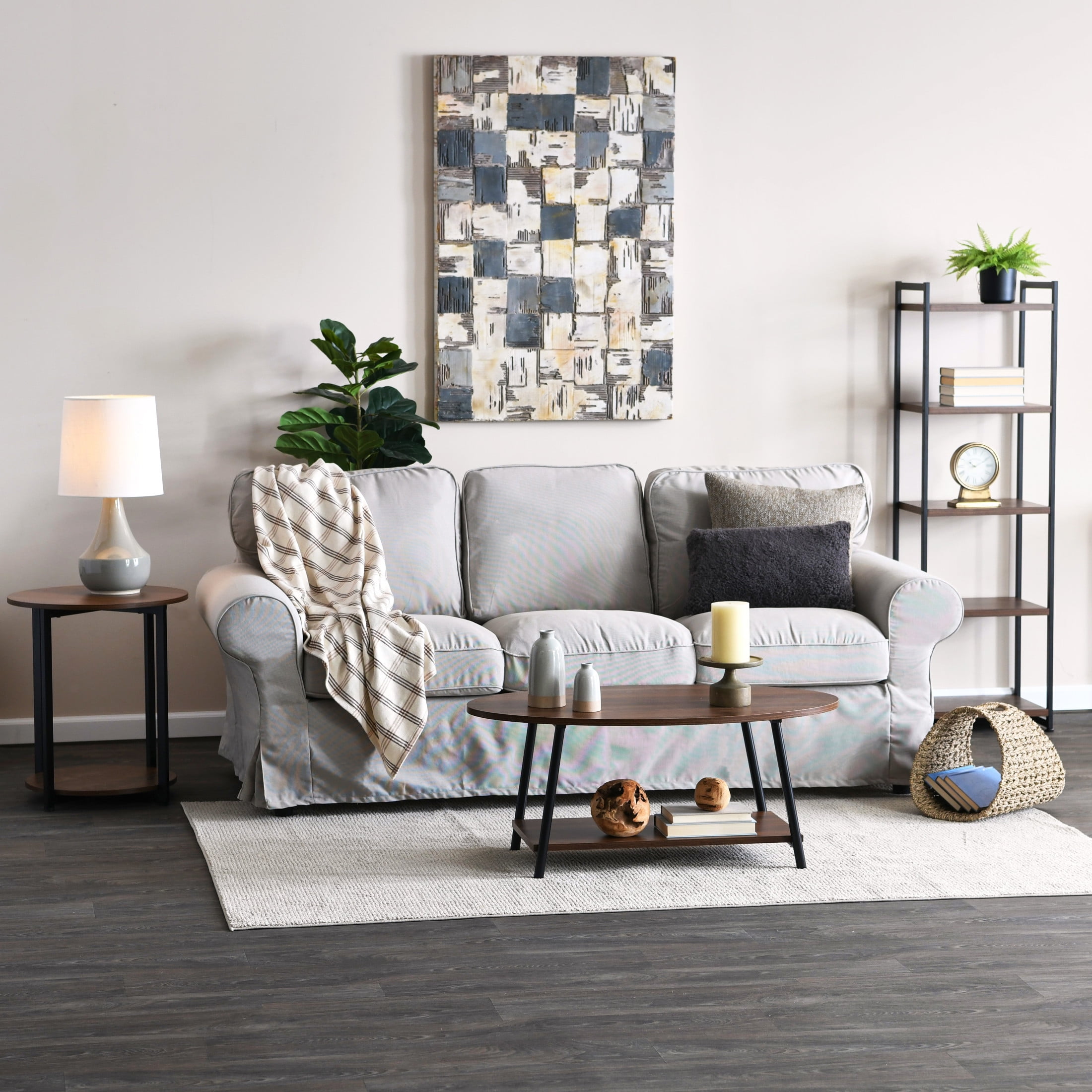 Household Essentials Jamestown Oval Coffee Table with Storage Shelf Mid Century Walnut Wood Grain and Black Metal
