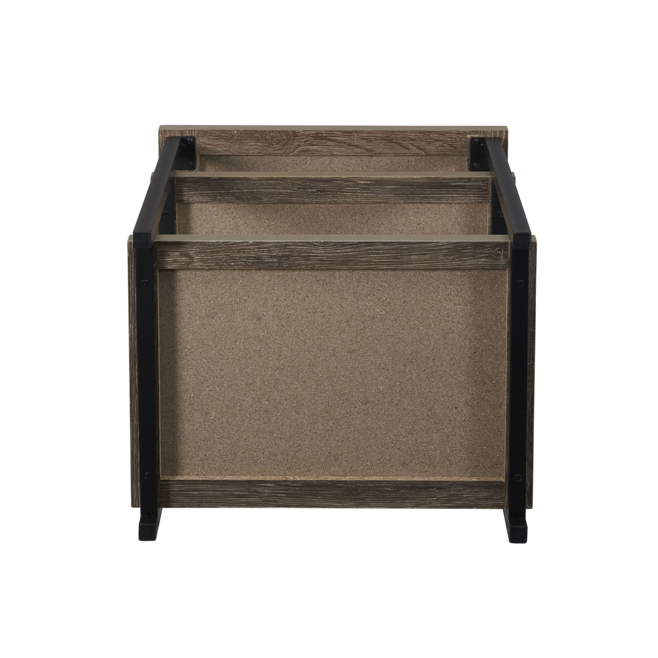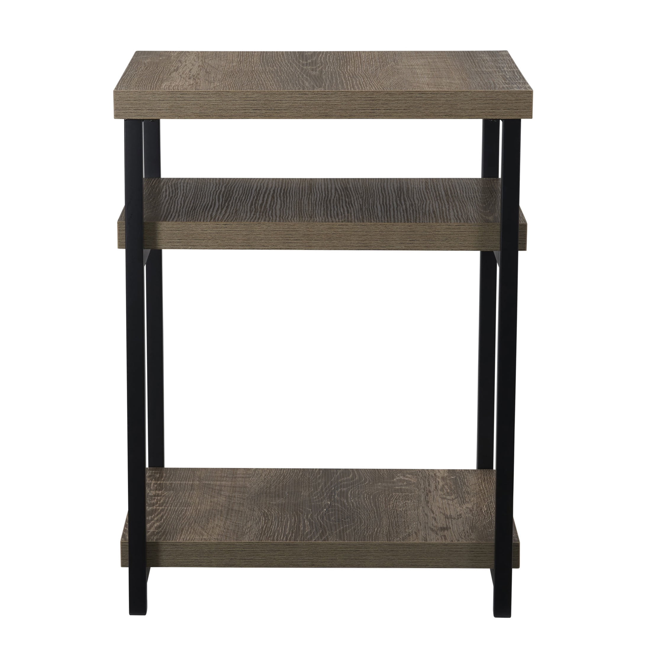 Household Essentials Jamestown Rectangular Side End Table with Storage Shelves Ashwood Rustic Wood Grain and Black Metal