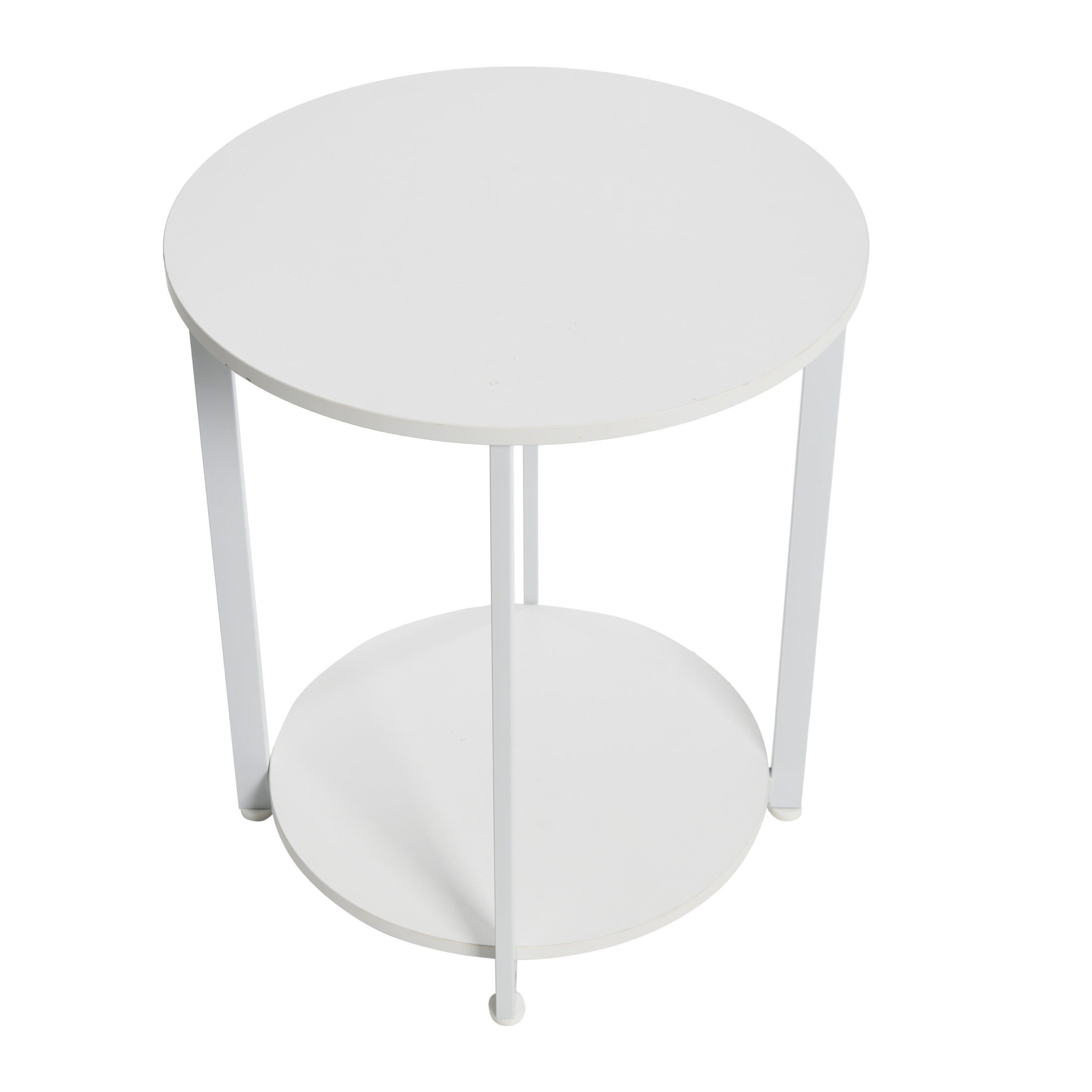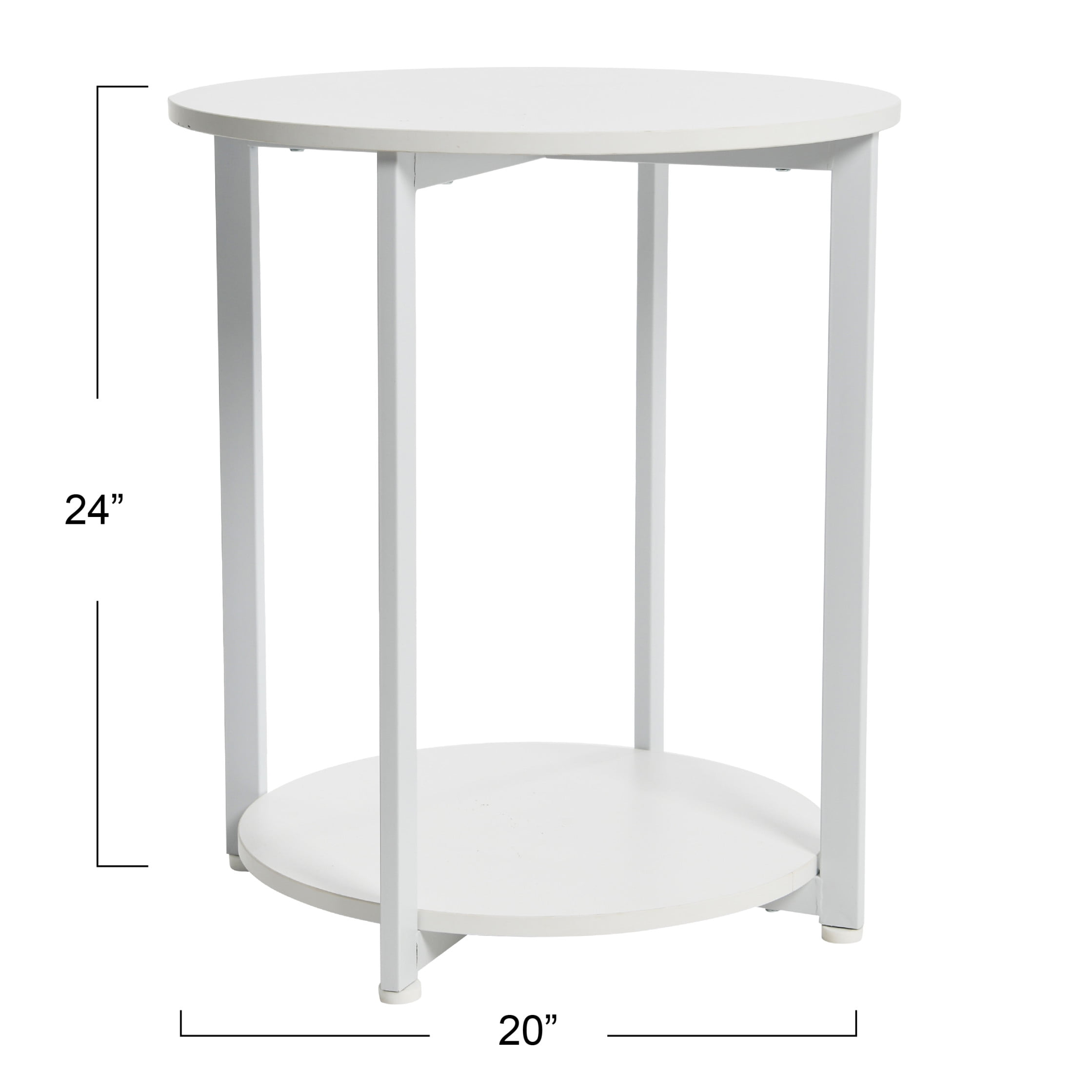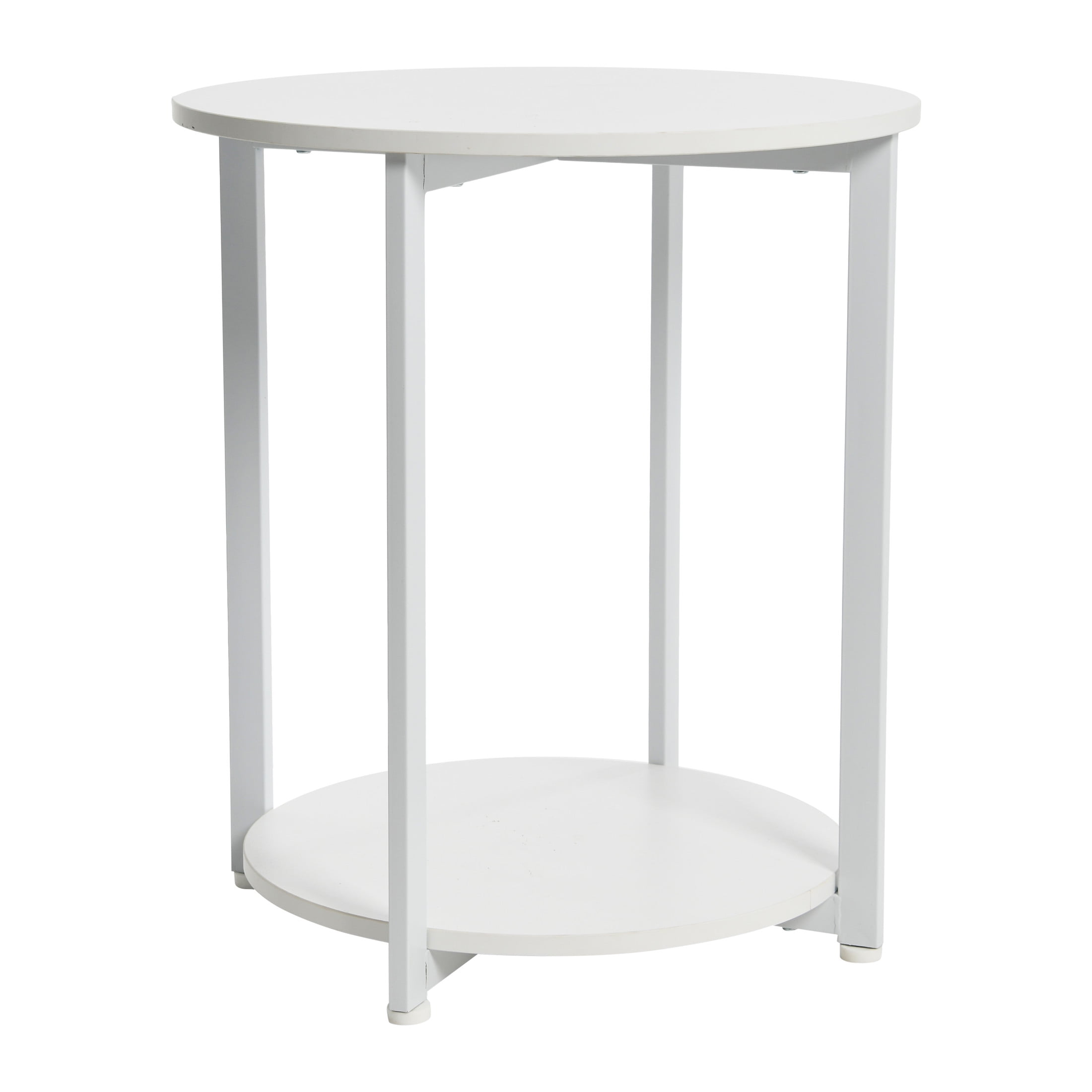 Household Essentials Jamestown Round Side End Table with Storage Shelf Scandinavian White and White Metal