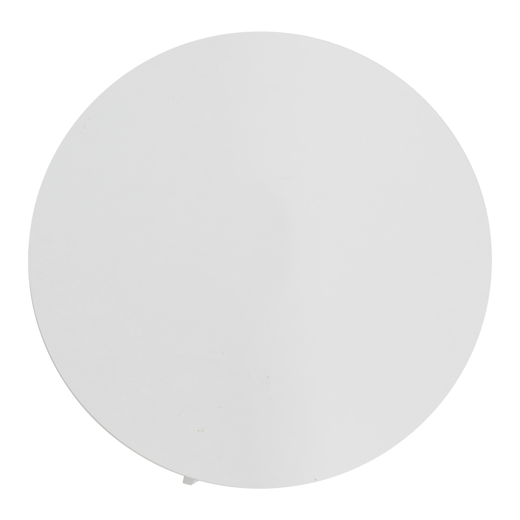 This round end table has a minimalist, modern style and a low profile, making it perfect for use as a side table, end table, nightstand, or as a small table in any space in your home or office. The rounded table top and storage shelf are perfect to display decorative pieces or keep small items stored away neatly. This round end table has a white steel frame, and the table top and shelf are made of high quality engineered wood with a smooth white laminate exterior. Not to mention, the smooth laminate ensures the shelves are durable, easy to clean and attractive. The all white-inspired element adds an easeful, cool-toned elegance to this piece and offsets the modern industrial metal frame. The neutral design easily fits into almost any decor style and perfectly coordinates with other pieces in the Household Essentials Scandinavian White furniture line. The table’s minimalist frame allows it to provide essential storage space without taking up too much visual space, and the rounded shape makes the table easy to maneuver around and fit in almost anywhere. This end table is easy to put together and comes ready to assemble.
