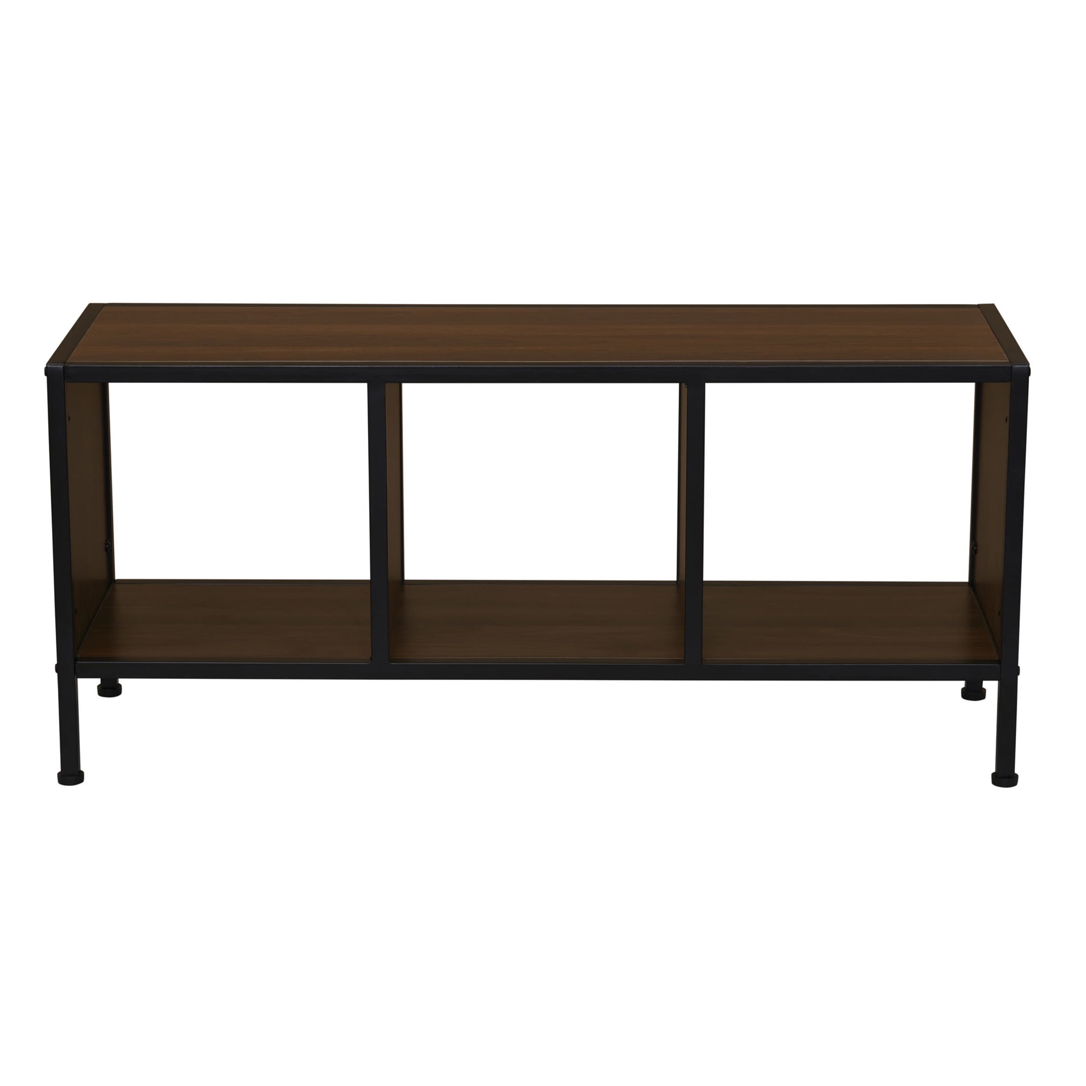 Functionality: This flexible TV stand with storage features 3 square cube compartments are perfectly sized for a variety of standard cube bins, baskets, or boxes are a perfect fit for LP records, and it’s designed to double as a cube storage coffee table. Designer’s Thoughts: The beauty of the Jamestown collection is its simplicity. Minimalist lines and a contemporary aesthetic make all the pieces in the series easy to fit into just about any style decor. And with a variety of matching tables and shelves to choose from this series has something for everyone. In the Mid Century Walnut finish the classic wood tone that’s quintescentially Mid Century Modern takes the collection into a more Vintage aethetic. However, part of what makes Mid Century Modern such a popular style is it’s ability to blend seamlessly into both Traditional and Modern decor. One could say Mid Century Modern was the first Transitional style which no doubt has led to its longevity. Quality Materials and Construction: Durable steel legs and frame paired with high quality engineered wood finished in scratch resistant wood grain laminate. Good to Know: This TV stand can accomodate up to a 46″ flat screen TV. 42.75″W x 19″H x 13.75″D