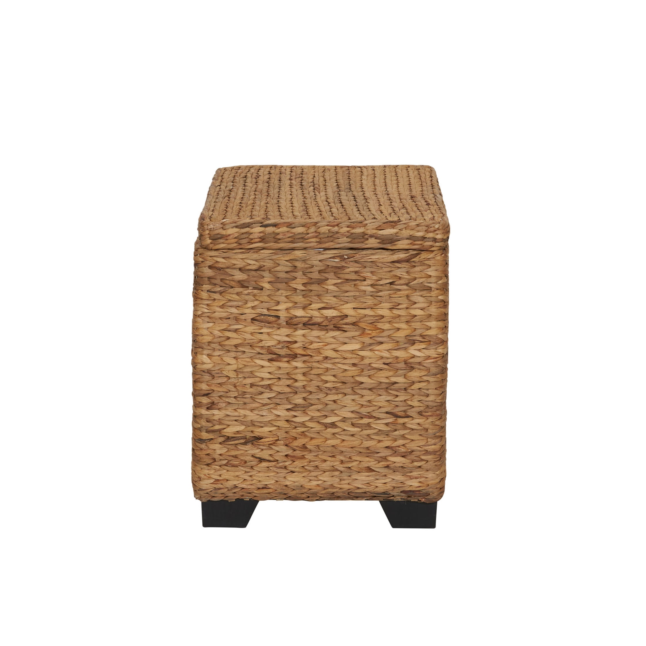 Curve-front lidded chest with natural-colored fabric liner Footed storage chest with hinged lid for spacious extra storage Living room storage, coffee table, window box storage, and more! Hand-woven wicker: natural-colored water hyacinth 31.25″ W x 19.8″ D x 16.54″ H / WEIGHT: 19 lbs No assembly required
