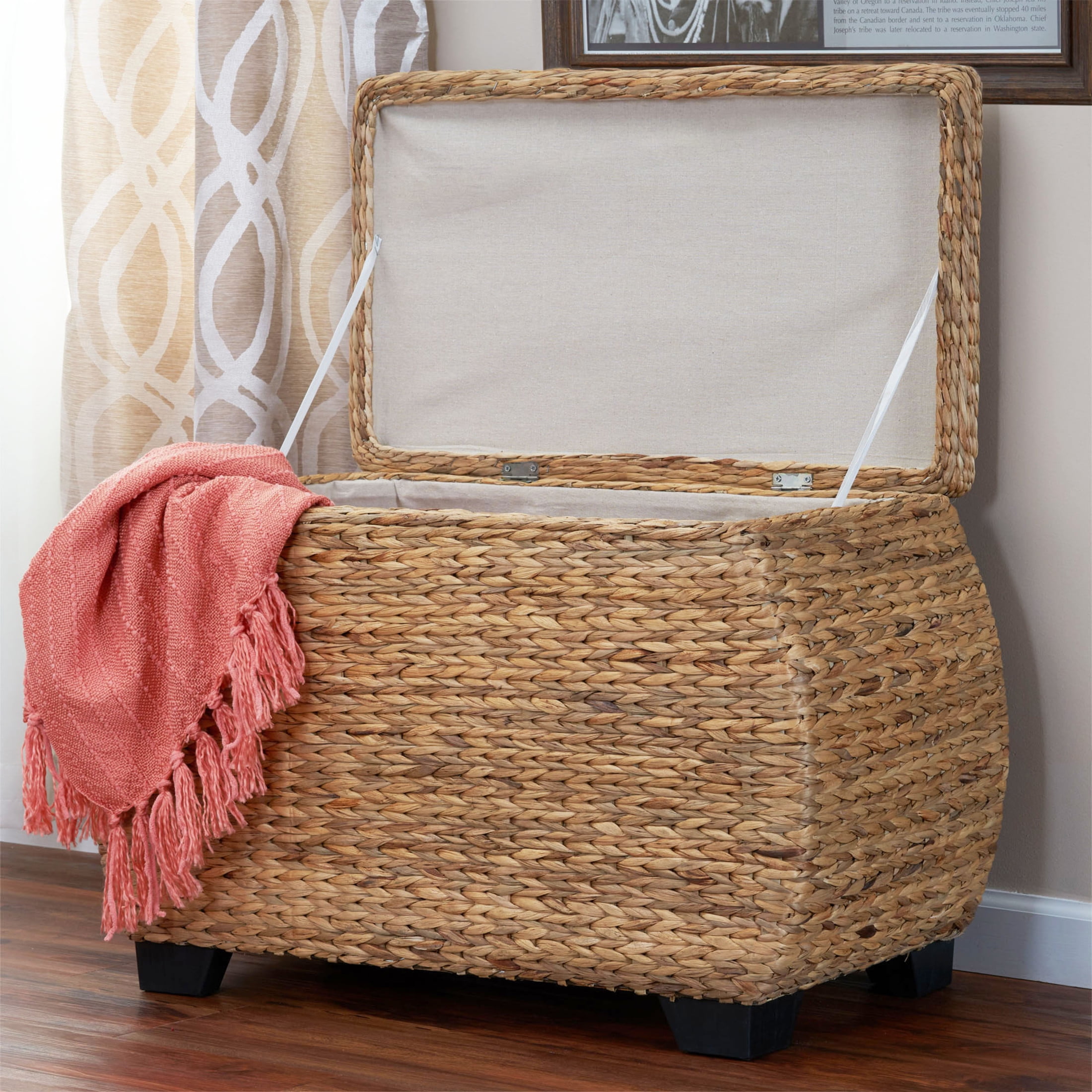 Household Essentials Large Curved Wicker Storage Chest with Liner | Water Hyacinth