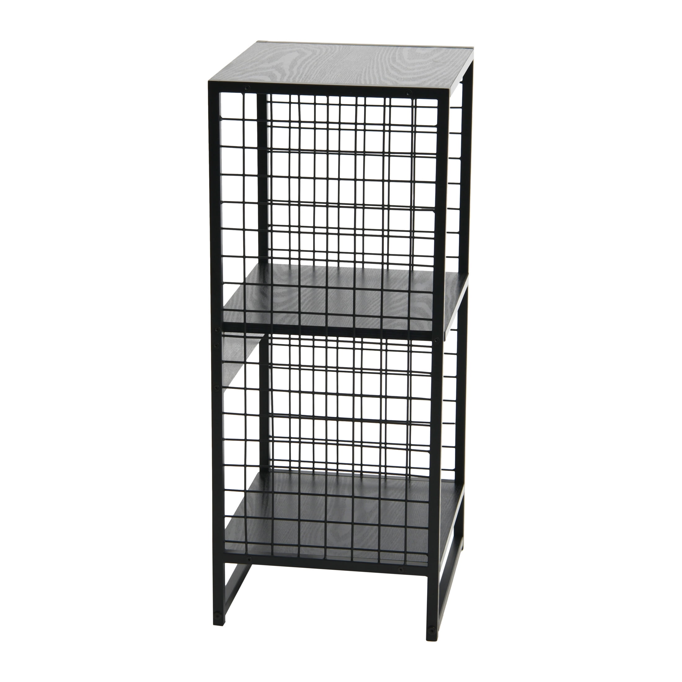 This attractive 2 cube wall unit adds modern organization to any space. This unique and stylish piece makes a stylish addition to any room while also providing storage options. Use any standard cube organizer bin in the shelves to keep items tucked away and out of sight, use the shelves without bins to display items, or both! This cube wall unit’s slim profile makes it great for a variety of applications. You could use it as a side or end table for living room furniture, a nightstand in the bedroom, a place to store toiletries and other items in the bathroom, and more. Wherever you have a need for a small storage solution, this cube unit will do the trick. The shelves are made of durable black metal wire mesh and attractive wood grain laminate, adding a modern mix of warm natural and industrial materials to any space. With such neutral colors and classic design, this piece is sure to fit in with a variety of decor styles for years to come.