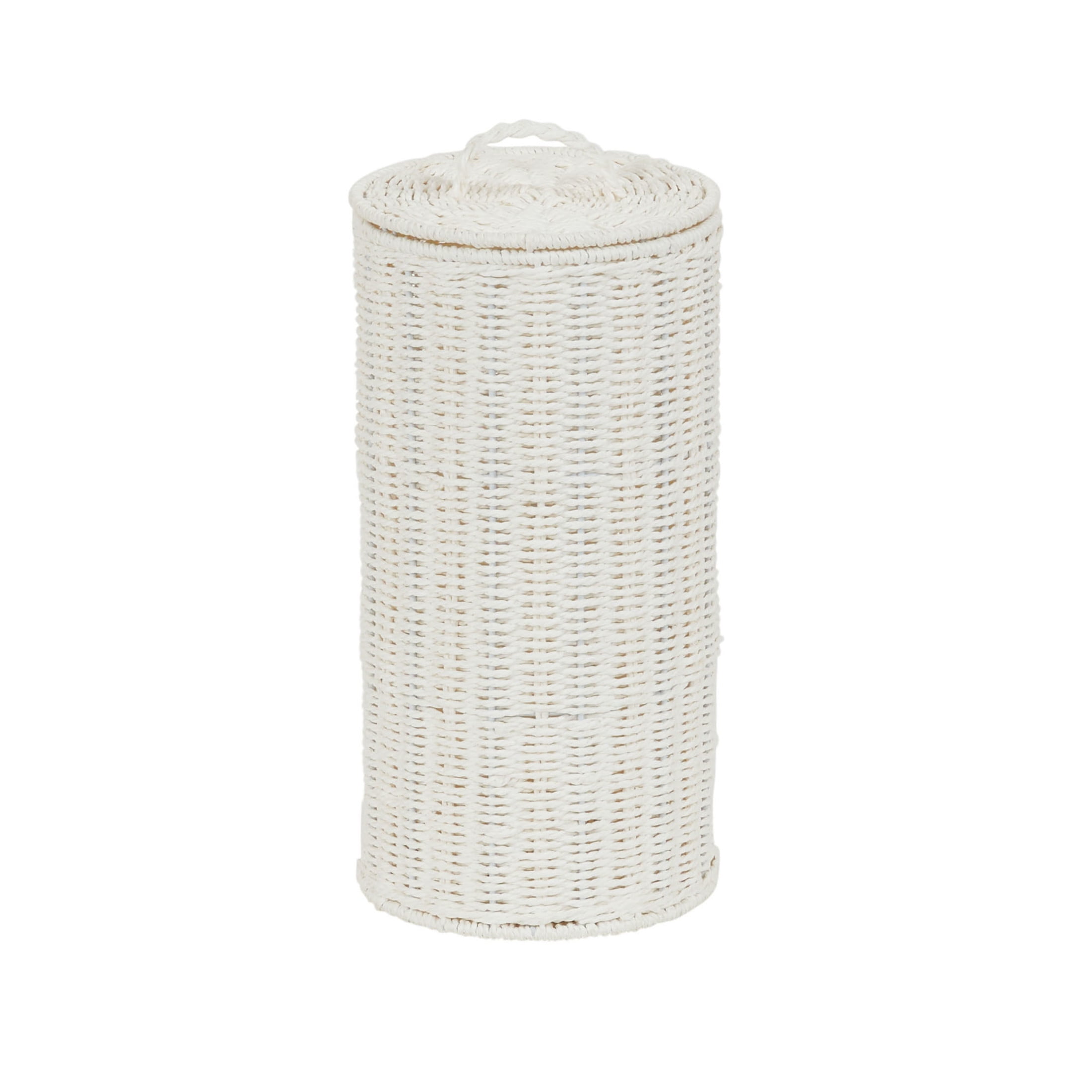 Add practical, functional and beautiful storage to your bathroom with this wicker toilet paper holder. With a lid to keep rolls secure and out of sight, a metal rod in the center to keep rolls secure, and wide design to accommodate even the largest standard toilet paper rolls. Use to keep extra toilet paper rolls accessible but out of plain sight while adding a functional decorative element to your bathroom. With its slim design and classic style, this wicker toilet paper holder can squeeze into just about any space and fit with almost any decor style. 14.96” H x 7.75” Diameter