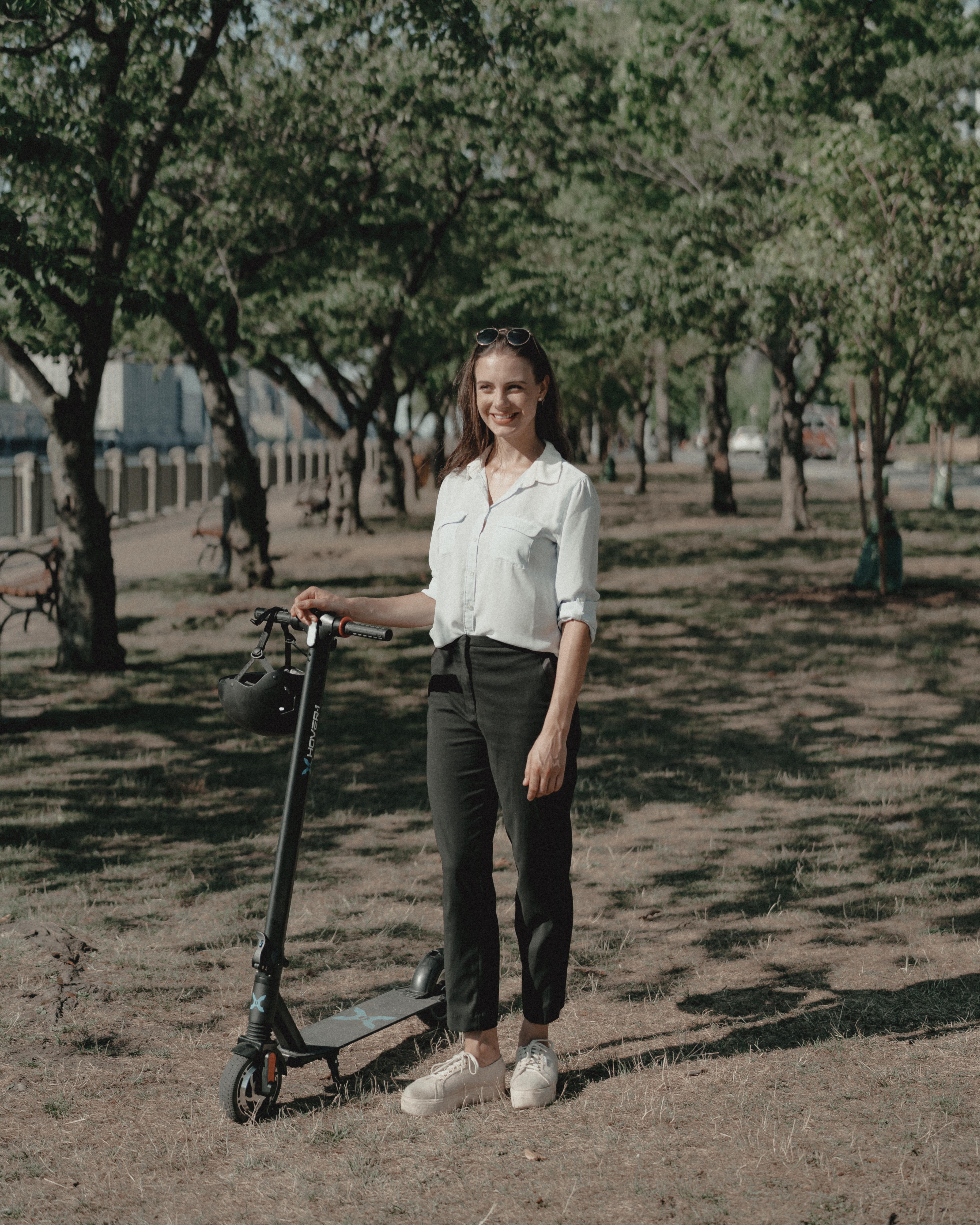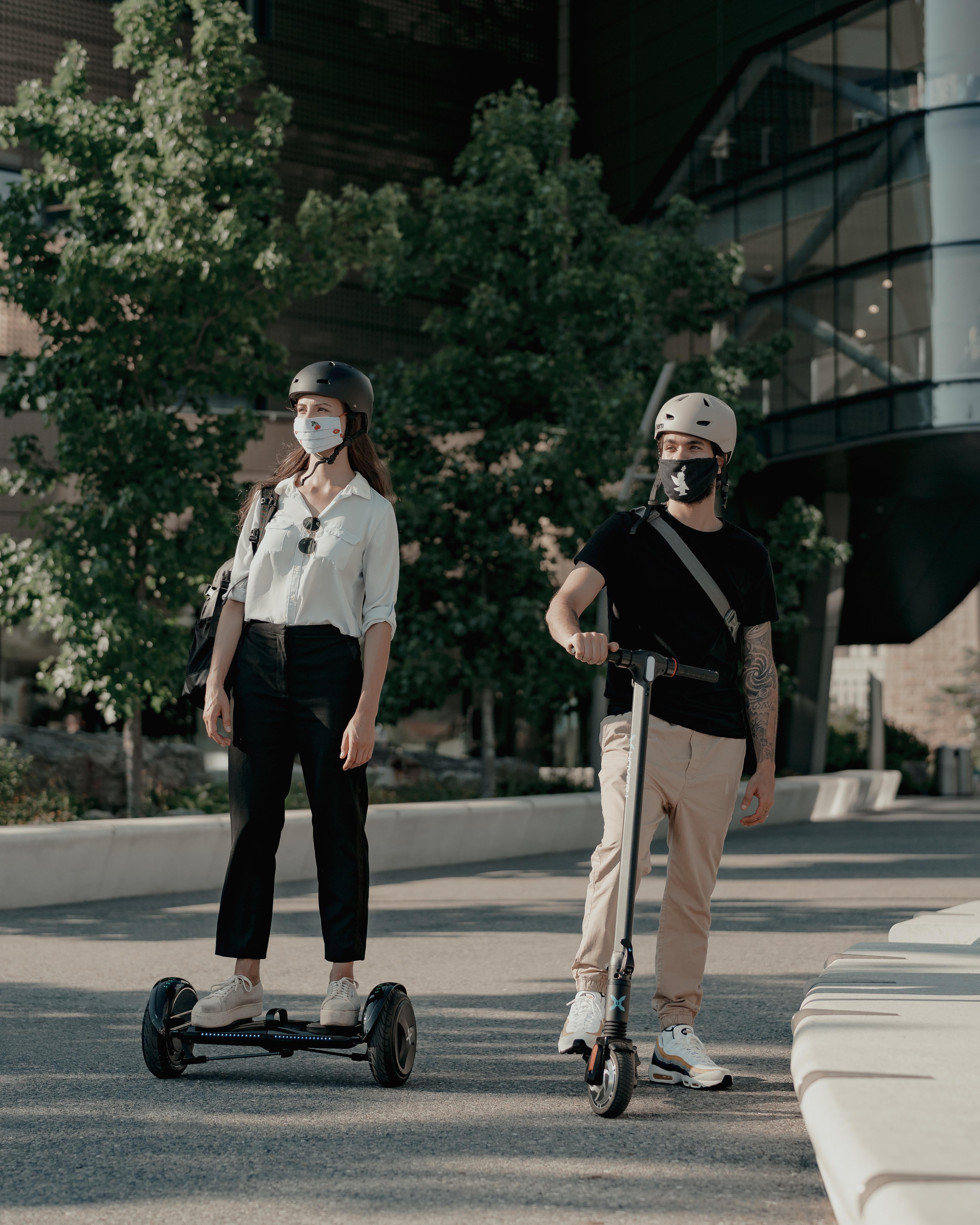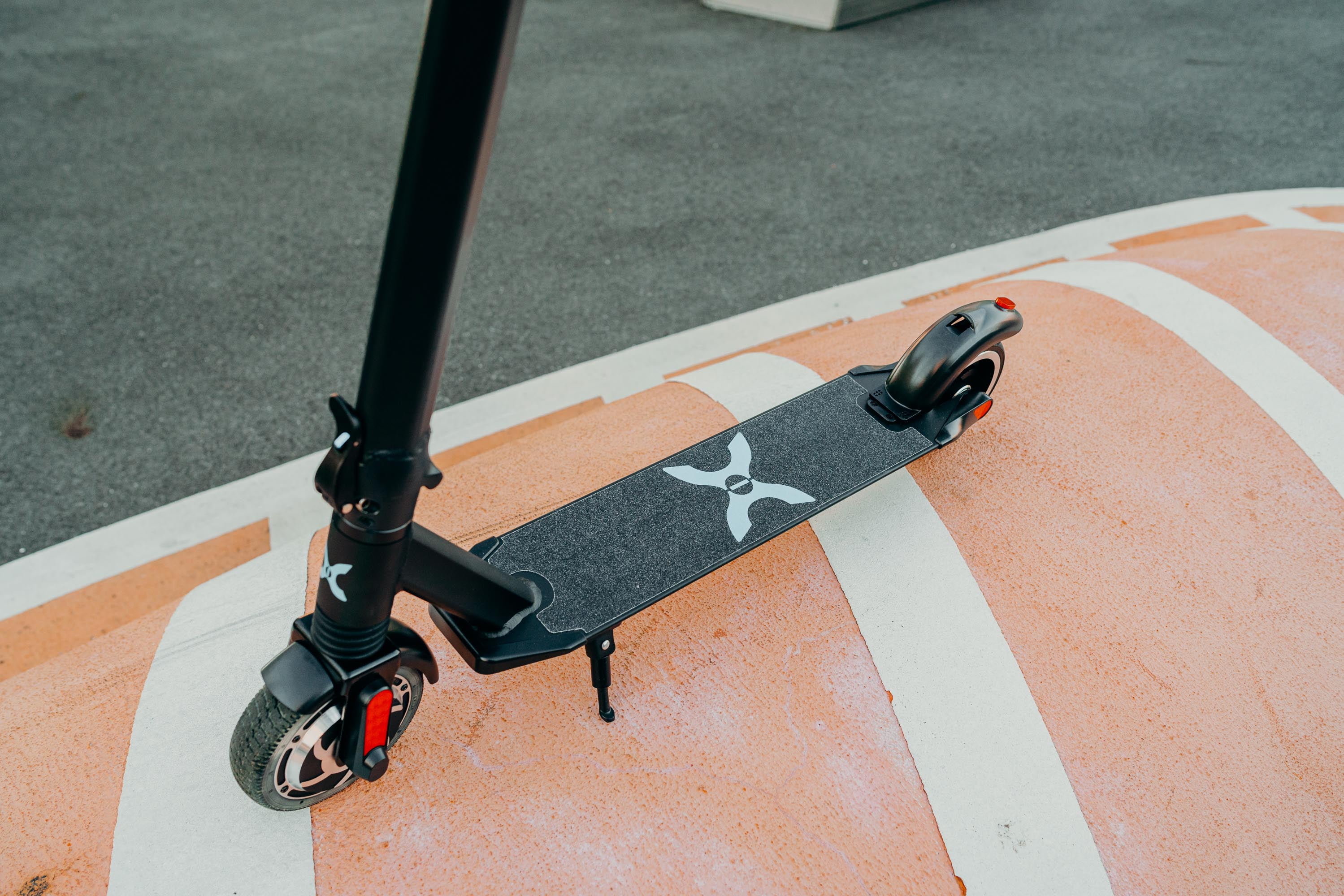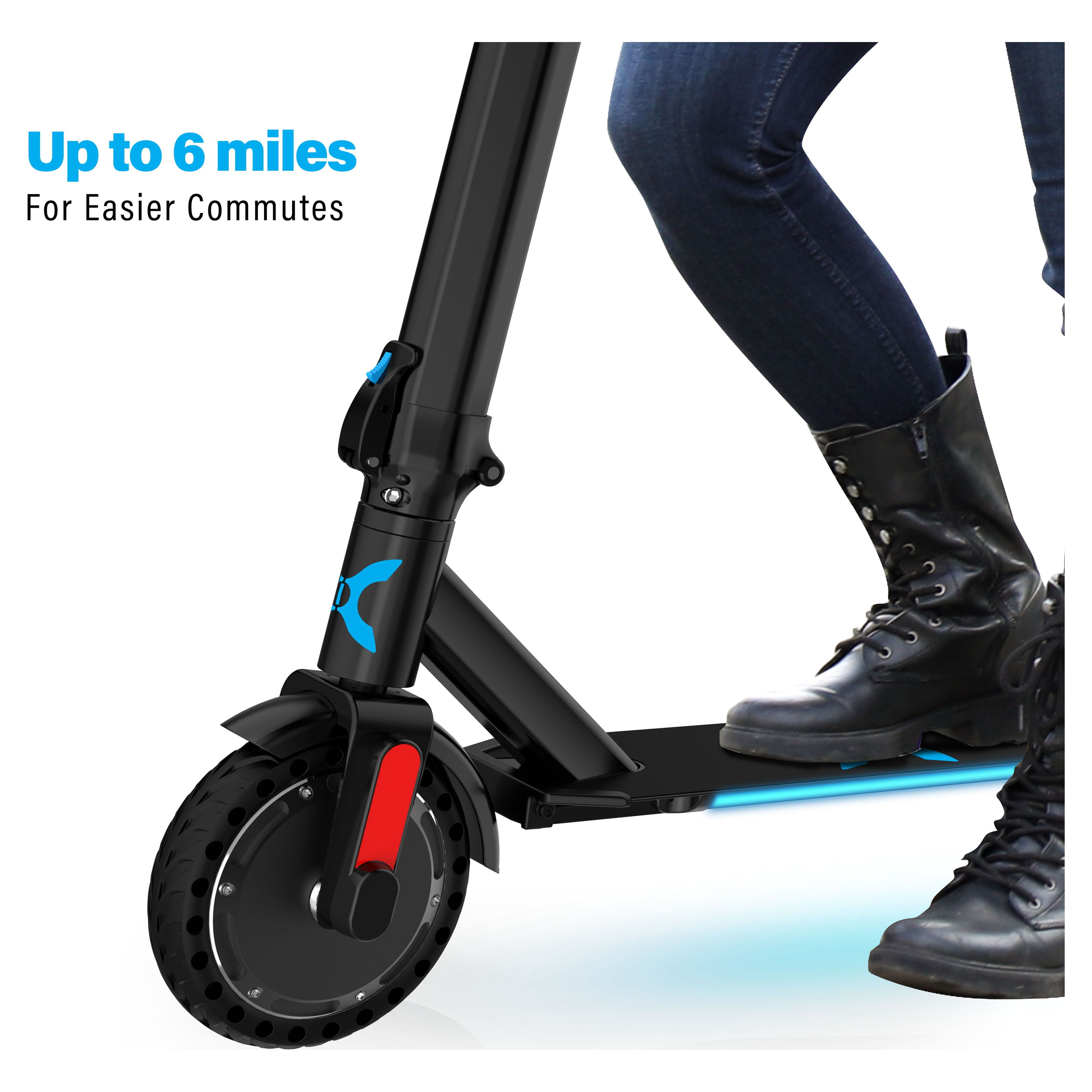 App connectivity with learning modes Built-in rechargeable Lithium-ion battery Electronic throttle and foot brake LED headlight Built-in reflectors Built-in suspension 300w brushless motor 6.5″ tires front and back 7 miles max range 15 mph max speed 264 lb max weight 10° max hill incline