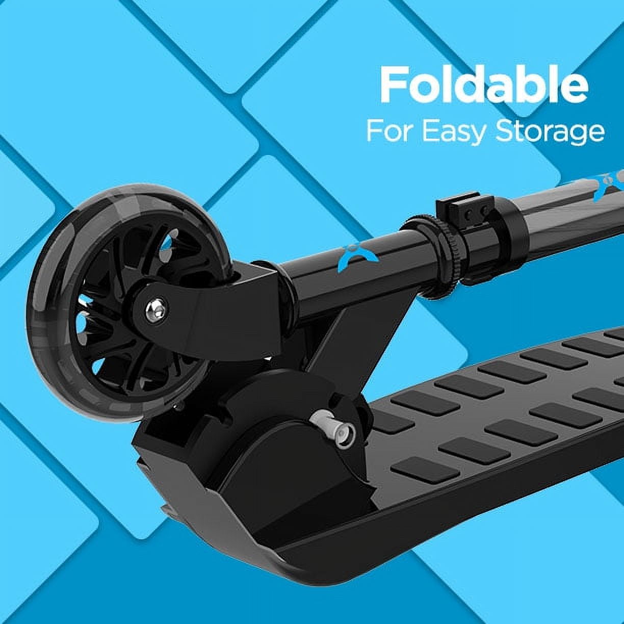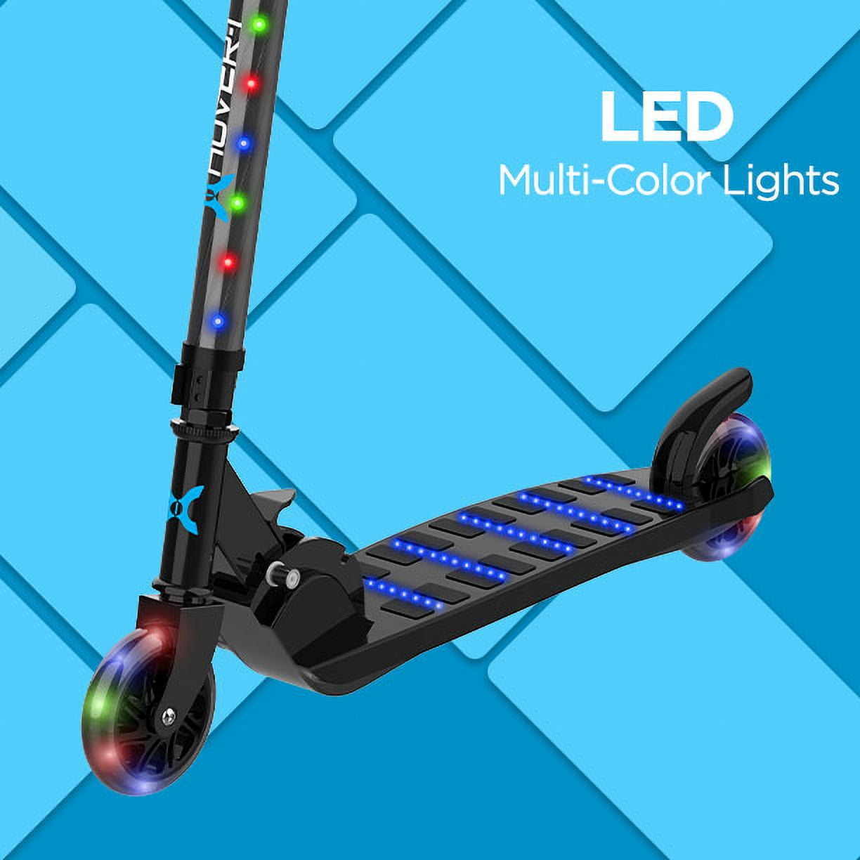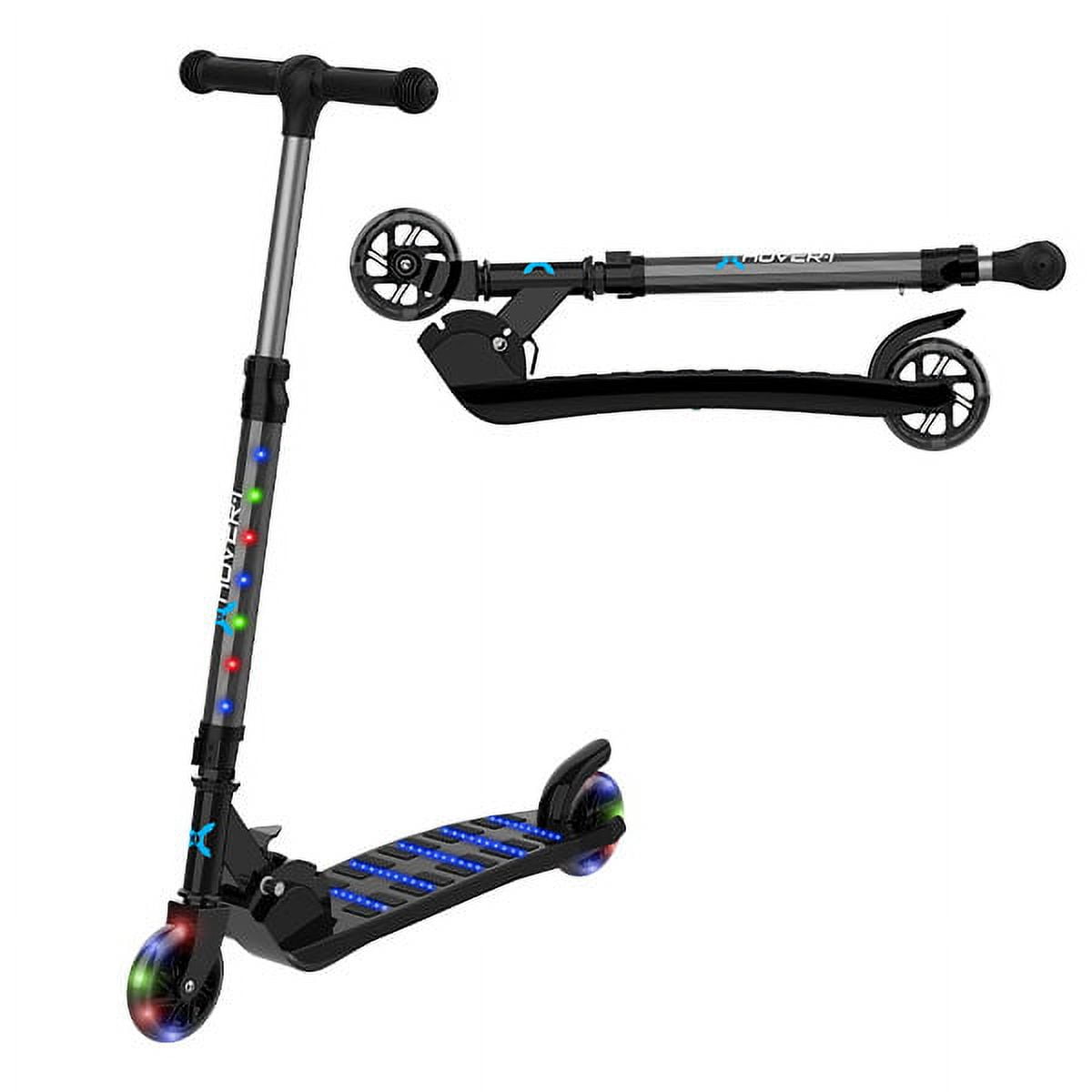 Hover-1 Kids Gear Nano Folding Kick Scooter, Black, LED Lights, Safe For Kids: Safe: For Kids Ages 5+ Max Weight: 110 lbs. Portable: Folding Design Easy to use: Just point-to-turn Adjustable: Handlebar Height Multi-Color LED Lights Grip Handles Foot Brake