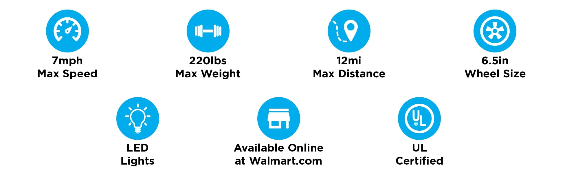 Battery: Lithium-ion Max Speed: 7 mph Max Weight: 220 lbs