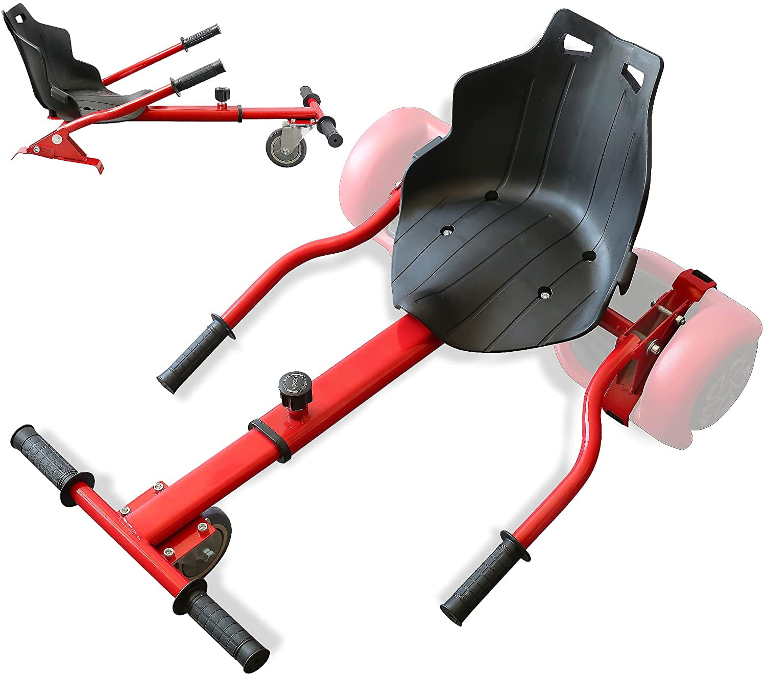 Hover Kart Go Kart Adjustable Attachment for 6.5″ Hover-Board Buggy – Two steering handles make the ride secure and it is simple to operate easily, this unique frame will give your kids an excellent experience and can let them unplug from their screens and provide a fun way to build up their muscles and practice essential motor-skills. It is an amazing ride for your family to enjoy, it’s really easy to install and smooth riding. This will turn any Hover-Board into a hoverbuggy! Just think you can have your very own dune buggy and cruise around the neighborhood! #1 Hover-Board go kart aka Hover-Board go cart!