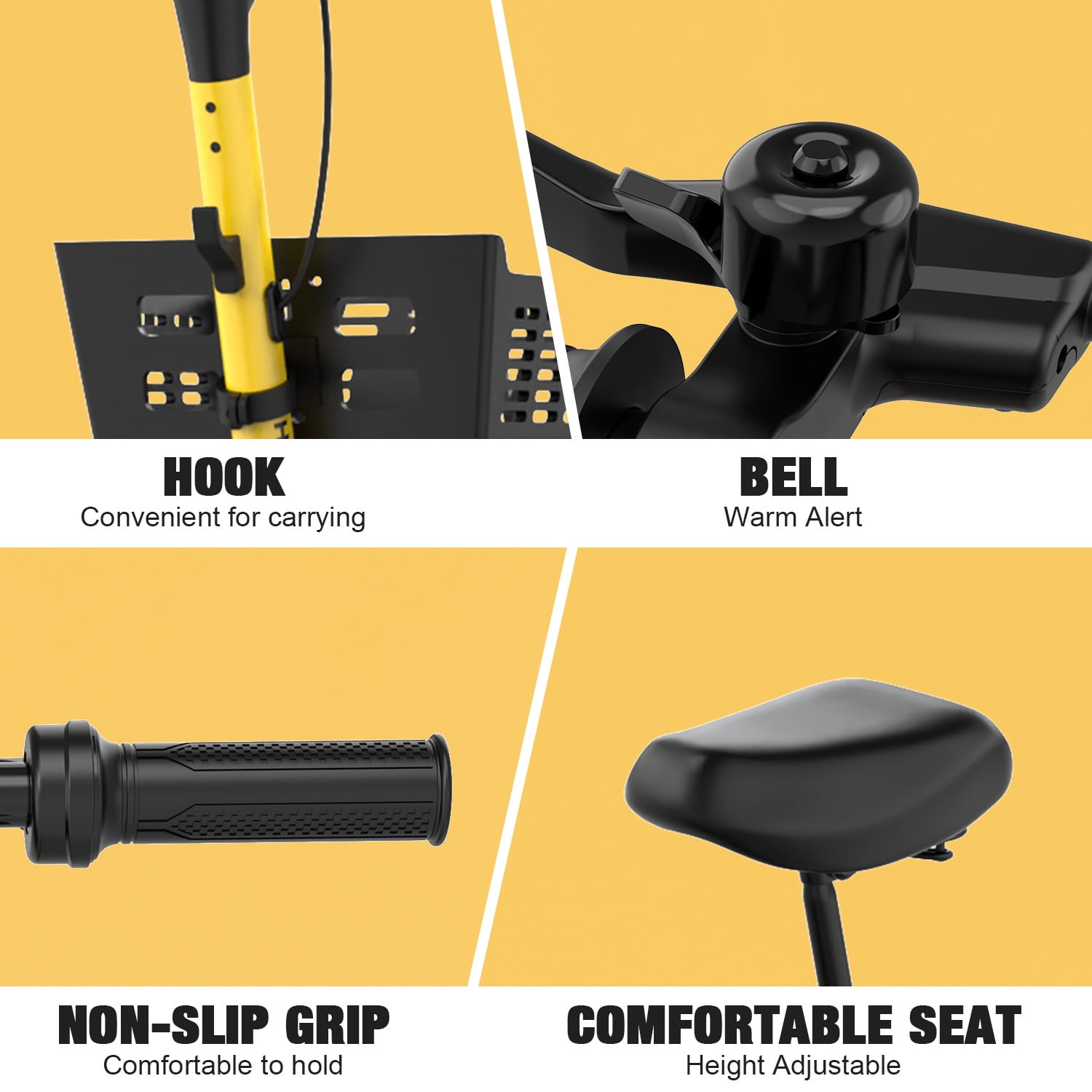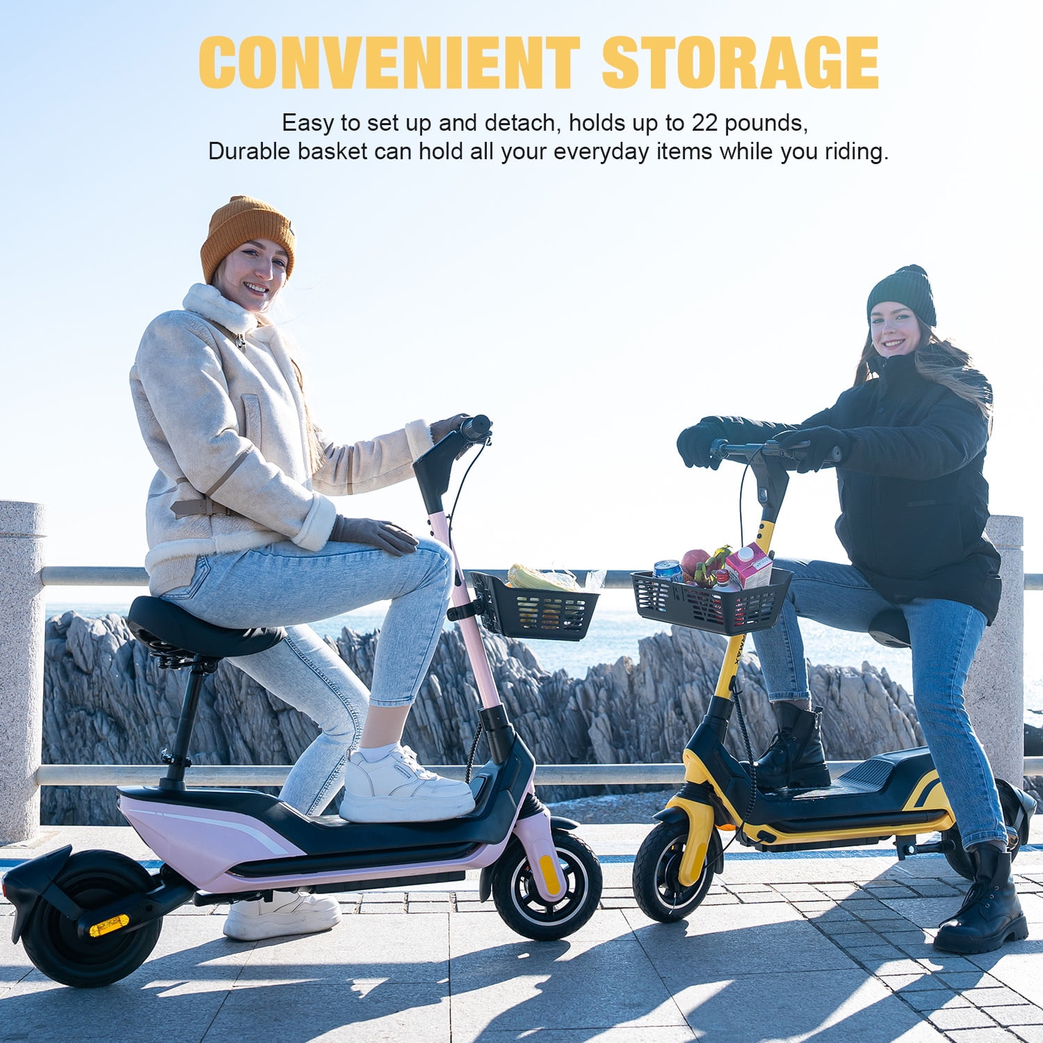 ✨ Features and Functions of the H10G Electric Scooter ➤ UPGRADED PERFORMANCE: Equipped with a 36V/13Ah battery and a 500W motor, this electric scooter can reach a maximum speed of 22 MPH and has a range of up to 28 miles, providing ample power for daily commutes and longer trips. ➤ SAFETY: The bright headlight ensures you can see and be seen clearly in low-light conditions. The taillight and front and rear reflectors provide additional visibility, enhancing safety for both the rider and others on the road. The scooter also features a reliable front mechanical drum brake, which offers strong stopping power and control, ensuring a safe and secure ride every time you hit the road. ➤ COMFORTABILITY: H10G electric scooter is designed with a focus on rider comfort. It features a soft, cushioned seat that provides a comfortable seating experience even on longer rides. Along with a 9.9-inch wide deck for ample standing space. Its front and rear suspension system and 10″ tires that effectively dampen vibrations and impacts from the road, making every journey a comfortable one. ➤ SMART AND EASY TO OPERATE: Features an upgraded LED display that offers clear and easy-to-read information about your ride, including speed, battery life, and mode selection. This intuitive interface ensures that you can monitor and control your scooter’s performance with ease. Furthermore, the scooter supports app control, allowing you to connect your smartphone for even more convenience. ➤ PRACTICALITY: With 3 speed modes (ECO at 9.3 MPH, DRIVE at 12.5 MPH, and SPORT at 22 MPH), the scooter caters to different riding preferences. The detachable basket adds convenience for carrying items. ➤ UPGRADED PERFORMANCE: Equipped with a 36V/13Ah battery and a 500W motor, this electric scooter can reach a maximum speed of 22 MPH and has a range of up to 28 miles, providing ample power for daily commutes and longer trips. ➤ SAFETY: The bright headlight ensures you can see and be seen clearly in low-light conditions. The taillight and front and rear reflectors provide additional visibility, enhancing safety for both the rider and others on the road. The scooter also features a reliable front mechanical drum brake, which offers strong stopping power and control, ensuring a safe and secure ride every time you hit the road. ➤ COMFORTABILITY: H10G electric scooter is designed with a focus on rider comfort. It features a soft, cushioned seat that provides a comfortable seating experience even on longer rides. Along with a 9.9-inch wide deck for ample standing space. Its front and rear suspension system and 10″ tires that effectively dampen vibrations and impacts from the road, making every journey a comfortable one. ➤ SMART AND EASY TO OPERATE: Features an upgraded LED display that offers clear and easy-to-read information about your ride, including speed, battery life, and mode selection. This intuitive interface ensures that you can monitor and control your scooter’s performance with ease. Furthermore, the scooter supports app control, allowing you to connect your smartphone for even more convenience. ➤ PRACTICALITY: With 3 speed modes (ECO at 9.3 MPH, DRIVE at 12.5 MPH, and SPORT at 22 MPH), the scooter caters to different riding preferences. The detachable basket adds convenience for carrying items. ✨ SPECIFICATIONS: Model Name: H10G Color: Pink / Yellow Wheel Size: 10 inch Wheel Type: Solid Tires Suspension Type: Dual Suspension Brake Style: Front Mechanical Drum Brake Motor: 500W Front Basket: Yes Battery: 36V-138Ah Max Range: 28 Miles Top Speed: 22 MPH Max Load: 264 LBS Charging Time: 6H