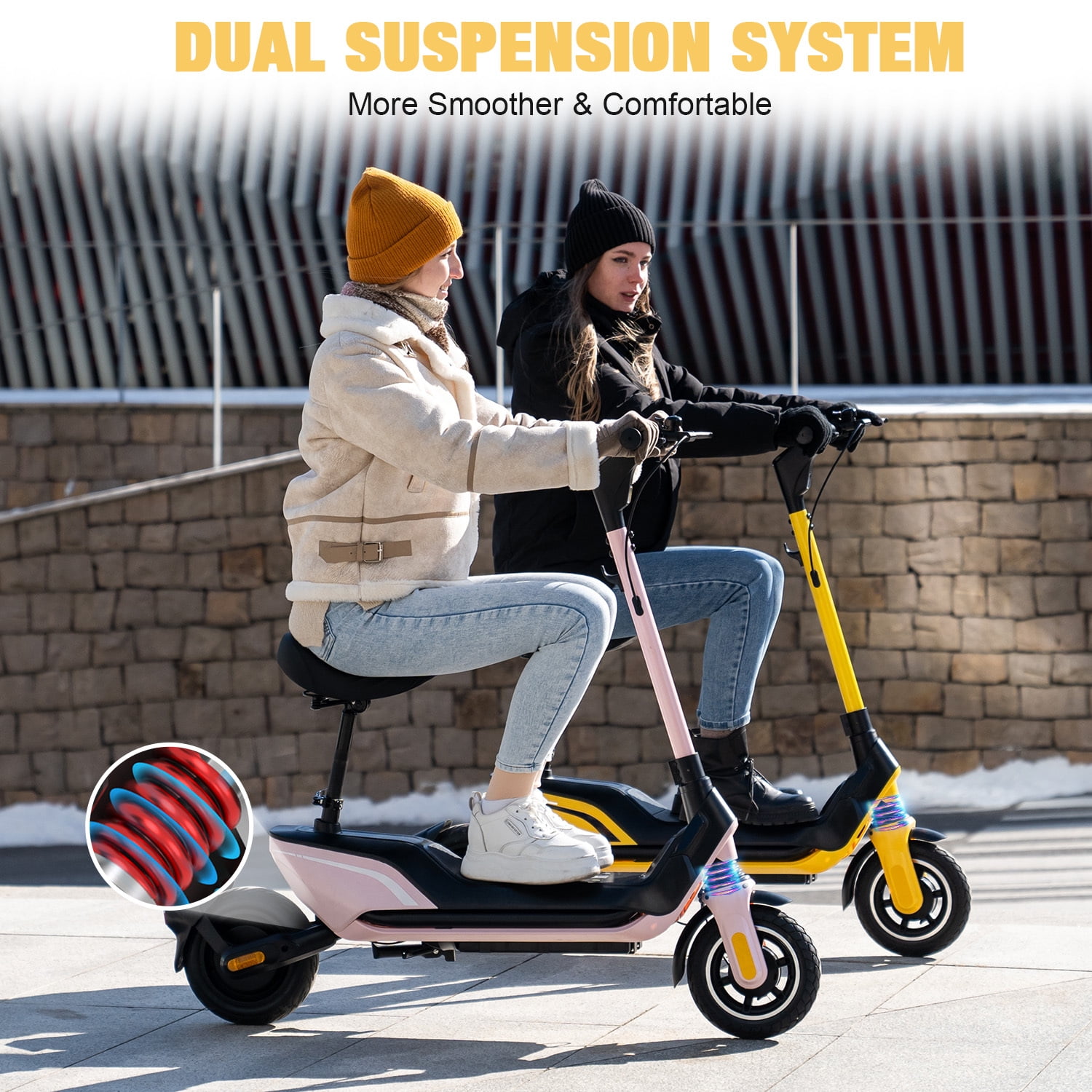 HOVERMAX Electric Scooter with Seat for Adults, 500W Motor 10″ Commuter Electric Scooter with Basket, Max Speed 22 MPH, 28 Miles Range, Yellow