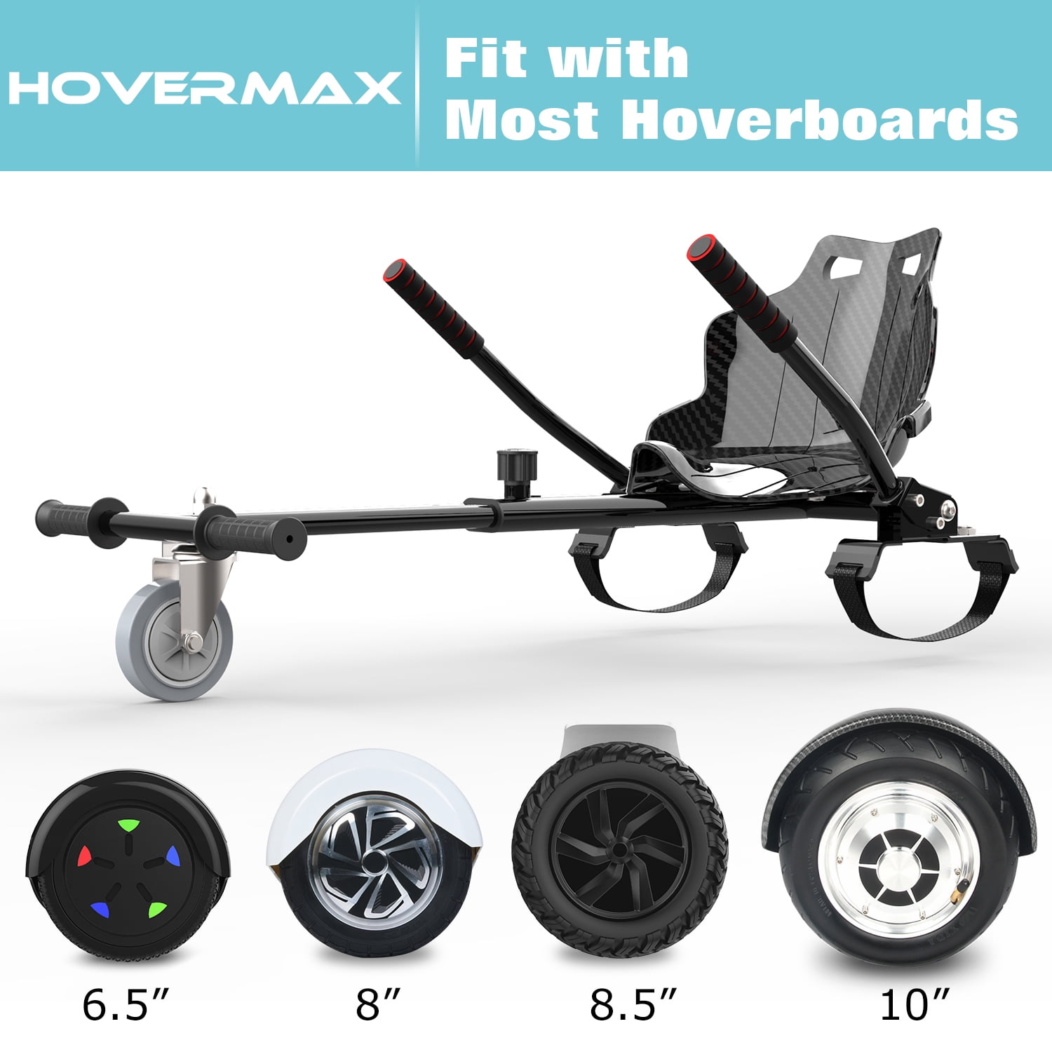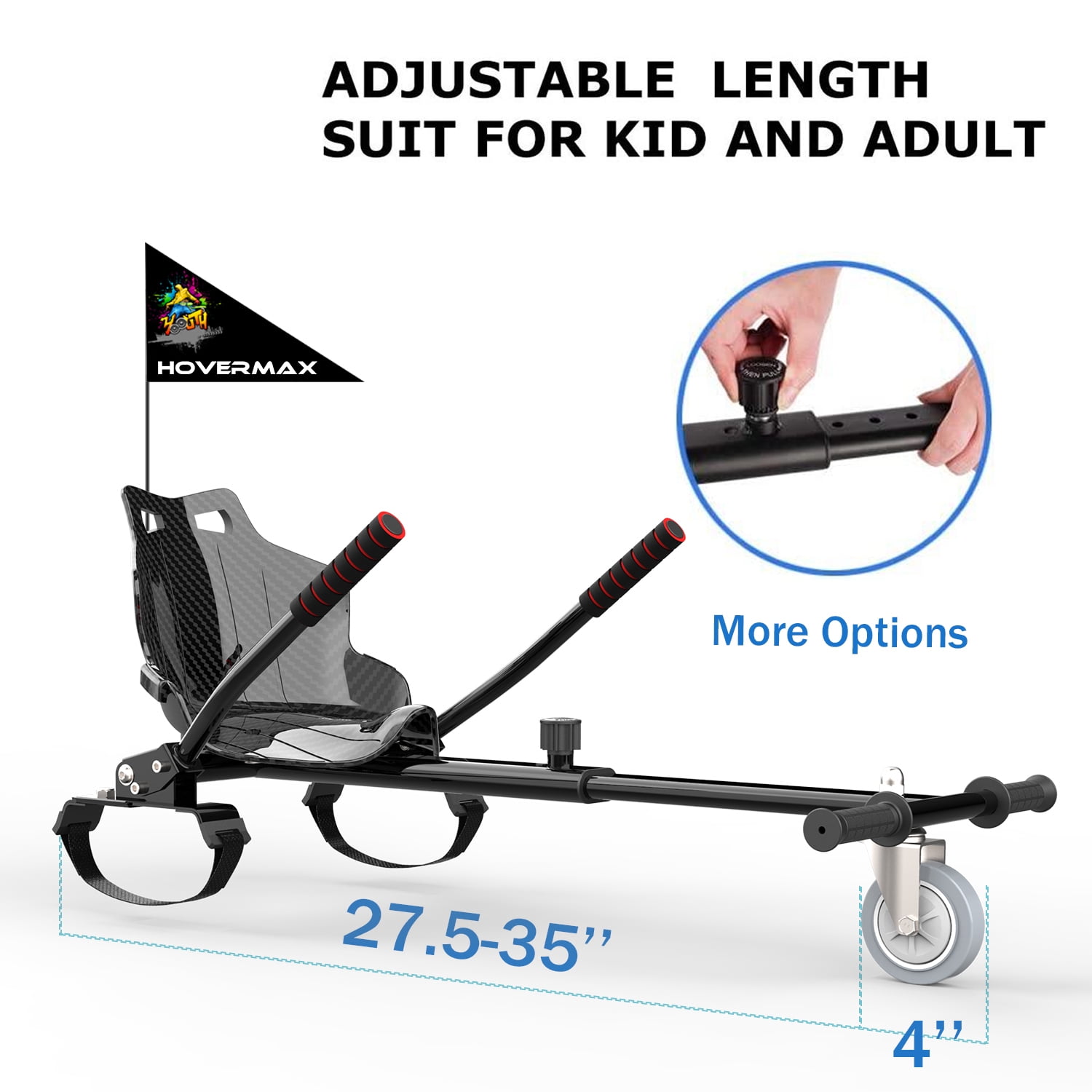 HOVERMAX Hoverboard Go Kart, Hoverboard Seat Attachment with Adjustable Frame Length for 6.5″ 8″ 10″ Hoverboard, Suitable for Kids & Adults, Black