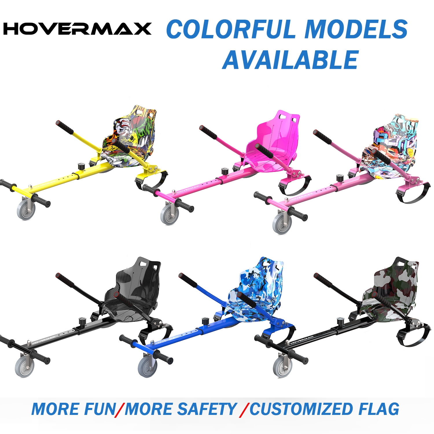 ✨ Get ready to give your little one the coolest ride this holiday season with the HOVERMAX Hoverkart! With its sleek design, adjustable seating, and user-friendly controls, it’s the perfect blend of excitement and security, making it the ultimate Christmas gift for kids! ???????????? ✨Features and Functions of the H06C Kids Electric Scooter ▶ FUN & SAFETY HOVERBOARD ATTACHMENTS: Compatible for 6.5” 8” 8.5” 10” hoverboard, which is safer for kids because they sit on the hoverboard seat instead of standing on hoverboard, there is less injury risk of falling down at high speed. ▶ HOVERBOARD ACCESSORIES & ADJUSTABLE FRAME: Our seat for hoverboard is suitable to various ages and height, there are several gear positions to adjust the length from 31” to 44.5” to meet your needs. ▶ EXTRA STRAPS & SIMPLE ASSEMBLE: We offer extra straps and simple assembly instructions and all necessary tools with this hoverboard seat attachment so that you can assemble and attach this hoverboard cart to your hoverboard in minutes. ▶ OUTDOOR FUN: The unique safety flag post ensures they can enjoy their rides outdoors with added visibility and safety. ▶ IDEAL GIFT & WARRANTY: A great gift with professional after sales service, 30 days return service, 1-year warranty against mechanical defect and life-time free technical support. ???? Master Your HOVERMAX Hoverkart with Ease ★ ◆ Forward/accelerate, operate the steering bars simultaneously downwards. ◆ Backward/brake, operate the steering bars simultaneously upwards. ◆ Turn right, operate the right grip up and the left grip down. ◆ Turn left, operate the right grip down and the left grip up.