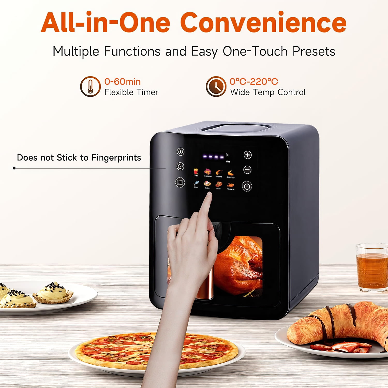 8-in 1 Air Fryer: Hozodo Air Fryer with 8 one-touch presets function, you can quickly make delicious meals according to your needs. You can adjust the time and temperature to customize everything to suit your air frying recipe 8L Large Capacity: Perfect for families or those who love to entertain, the spacious nonstick basket accommodates larger portions, making air fryer ideal for cooking meals for the whole household with ease 1350W Air Fryer with Visible Window: The visible design of air fryer lets you monitor your food as it transforms, ensuring perfect results without opening the air fryers and disrupting the cooking process Easy to Use Digital Touchscreen: Hozodo non-toxic air fryer have a user-friendly touchscreen interface allows for easy selection of cooking functions, temperature, and timer settings, taking the guesswork out of cooking Oil-Less Frying Air Fryer: Air fryer is designed to be non-toxic and free from harmful substances, ensuring your well-being and oil-less frying, resulting in healthier and oil-free cooking experiences