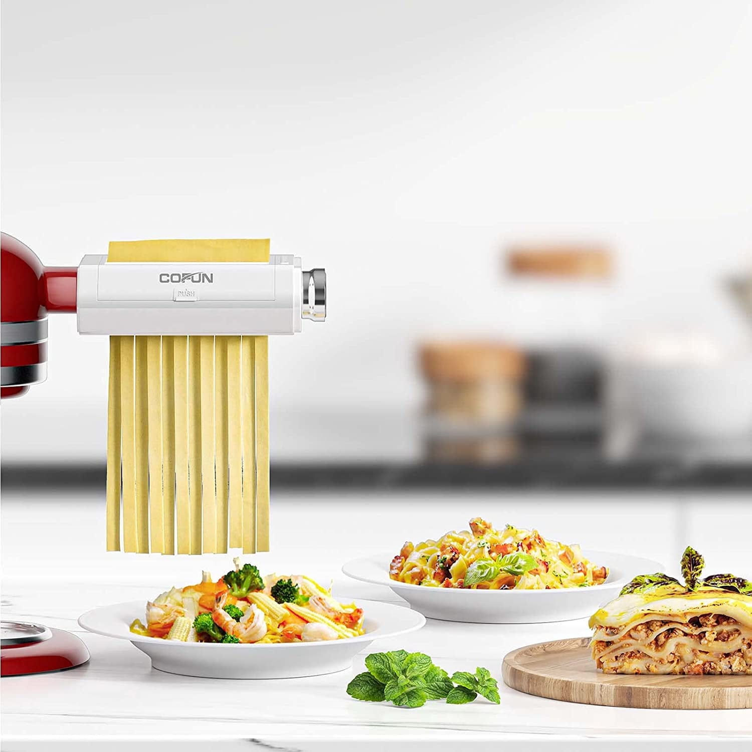 3-in-1 Pasta Attachment for Kitchenaid Mixer: Hozodo 3-in-1 pasta attachment for KitchenAid stand mixer fits ALL KitchenAid Stand Mixer perfectly. This is a multifunctional 3-in-1 pasta attachments set, including pasta roller, spaghetti cutter and fettuccine cutter. The protective case is food grade material. It is also a must-have accessory for KitchenAid High-Quality Materials: Hozodo pasta attachment for kitchenaid stand mixer are made of high-quality premium aluminum, thus guaranteeing its safety and durability. The protective case is a build-in POM. The gears of this pasta attachment are silent with long life, Kitchenaid pasta attachment is a well made piece of equipment Efficient & Convenient: Hozodo pasta attachment with 8 settings allows you to choose the dough sheet thickness, from 0.4 to 2 mm (0.016 to 0.08 in). Easy to make classic spaghetti noodles and hearty fettuccine noodles, just put it to left or right option, the texture and taste of your pasta will bring you an amazing taste experience Easy to Use & Clean: Easy to attach, easy to use. Gets you the pasta much faster. You can clean it very quickly the cleaning brush that came with it(Not dishwasher safe). Compared to other similar products, they can’t open the protective cover to remove the dough in the gap, but we can. 3-in-1 pasta maker attachment , you will like this pasta attachmen while once you use to Perfect Home Gift: It’s a great gift for people who already have a KitchenAid Stand Mixer at home. Kitchenaid pasta attachment can turn your mixer into a multi-functional pasta maker, very quick at churning out piles of pasta for spaghetti, lasagna or fettuccine