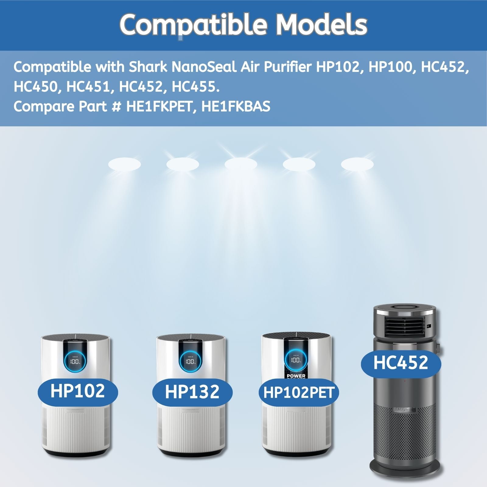 HP102 HC452 Filter Replacement For Shark Air Purifier HP100 HC450 HC451 HC455 HP105, UA455 4 Pack