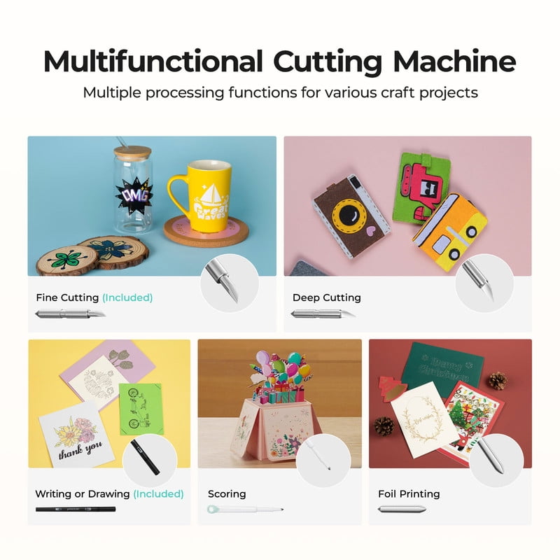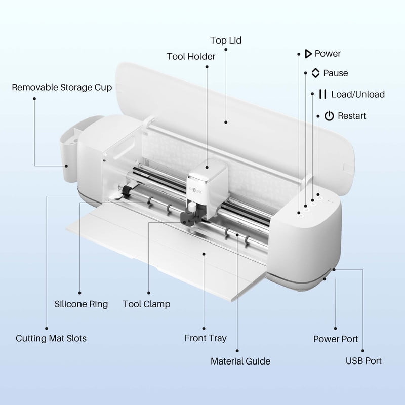 Include: HTVRONT Cutting Machine, Fine-point blade housing*1, Fine-point blade *2, Pen-housing*1, Pen*1, USB Cable*1, Power Adapter*1, Cutting mat*1, Heat Transfer Vinyl*1, User guide envelope*1, Hook Weeder*1 Dimension of Machine: 22.8”L×8.1”W×9.2″H Color: Daisy White Style: Professional and smart Larger Artwork at Your Fingertips: Even with a compact body of 51.5 cm in width, this machine can still take your hands-on ability to the next level with large matless projects of materials up to 6.4 m/21 ft in length. Bust Out Your LOKLiK AI Crafts: LOKLiK IdeaStudio always serves as a fantastic addition to your crafting arsenal! With its highly matching cutter, you can craft beautifully AI-drawn designs into reality. Boost Inspiration via Free Designs: Tap into our extensive collection of premade images, LOKLiK Workshop. Over 50,000 free designs and 30 more fonts are there to streamline your crafting experience. Connectivity: USB, Bluetooth Compatible Materials: Heat Transfer Vinyl, Permanent Vinyl, Printable Vinyl, Board, Smart Vinyl, Cardstock, Plastic Board, Leather, Felt, Foam Board, etc Max Material Height: 2 mm Precision: 0.01 mm Maximum Cutting Force: 5200gf of torque Power Type: Corded electric, without battery Input Power: 100-240V~ 50/60Hz 36W Output Voltage: DC 24V 1.5A Care: Avoid using in humid environment and pulling the power cord directly Country of Origin: Imported Why you’ll love it: for craft enthusiasts, good choice for birthday and Christmas and anniversaries gift to your family or lover