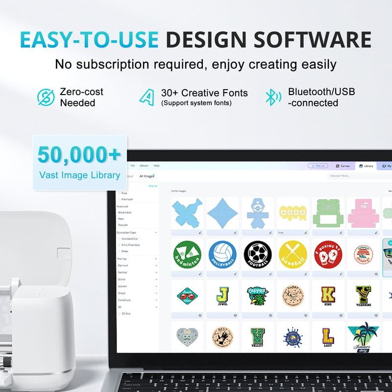 Farewell to the tedious cutting process either by hand or a slow machine. The all-new cutting machie, tested for efficiency and precision cutting down to 0.5 mm, is your go-to craft companion. Equipped with a space-saving body and upgraded step motor, HTVRONT iCraft leads the way in masterful projects out of 100+ materials. Fine details and extensive design length are a breeze, as well. With the strong support of its connected software, and art library, LOKLiK Workshop, you’re allowed to get inspired by over 50,000 free artistic and AI-generated images, even without design experience. Enjoy the journey of growing into a creative crafter with HTVRONT smart cutting machine