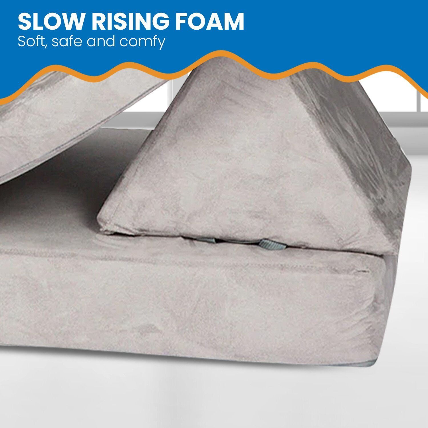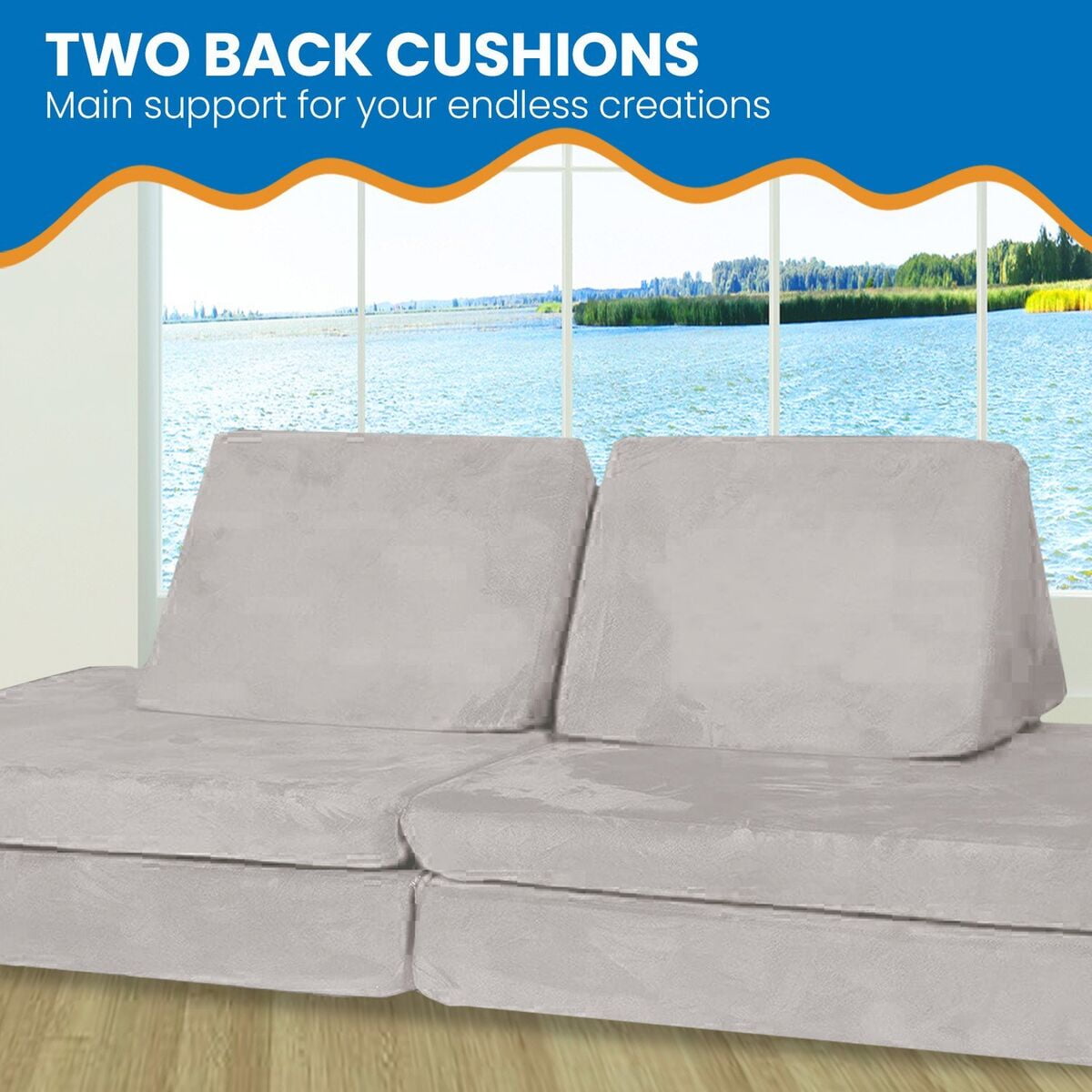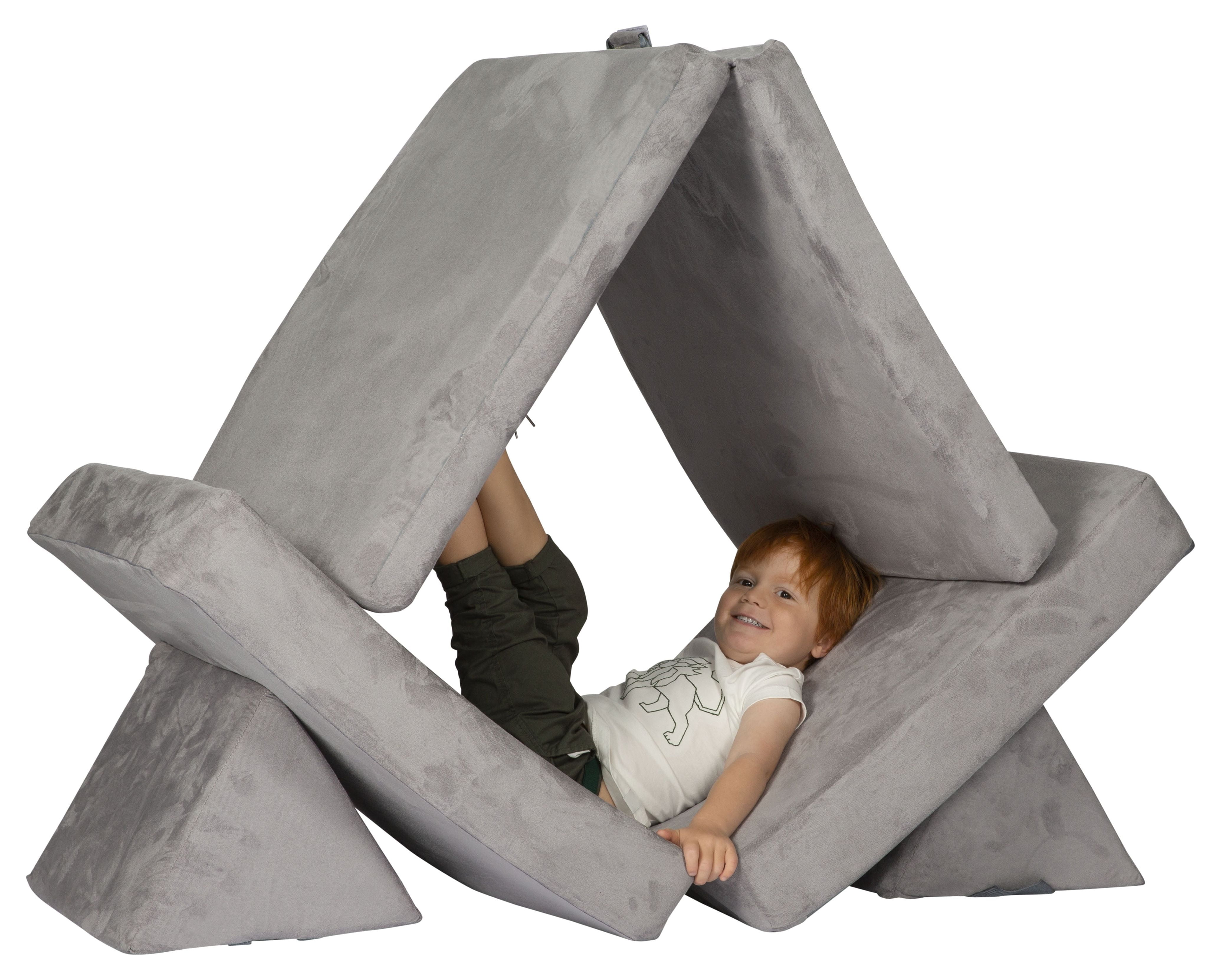 Super Soft and Comfy Slow Rising Foam Cushions Durable and Sturdy Base Cushion is 28″ x 28″, Wedges are 18″ high, Couch is 30″x 7″x 50″ Available in Multiple Colors Ages 3+ Neutral Grey Color
