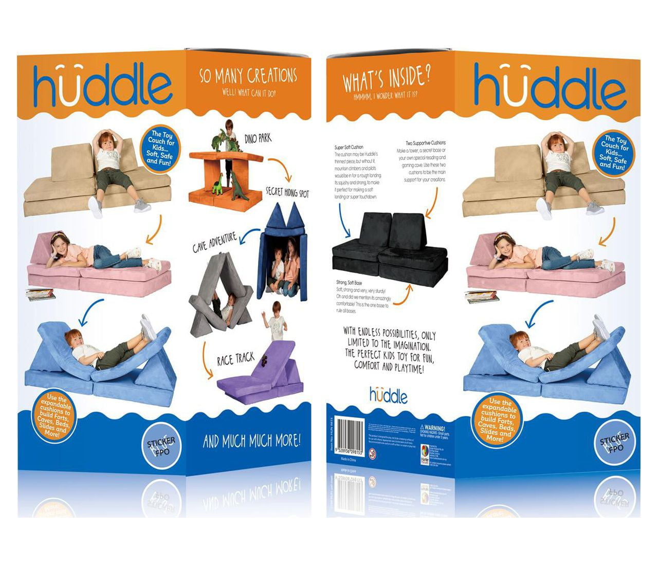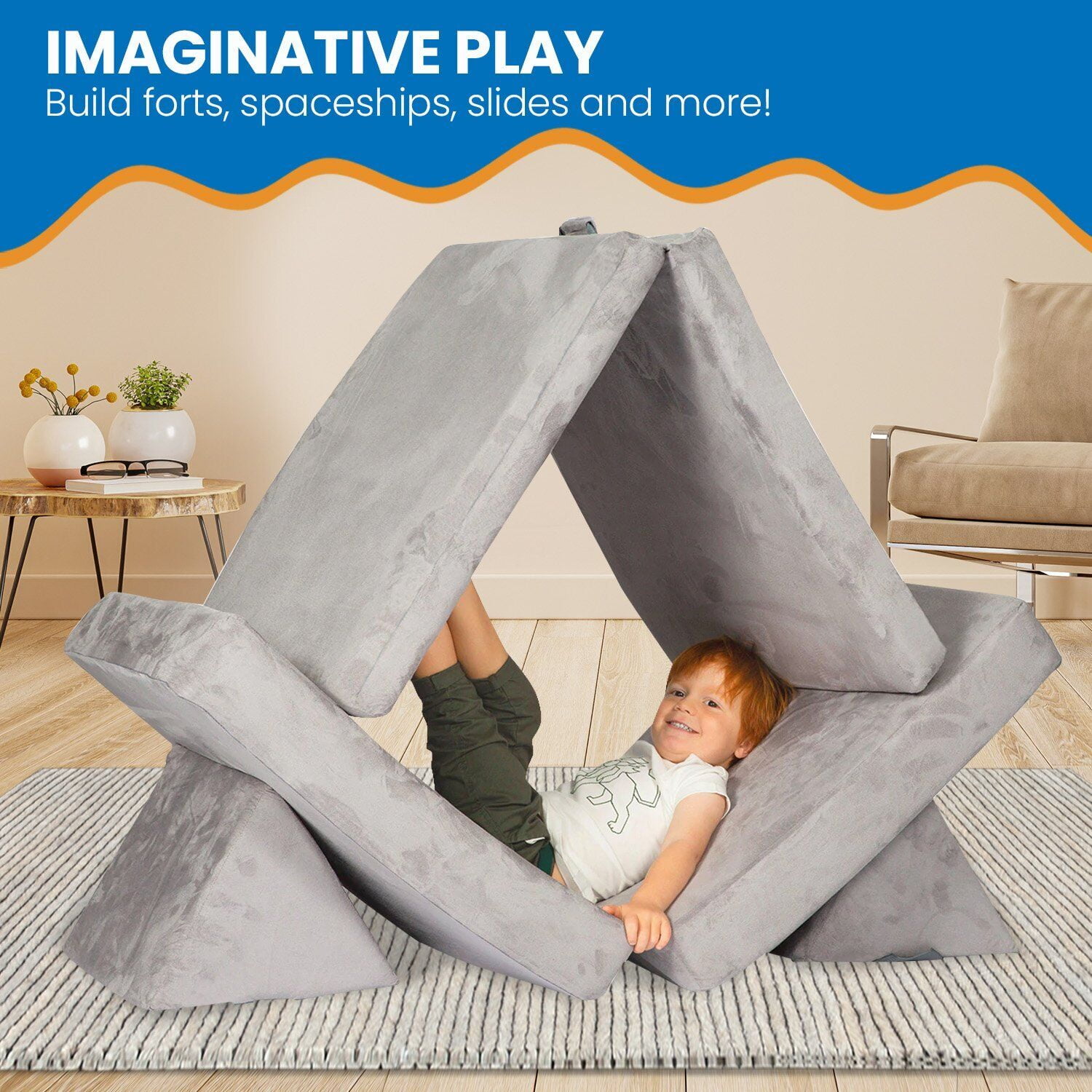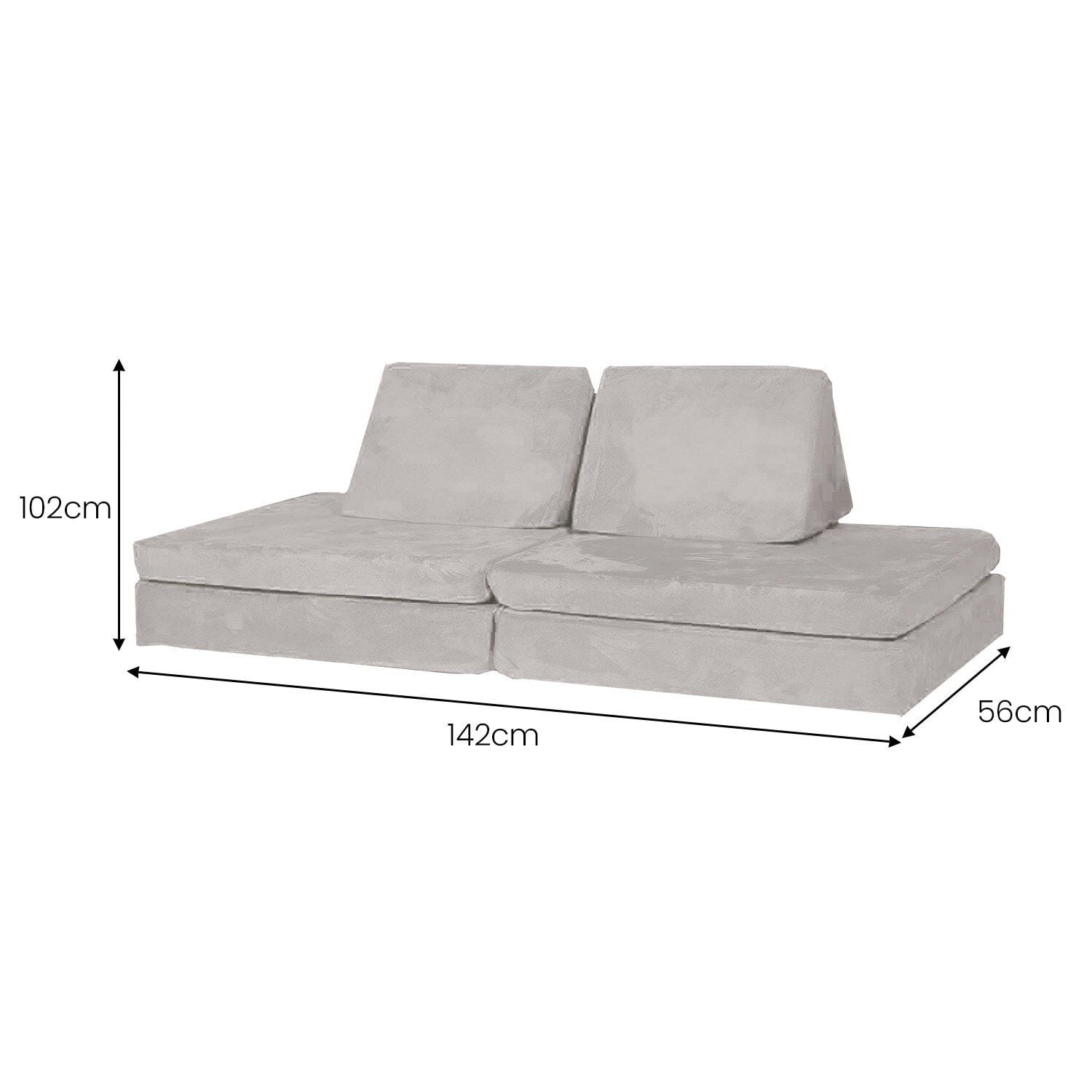 Super Soft and Comfy Slow Rising Foam Cushions Durable and Sturdy Base Cushion is 28″ x 28″, Wedges are 18″ high, Couch is 30″x 7″x 50″ Available in Multiple Colors Ages 3+ Neutral Grey Color
