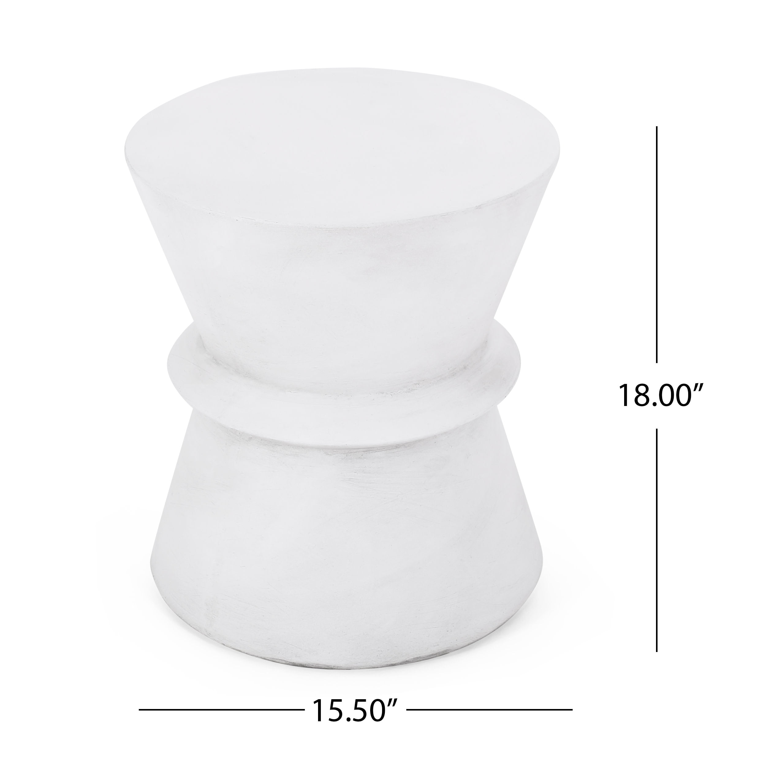 Includes: One (1) Side Table Material: Lightweight Concrete Finish: Antique White No Assembly Required Dimensions: 15.50 inches deep x 15.50 inches wide x 18.00 inches high Weight Capacity: 15 lbs