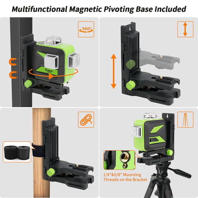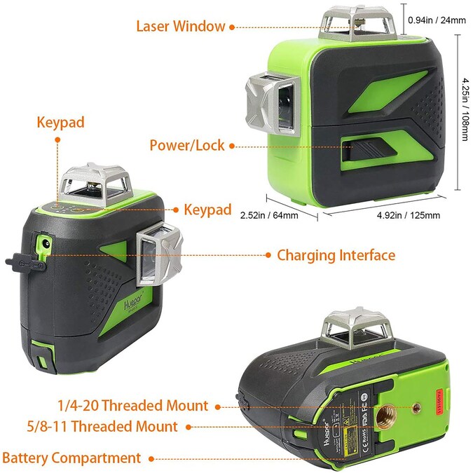 - TRIPLE POWER: Huepar laser tool employed the included large capacity lithium battery for extended run-time, or with 4 AA alkaline batteries, In addition, this laser tool can be used at job site with direct input charging even if take out the battery.