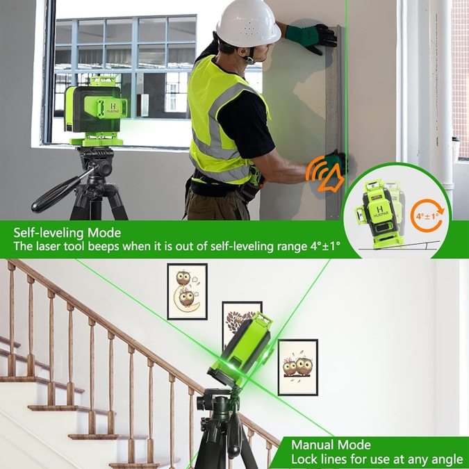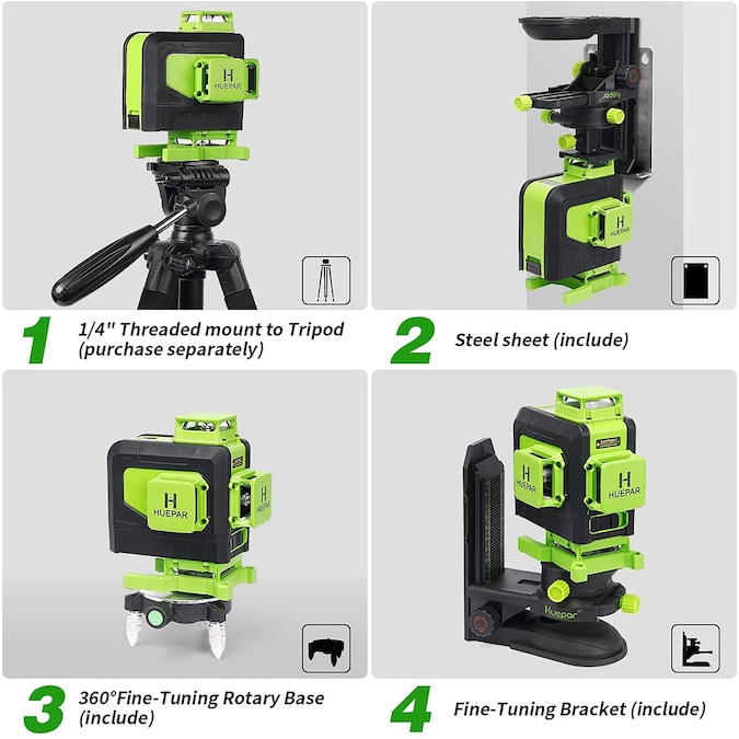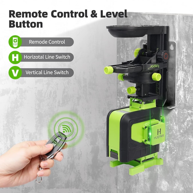 - MULTIFUNCTIONAL LASER & OUTDOOR PULSE MODE: Pulse mode function extends laser working range up to 200Ft with Huepar LR-5RG Line Laser Receiver in bright light or outdoor conditions.