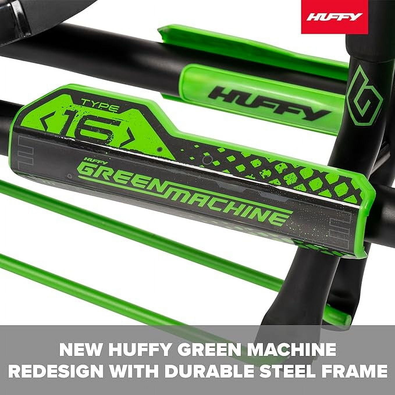 Huffy Green Machine 16 Inch Drift Trike, Sleek Ergonomic Design, Adjustable Seat, Durable Steel Frame, Easy to Operate, Drift Trike for Kids Ages 5-8, Max Weight 80lbs, Coaster Brake, Green and Black