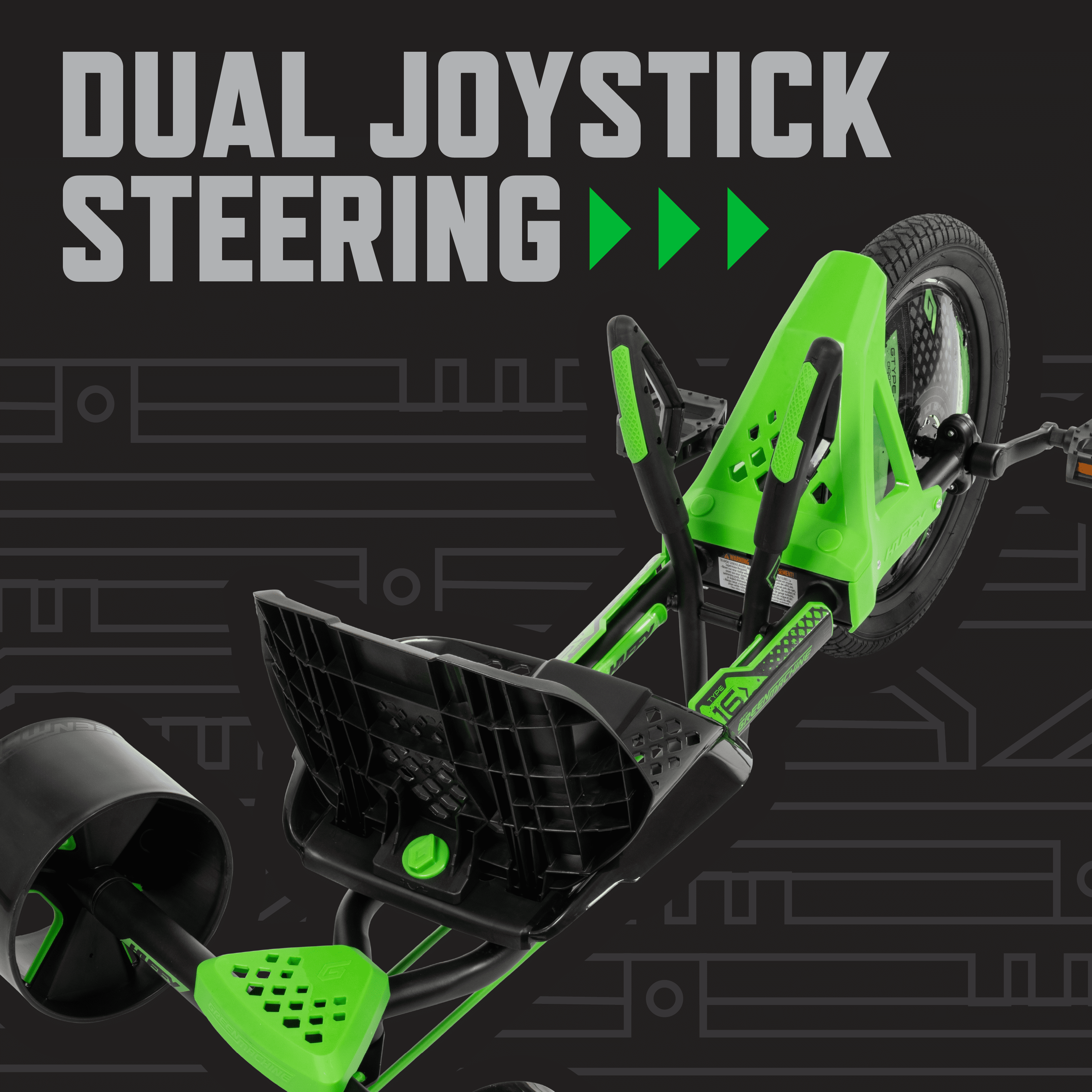 Huffy Green Machine 16-Inch Drift Trike, Ages 5+, Adjustable Seat, Green Unleash the thrill of drifting with the Huffy Green Machine 16-inch Drift Trike! Perfect for young adventurers aged 5-8, this trike features an ergonomic hi-tensile steel frame in sleek black and green. The tool-free adjustable seat offers two positions for a perfect fit, ensuring comfort during every ride. Equipped with durable injection-molded rear wheels, the Green Machine provides supreme drifting potential and enhanced stability. Dual steering levers make it easy to engage in exciting drifts and spins, while the reliable coaster brakes keep the rider in control. The wide front tire ensures a smooth ride on various surfaces, adding to the overall fun and excitement. This trike is designed to bring maximum fun and adventure to every ride, making it a must-have for any young thrill-seeker. From Huffy, We Make Fun!